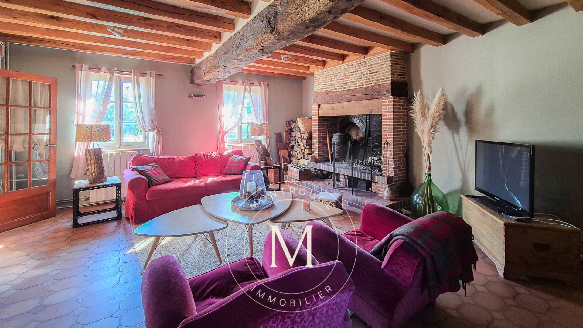 A 20 minutes de Montargis, l'agence Montrouge Immobilier vous propose cette belle maison de 192m² sur un terrain de 3200m² paysagé et arboré. La maison se compose au rez-de-chaussée, d'une entrée, un salon de 24m² avec cheminée, poutres et vieilles tomettes, une salle à manger de 27m² avec poutres, tomettes anciennes et un poêle à bois, une grande cuisine, une petite entrée, une chambre de 17m², une salle d'eau et un wc . Le premier étage se compose d'une mezzanine desservant deux chambres de 13 et 15m². une grande chambre de 25m² et un grand grenier de 50m² au sol. Sur la parcelle vous trouverez également une petite maison indépendante de 29.70m² aménagée composée d'une pièce principale de 20m² avec poêle à bois, une cuisine, une salle de bains avec wc et une mezzanine servant de chambre. Un grand garage avec une partie atelier se trouve également sur le terrain. Chauffage gaz pour les deux habitations avec citerne enterrée dans la propriété. Le terrain est entouré d'une haie et des arbres fruitiers sont plantés devant la maison.