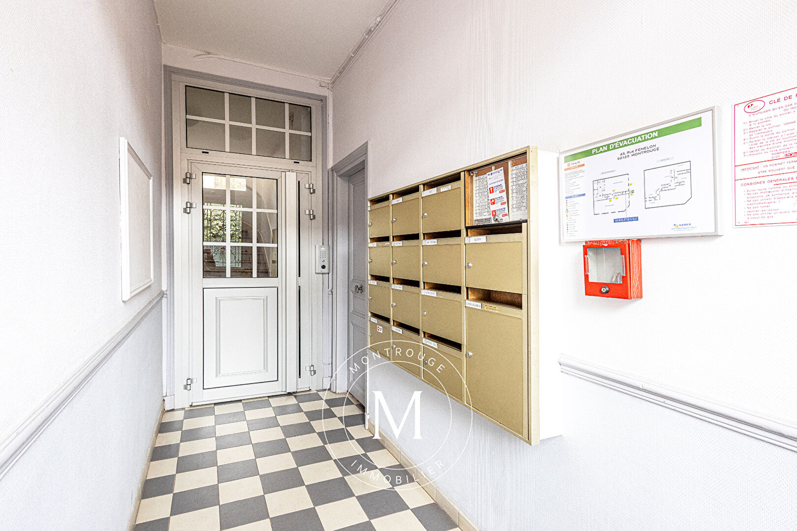 EXCLUSIVITE - MONTROUGE IMMOBILIER - QUARTIER DES ECRIVIANS, Rue Fénelon à 3 minutes du Métro Ligne 4 et au pied des commerces, dans une petite copropriété à taille humaine, venez découvrir un appartement de 2 pièces de 50.19m², idéalement agencé comprenant : une entrée desservant un séjour avec 3m de hauteur sous plafond, cuisine ouverte le tout donnant sur cour. Côté nuit : une large chambre, un placard dans le dégagement, une spacieuse salle de bains avec fenêtre et un wc (séparé). Une cave en sous-sol complète ce bien. Eau chaude + chauffage individuel, RAVALEMENT RÉALISÉ EN 2023. (4.52 % honoraires TTC à la charge de l'acquéreur.) Copropriété de 34 lots - dont 17 lots habitation. (Pas de procédure en cours). Charges annuelles : 1400 euros.