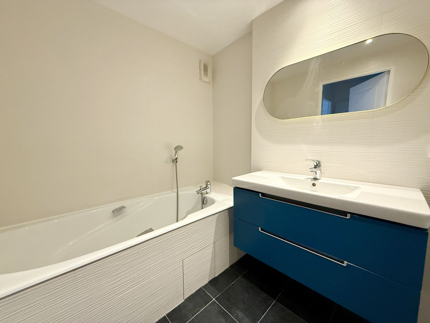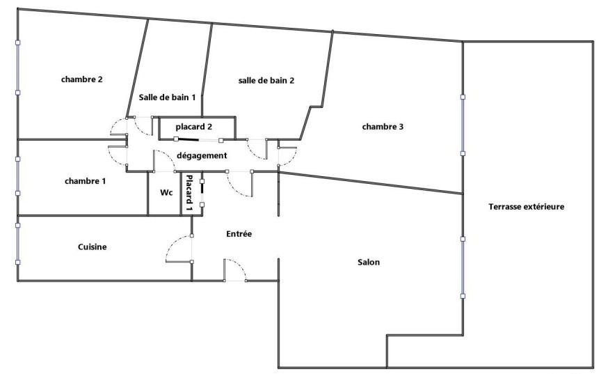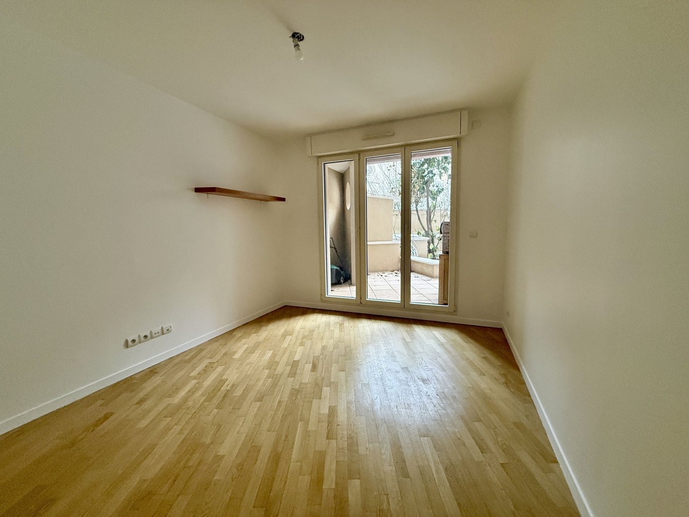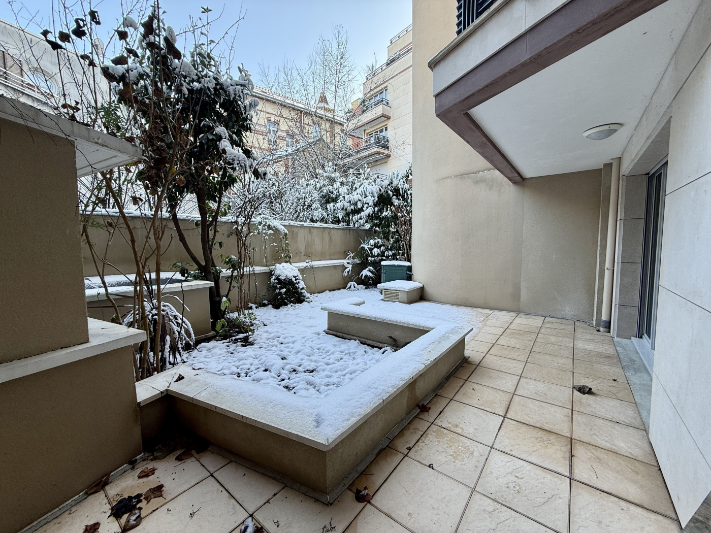 Au RDC (équivalent 1er étage) avec ascenseur, il est composé d'un séjour donnant sur une grande terrasse, une cuisine indépendante aménagée, trois chambres, une salle de bains, une salle d'eau, WC. Les pièces donnant sont rue sont équipées de fenêtres triple vitrage.