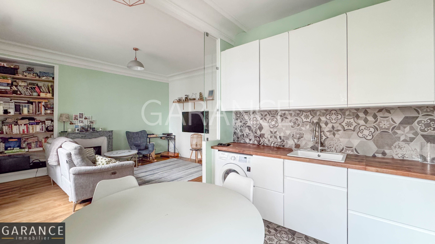 Cet appartement, alliant le charme de l'ancien et le confort moderne, se compose d'une entrée avec rangements, de deux chambres calmes sur cour (exposées Nord-Est), d'une salle d'eau avec WC, ainsi que d'une agréable pièce de vie lumineuse, exposée Sud-Ouest, comprenant une cuisine américaine entièrement aménagée et équipée.