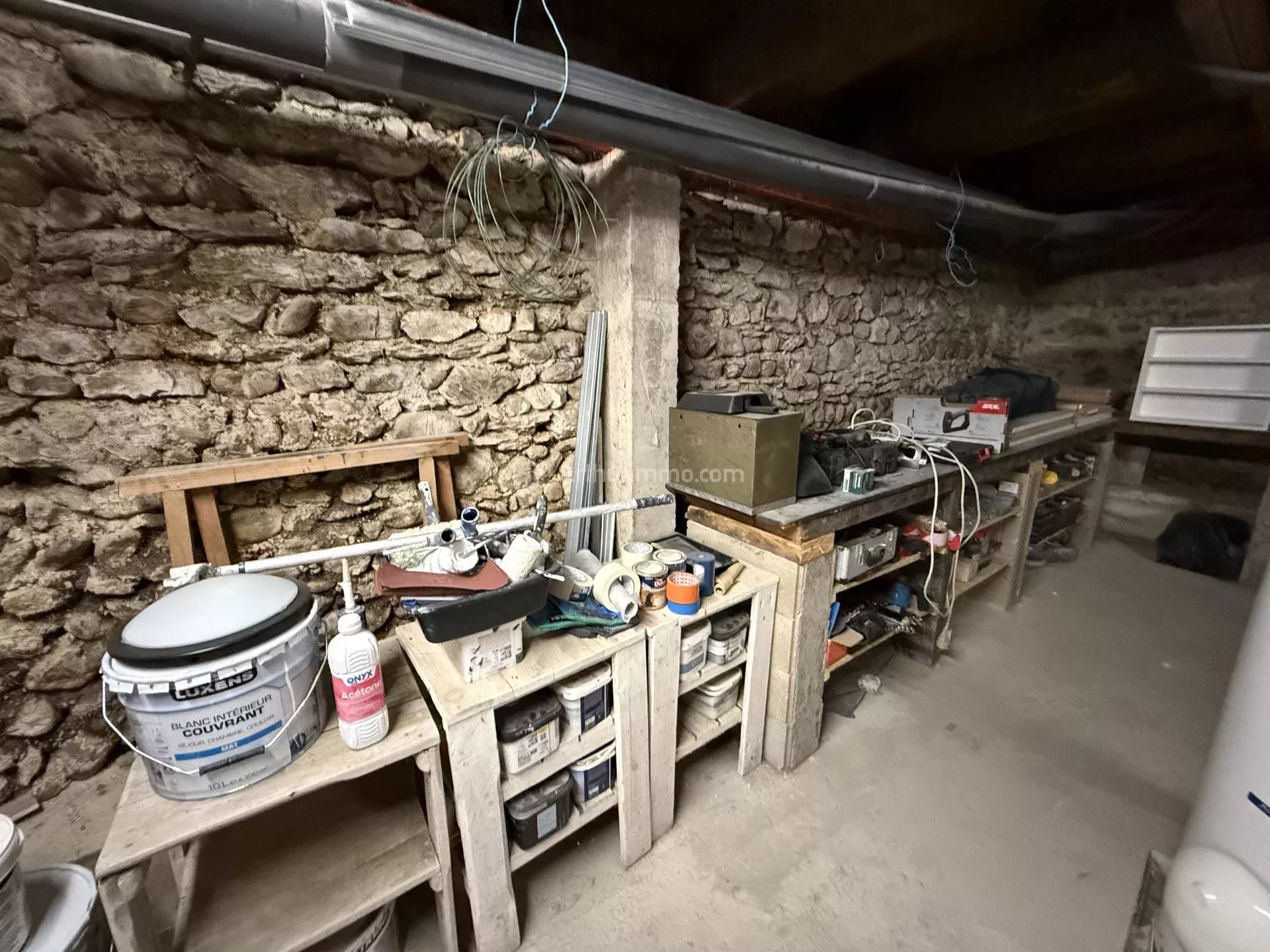 Maison entièrement rénovée, très agréable pièce de vie avec une belle cuisine ouverte, 2 chambres en p-pied, 1 pièce sous-comble. Chauffage avec un poêle à granulé et radiateur électrique. Sous sol complet, jardin avec places de parking portail automatique pour l'accès donnant sur la rue et garage.