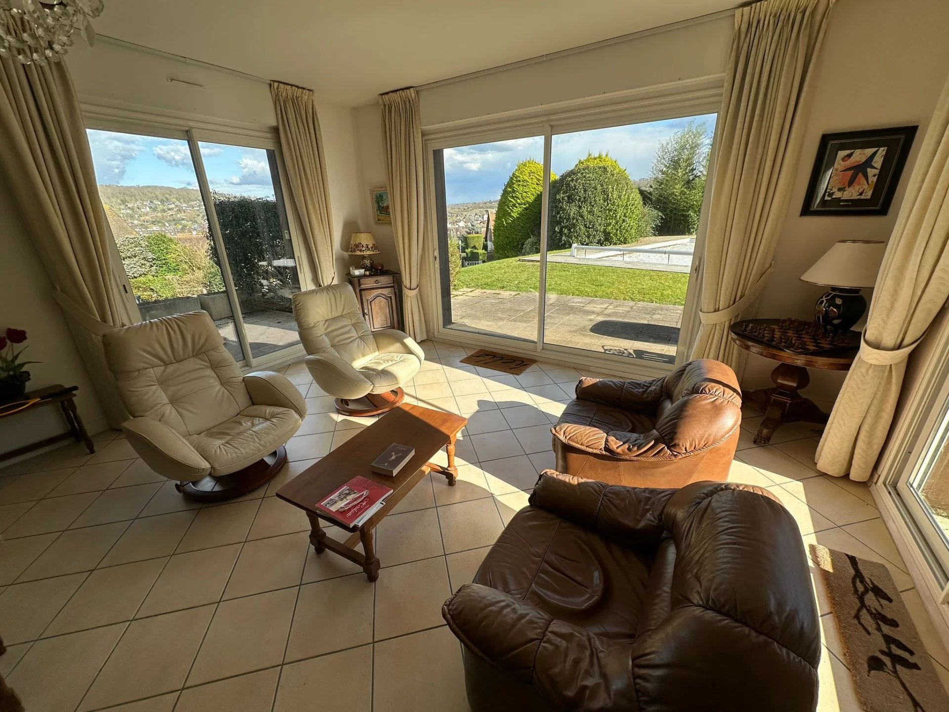 Dans domaine privé, de bon standing et au calme, avec la plage et le centre accessibles à pied, sur une parcelle arborée et avec magnifique vue sur Houlgate, propriété d'architecte de style néo-normand composée de 4 chambres dont une en rez de chaussée avec sa salle de bain et douche et une suite parentale à l'étage avec son dressing et sa salle de bain. Une grande pièce de vie avec salle à manger, salon avec cheminée et accès terrasse, jardin et piscine, Salle de douche, 3 w-c, sous-sol total avec chambre supplémentaire possible, parking intérieur et extérieur, local piscine, jardin de 1557m2 avec vue mer partielle. À VOIR SANS TARDER !