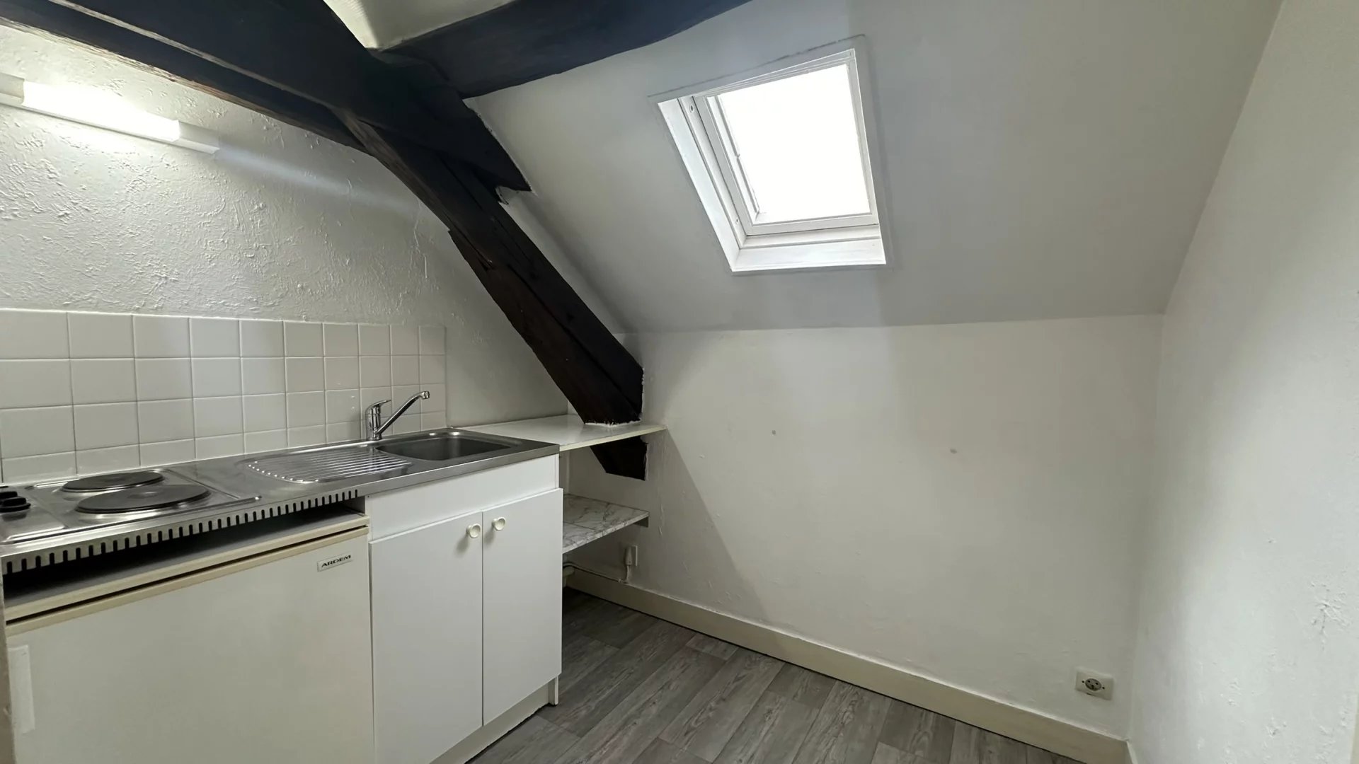 Secteur Tourelles à 2' du tram A et 6' de la rue Royale à pied - T1 en bon état au 2ème et dernier étage d'un petit immeuble très faibles charges, offrant + de 34 m² utile (20,27 en loi Carrez), comprenant : Entrée, pièce principale en L (possibilité de faire un coin nuit), cuisine ouverte séparée équipée (plaques et réfrigérateur), salle de bains avec wc. DPE D facilement atteignable. Stationnement libre dans la rue sans parcmètre. Loué 413 €uros mensuel hors charges. Les informations sur les risques auxquels ce bien est exposé sont disponibles sur le site Géorisques : georisques.gouv.fr