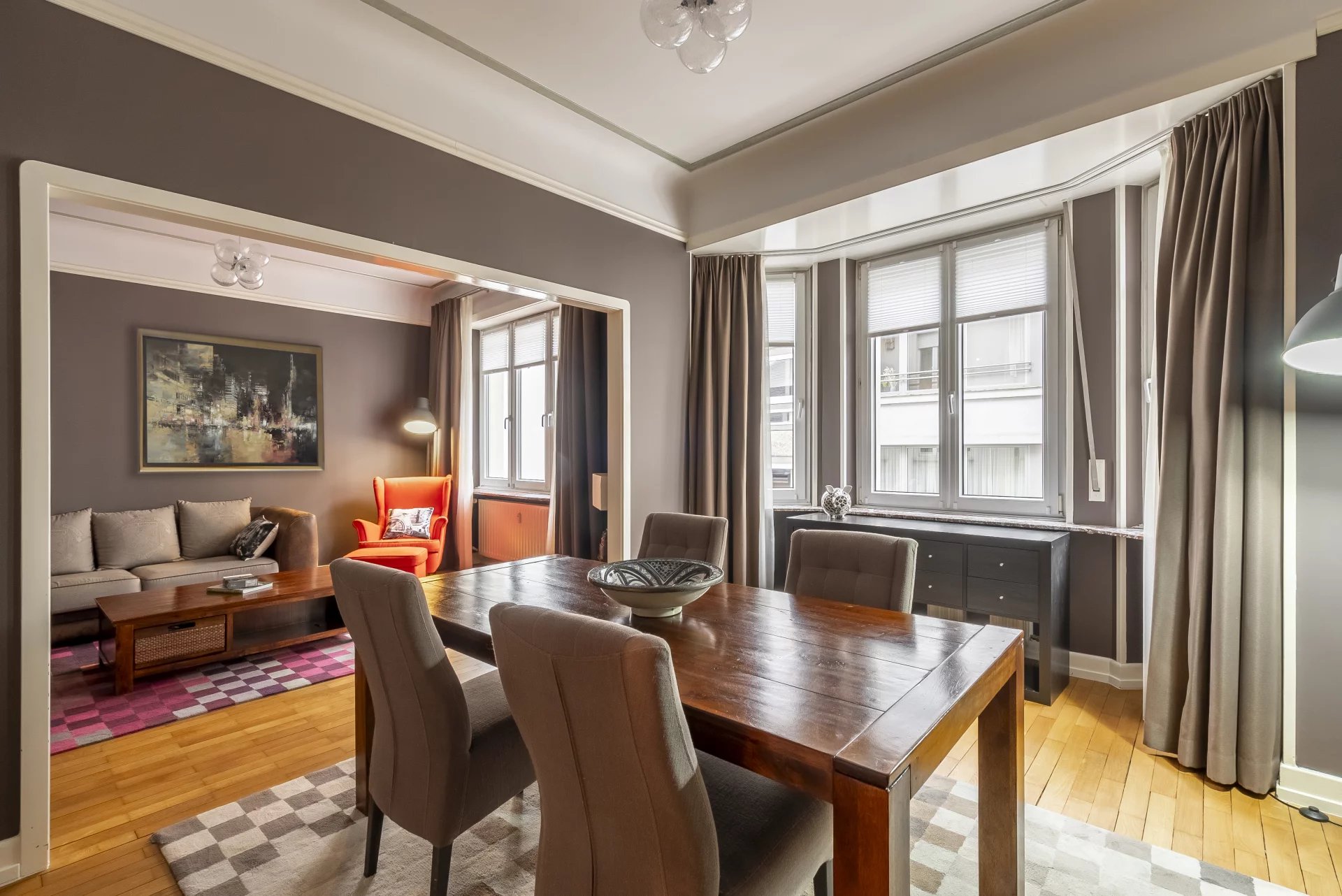 Une opportunité rare se présente pour celles et ceux qui souhaitent s’installer au cœur de Luxembourg Ville, avec ce bel appartement meublé situé au quatrième étage d’une résidence soignée de six niveaux. Le logement, en excellent état, développe une surface généreuse de 102 m². Il se compose de deux chambres, offrant des espaces nuit confortables et paisibles. La pièce de vie, réunissant salon et salle à manger, séduit par ses volumes ouverts et son atmosphère chaleureuse, parfaitement adaptée aussi bien à la détente qu’à la réception. La cuisine, séparée et entièrement équipée, propose un cadre fonctionnel et élégant pour la préparation des repas. La salle de bain se distingue par son niveau de confort élevé, avec une baignoire balnéo et une douche séparée, invitant à de véritables moments de relaxation. Un WC séparé complète l’ensemble et renforce la praticité au quotidien. La résidence est équipée d’un ascenseur, garantissant une accessibilité optimale et un confort de vie appréciable. Un vidéophone assure un contrôle d’accès sécurisé et renforce la tranquillité des occupants. Le chauffage est assuré par une installation au gaz avec radiateurs, garantissant un confort thermique constant tout au long de l’année. Cet appartement meublé sera disponible à partir du 15 avril 2026. Il constitue une opportunité de choix pour profiter d’un cadre de vie privilégié à Luxembourg Ville. Pour toute information complémentaire ou pour organiser une visite, une prise de contact rapide est vivement recommandée.