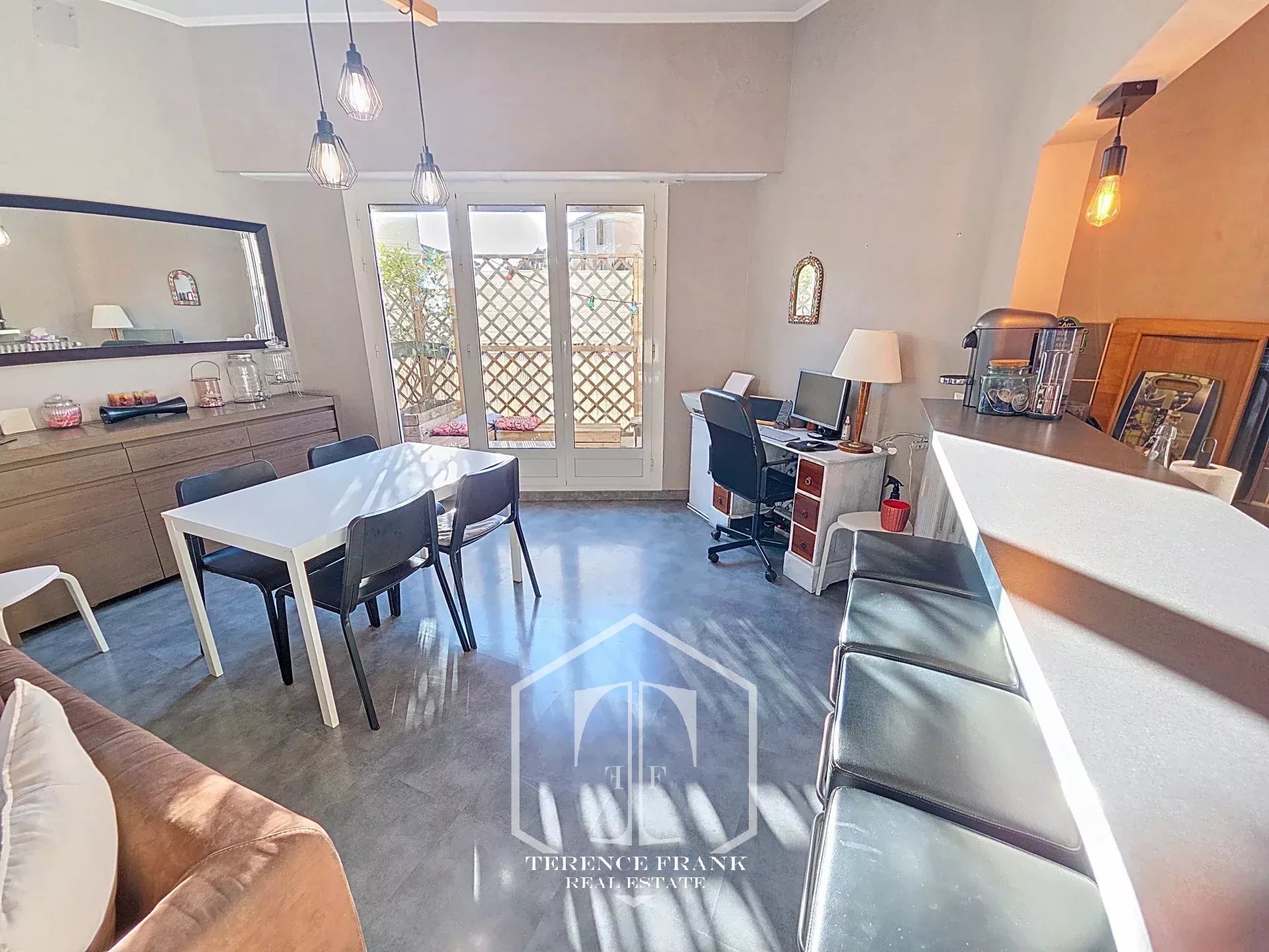 Situé en rez-de-chaussée, l’appartement bénéficie néanmoins d’un ensoleillement remarquable grâce à sa triple exposition Est, Sud et Ouest, un véritable atout qui fait oublier cet aspect.