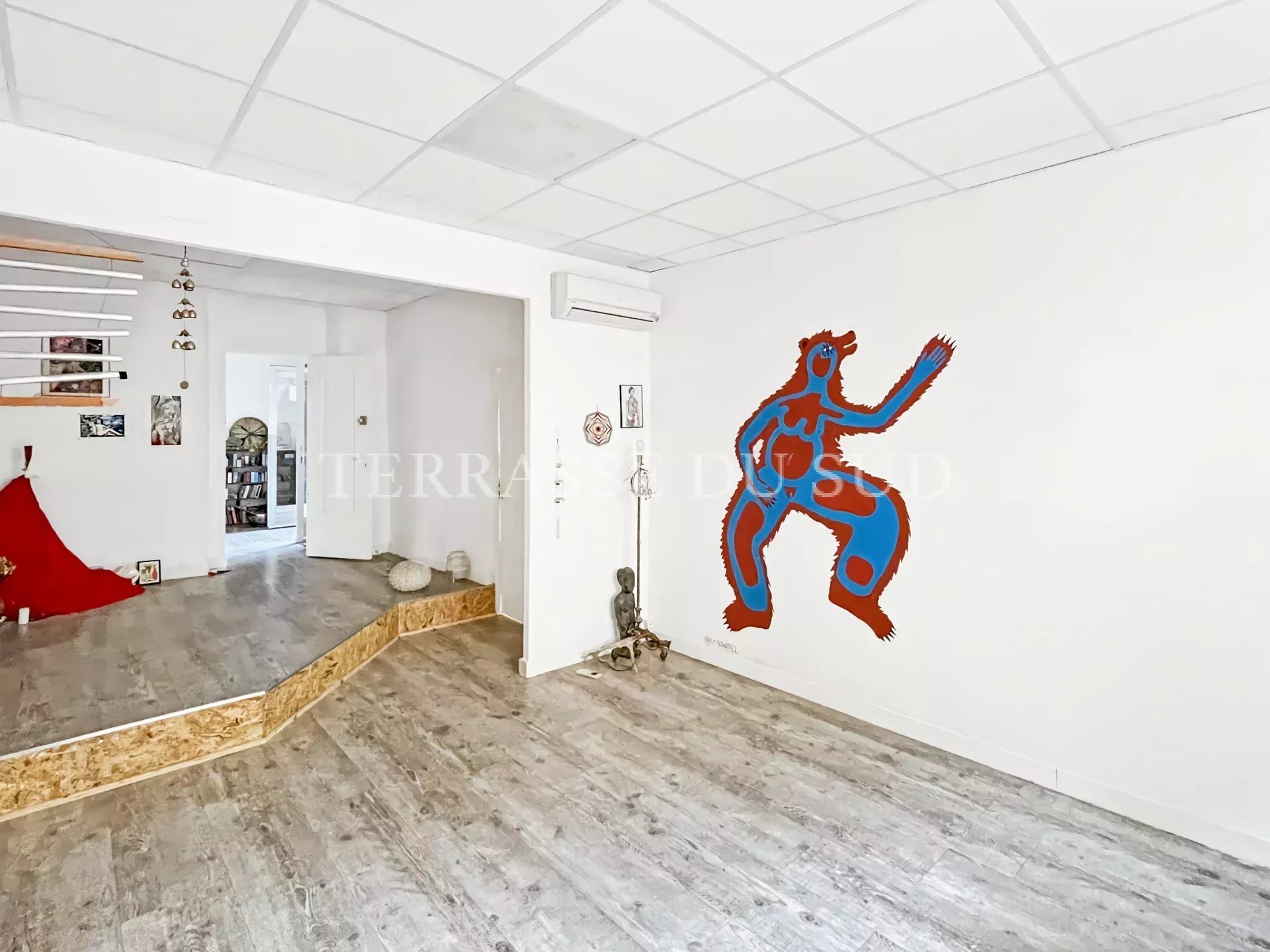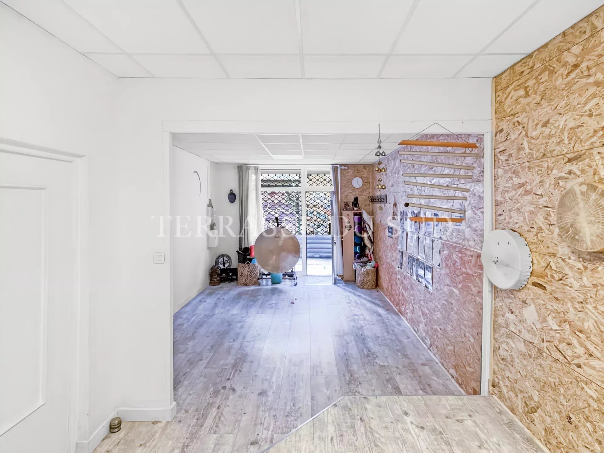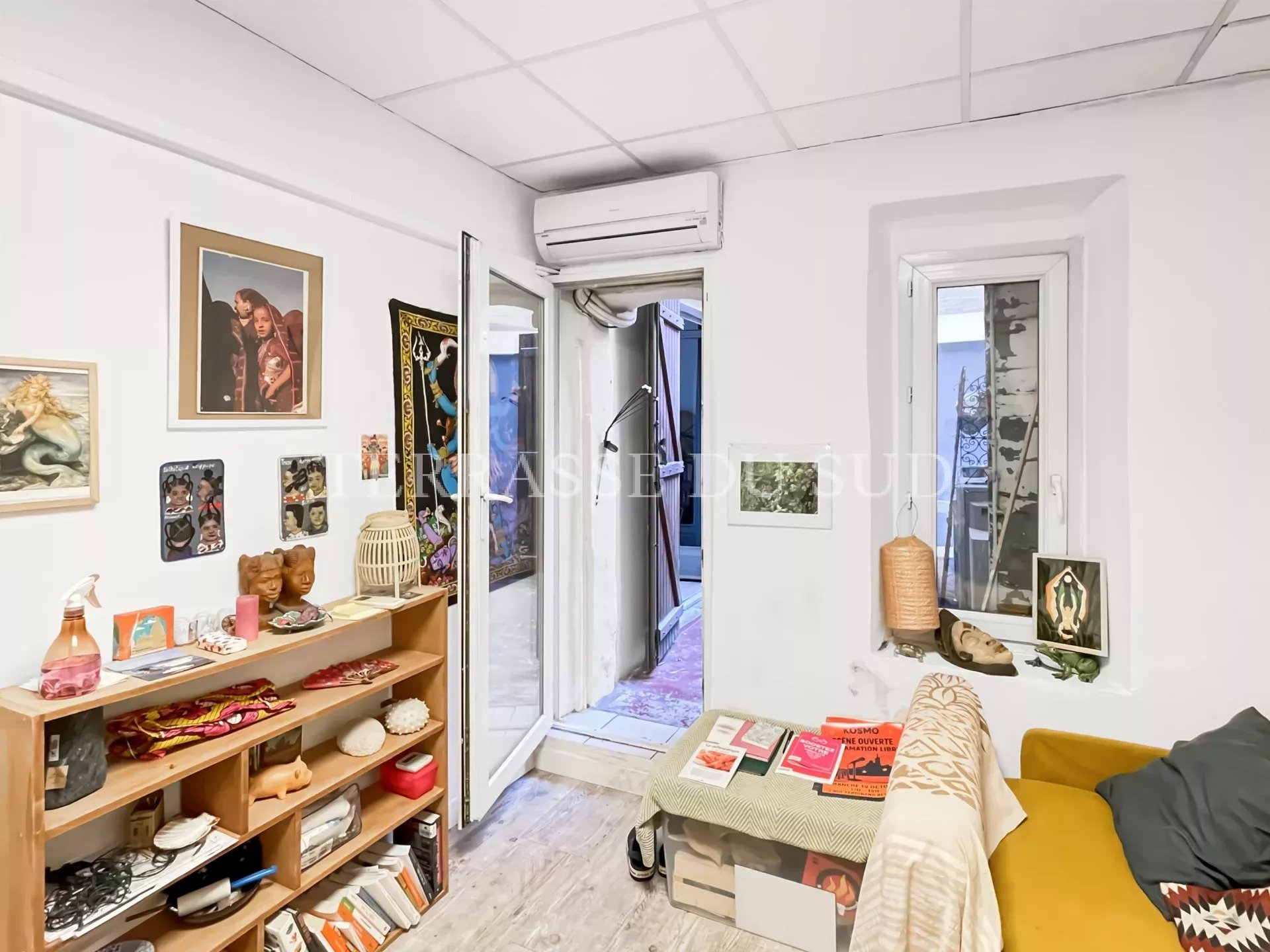 Appartement à usage de bureaux ou profession libérale, avec courette à ciel ouvert et cave. En rez de chaussée d'un immeuble marseillais, ce local propose 3 pièces pour une surface totale de 45 m2 environ (loi Carrez de 36,69m2); deux pièces ouvrent directement sur la courette à ciel ouvert, en jouissance exclusive. Prestations: vitrine avec volet métallique, chauffage par climatisation réversible, grande cave. SITUATION IDÉALE AU COEUR DU QUARTIER DE LA PLAINE (rue Ferdinand REY), A PROXIMITÉ DU MÉTRO ET DU BUS ET DE TOUTES LES COMMODITÉS. IDÉAL PROFESSION LIBÉRALE OU DE SERVICE. Contact: Anne LAFON, 06.10.27.00.14. Agent commercial immatriculé au RSAC Marseille sous le n°508747656