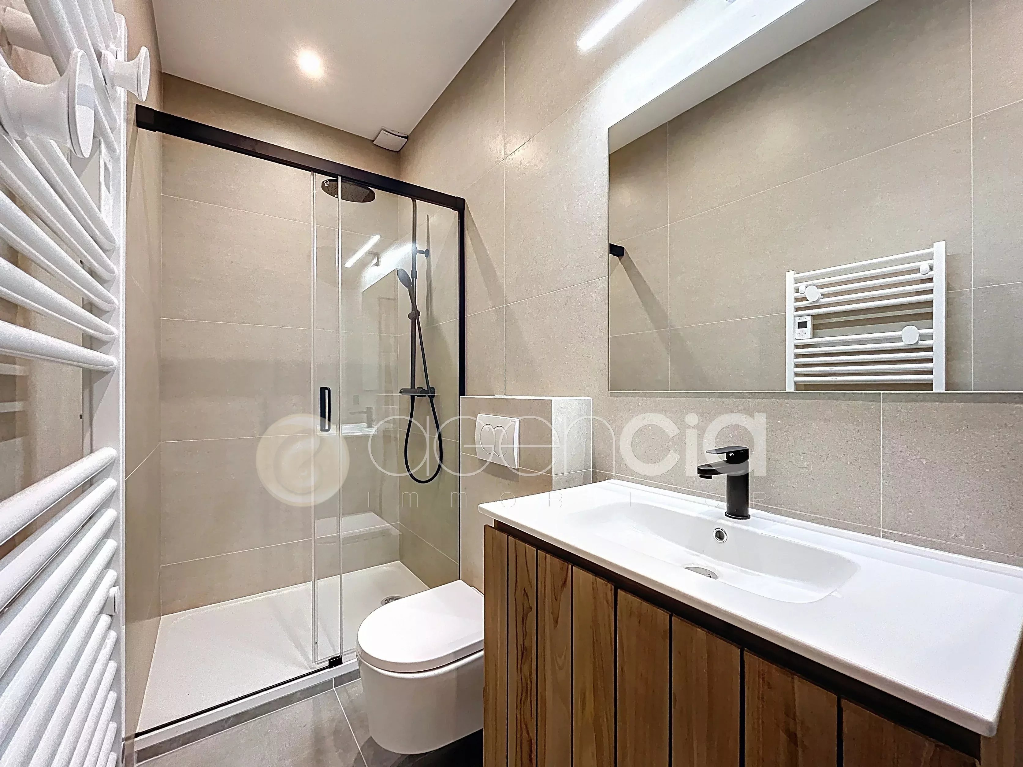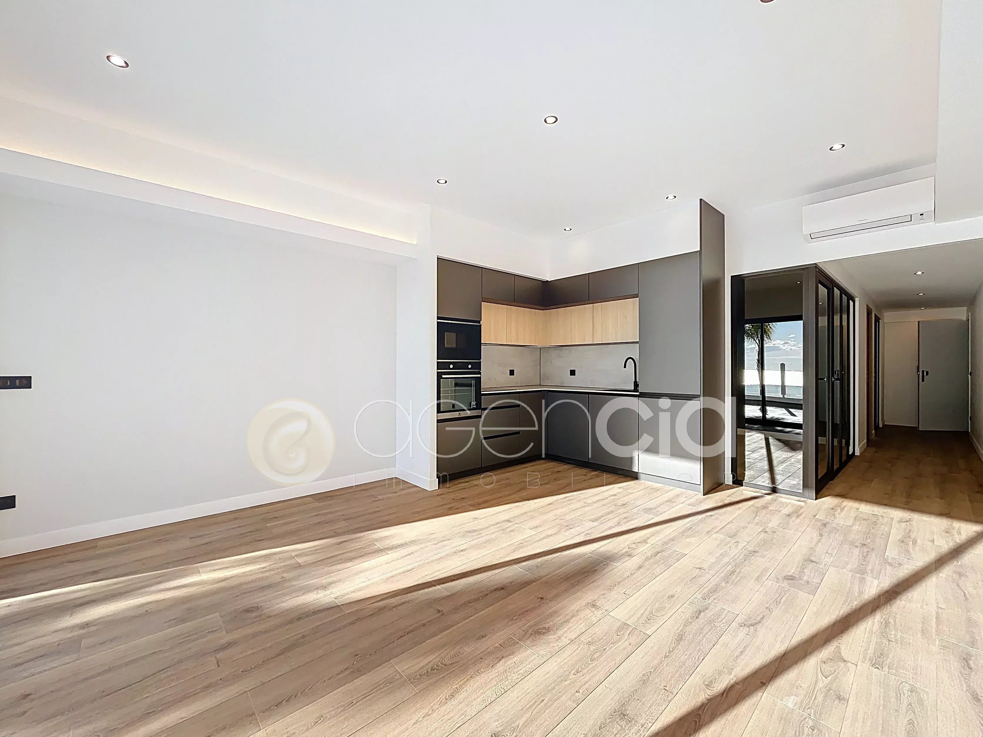 NEUF - Cannes - Croix des Gardes, superbe rénovation avec garantie décennale et frais de notaire réduits, dans une résidence de standing sécurisée, avec piscine et tennis. Venez découvrir cet appartement haut de gamme 3 pièces d’une superficie d'environ 55m² qui dispose d’un spacieux séjour avec cuisine moderne neuve, équipée d’un bar de réception, idéal pour recevoir vos amis. Un séjour spacieux et lumineux qui donne sur une grande TERRASSE DE 27M² avec VUE MER PANORAMIQUE sur les îles de Lérins. La partie nuit, comprend deux chambres avec verrière et placards de rangements et une salle de douche moderne. Idéal pied à terre ou investissement locatif à FORT POTENTIEL. Les avantages : Vue mer panoramique Appartement spacieux et moderne Grande terrasse plein SUD Piscine et tennis À proximité du parc classé de la Croix des Gardes Accès plage à seulement 8 minutes à pieds Vendu non meublée