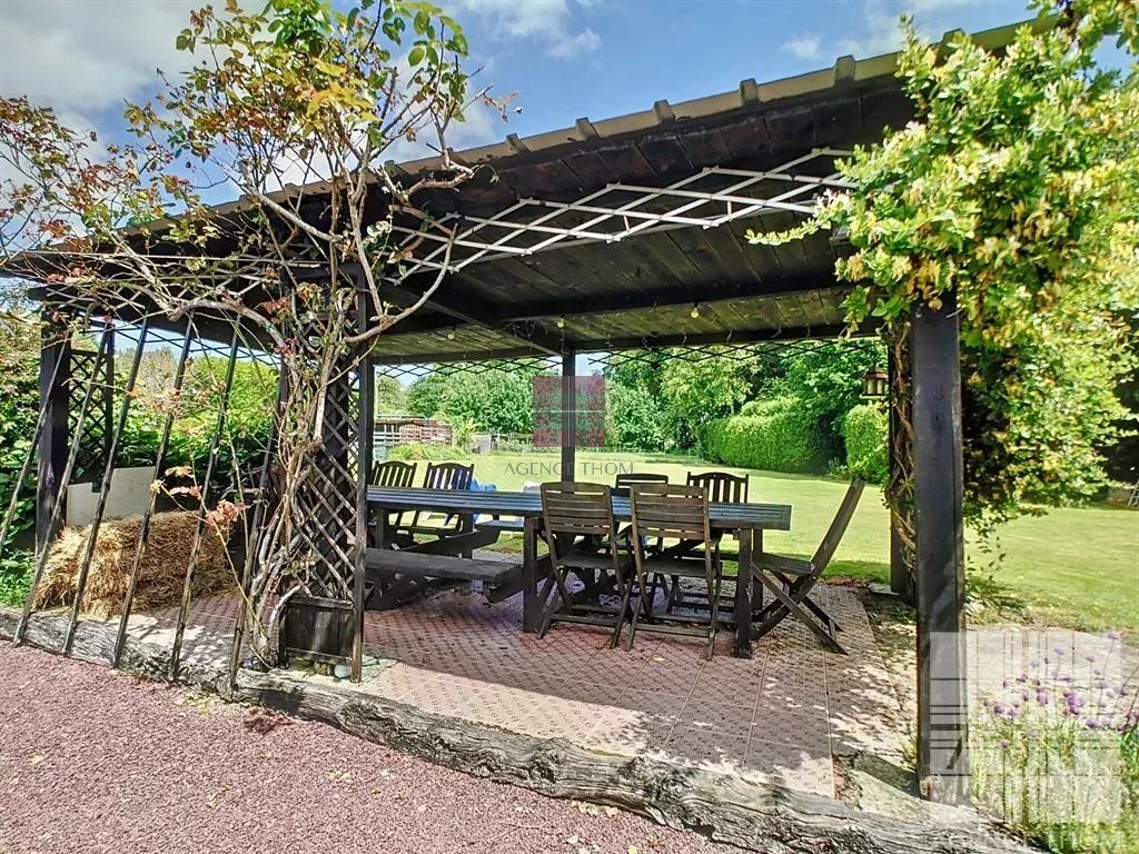 À lextérieur, le terrain de plus de 3 200 m² abrite une piscine hors sol, un jeu de boules, un chalet en bois, une dépendance et un hangar. Un véritable havre de paix, propice à la détente et aux projets.