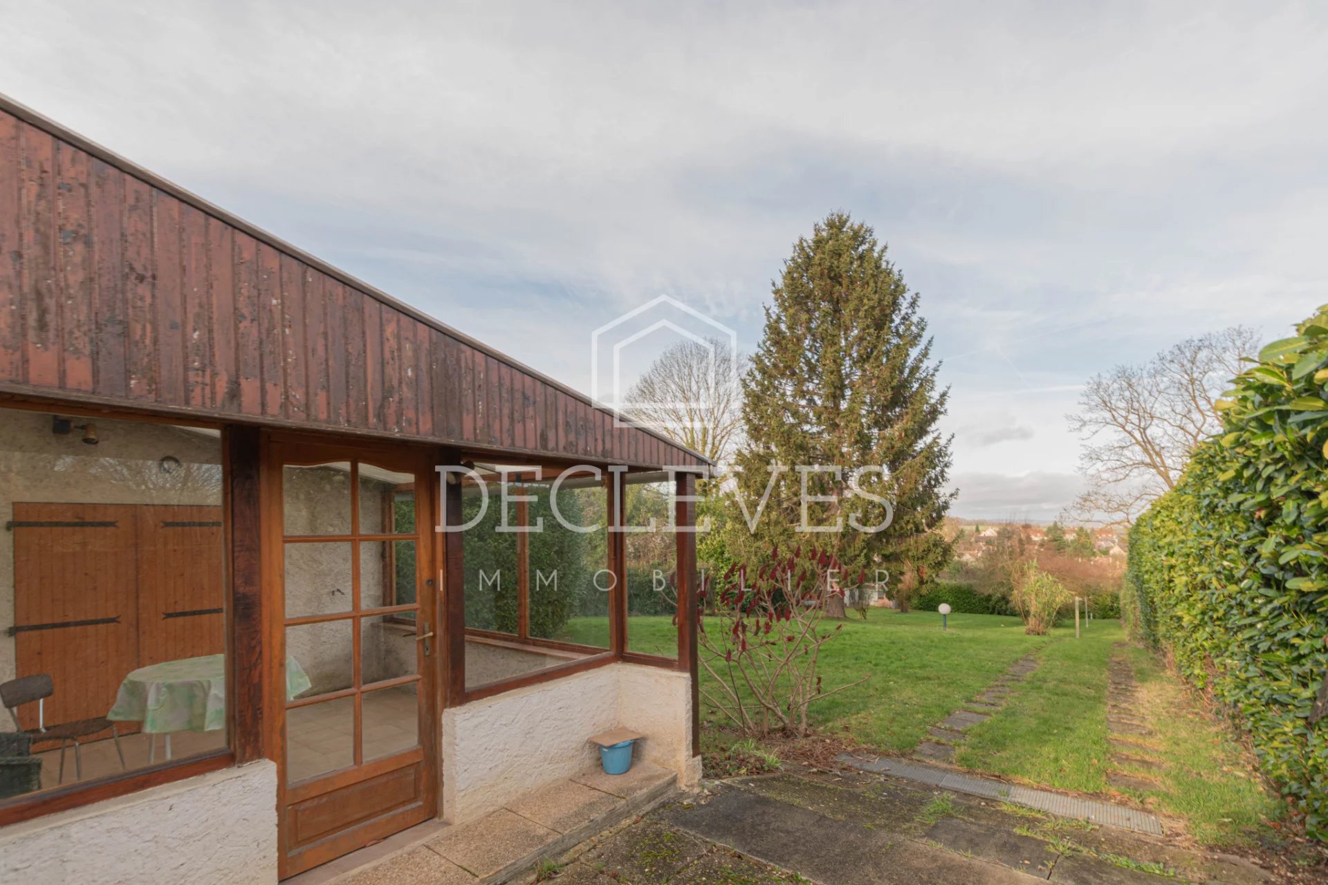 Située sur la commune de Morainvilliers, au fond d'une impasse au calme absolu, cette maison ancienne bénéficie d'une vue dégagée et imprenable sur la vallée. Édifiée sur un terrain de 3 730 m2, elle dispose également d'un hangar en fond de parcelle. La maison se compose au rez-de-chaussée d'une entrée indépendante, d'une cuisine de 16,50 m2, d'un séjour traversant lumineux de 23,34 m2, d'un cellier, d'un dégagement, d'une chaufferie, ainsi que d'une véranda. À l'étage, un dégagement dessert une salle de bains, deux chambres et une pièce traversante pouvant faire office de bureau, chambre d'appoint ou espace de loisirs. Des combles perdus complètent l'ensemble. Le terrain, entièrement clos, est constructible en partie, offrant de nombreuses possibilités. Le bien peut également faire l'objet d'une démolition en vue d'une reconstruction, permettant la réalisation d'une maison neuve et moins énergivore sur l'ensemble de la zone constructible. Honoraires à la charge de l'acquéreur : 5,00 %. Les informations sur les risques auxquels ce bien est exposé sont disponibles sur le site Géorisques : www.georisques.gouv.fr