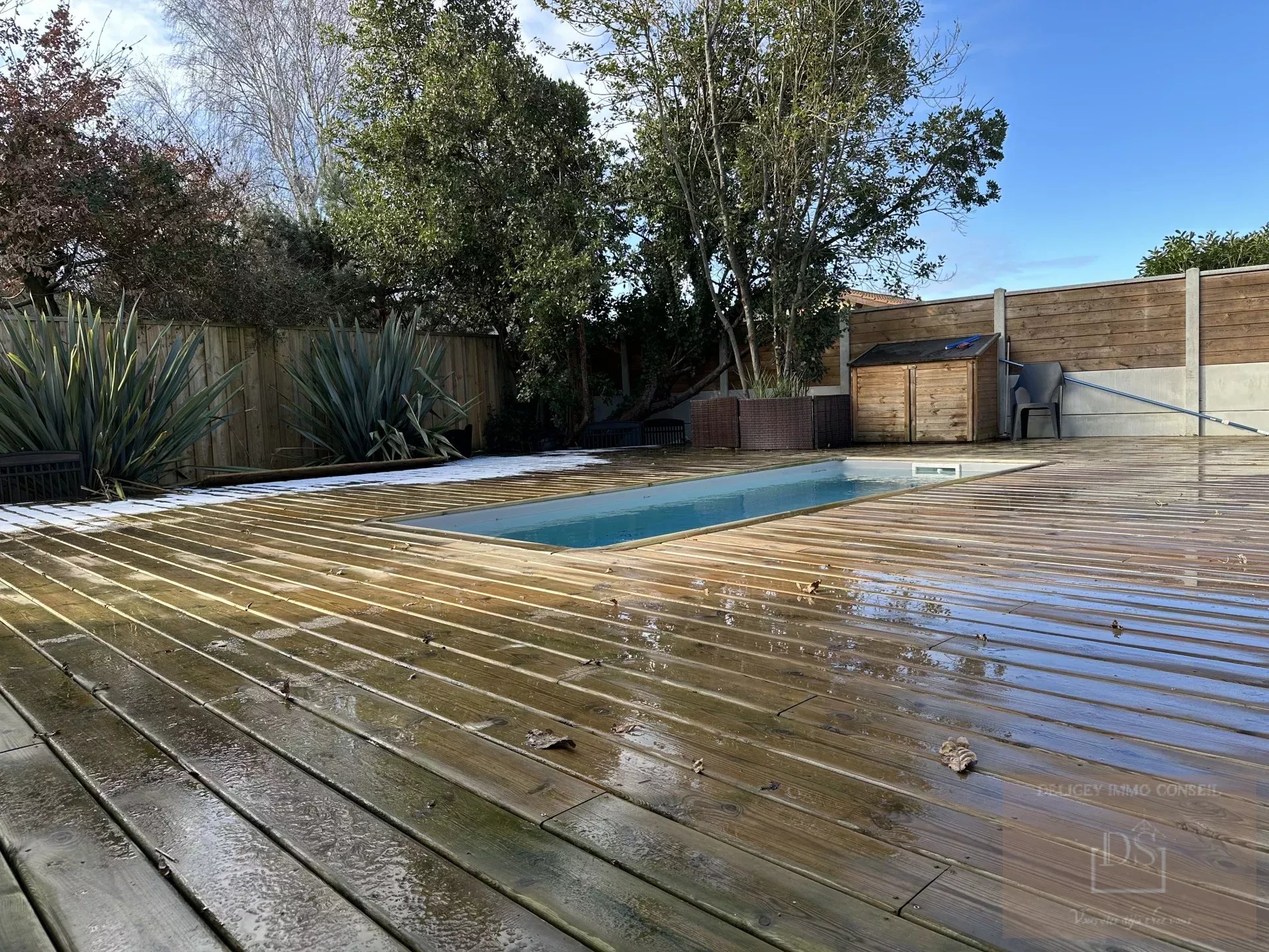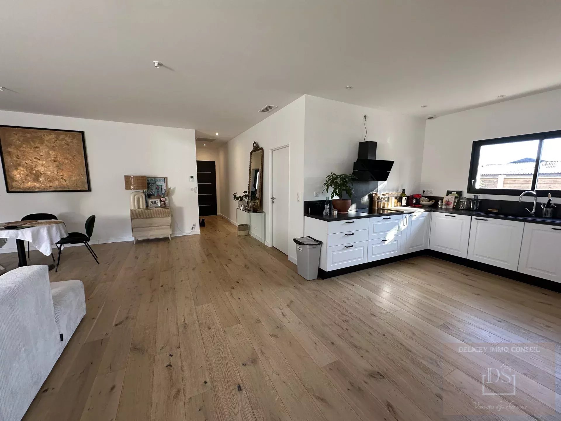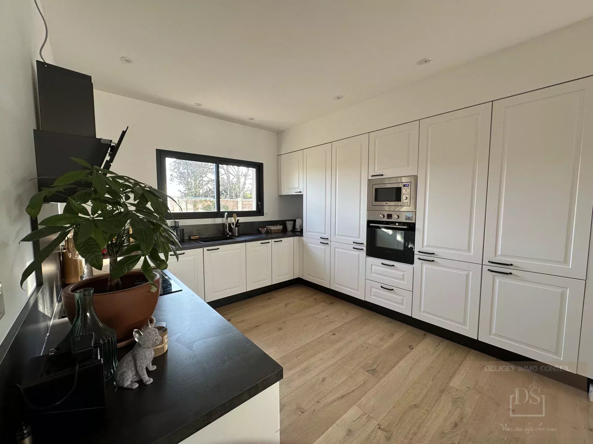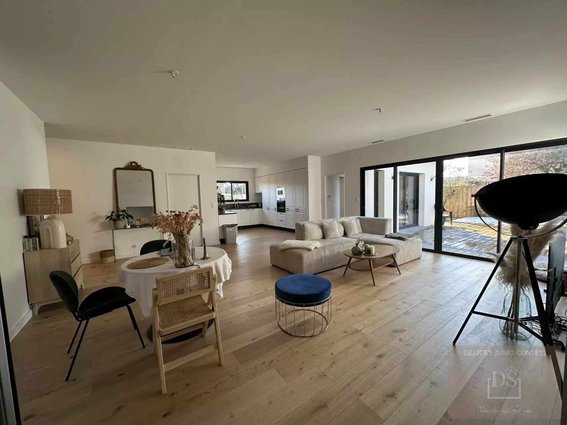 Découvrez cette superbe contemporaine de 2025, pensée dans les moindres détails pour offrir un cadre de vie d’exception. Sa vaste pièce de vie, orientée sud‑ouest, se distingue par une luminosité remarquable et une hauteur sous plafond qui sublime les volumes. La cuisine ouverte, entièrement équipée, s’intègre harmonieusement à l’ensemble et se prolonge par un cellier fonctionnel. La suite parentale de 25 m², avec salle d’eau et dressing sur mesure, offre un véritable espace privé. Trois chambres supplémentaires, une salle de bain complète (baignoire + douche), deux toilettes et un garage attenant complètent ce niveau de confort. Côté prestations, la maison bénéficie d’équipements haut de gamme : climatisation gainable, thermostats connectés par zone, cumulus thermodynamique et volets roulants centralisés, garantissant un confort optimal en toute saison. À l’extérieur, sur une parcelle de 600 m², une magnifique terrasse en bois de 130 m² entoure la piscine, créant un espace de détente privilégié, idéal pour recevoir ou profiter de moments en toute tranquillité. Sa situation à proximité immédiate des commerces et à 10 mn à pied de la gare en fait un atout supplémentaire. Frais de notaire réduits, garanties décennales, dommage ouvrage, une opportunité rare pour un bien de cette qualité. Il ne vous reste plus qu'à récupérer les clefs...Vous êtes déjà chez vous !!! Les informations sur les risques auxquels ce bien est exposé sont disponibles sur le site Géorisques : georisques.gouv.fr
