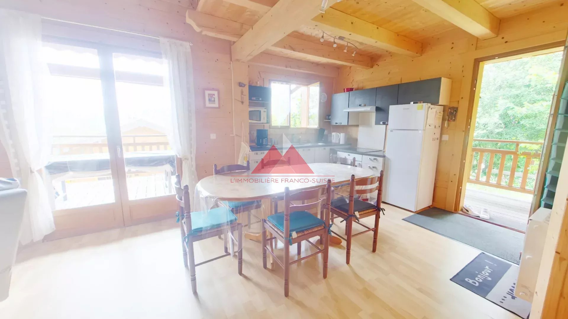 Chalet individuel de 2009, de 55m² habitable et 70m² en surface totale, disposant d'un parcelle de 352m², d'une belle terrasse exposée plein sud et d'un local pour rangement.