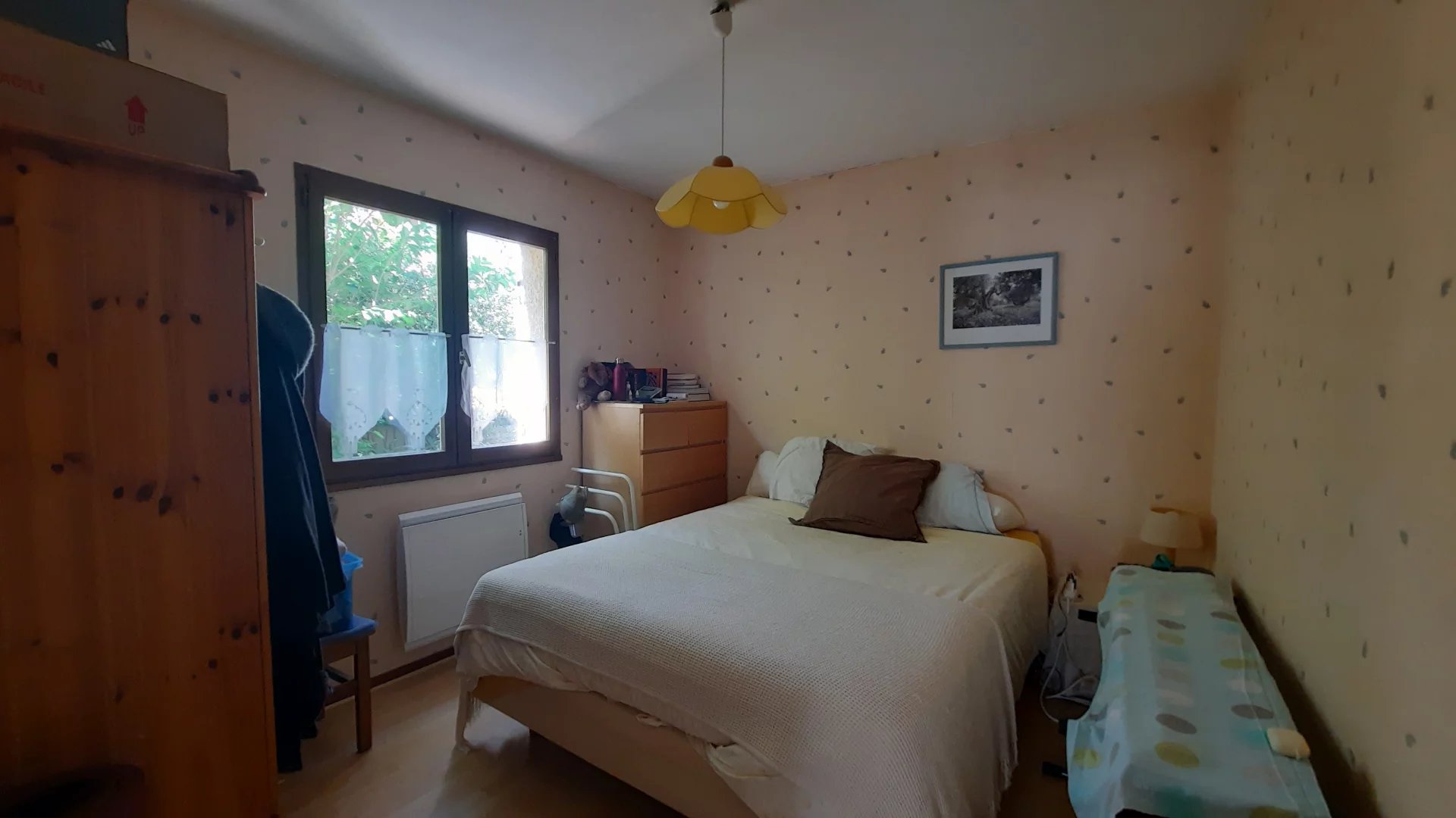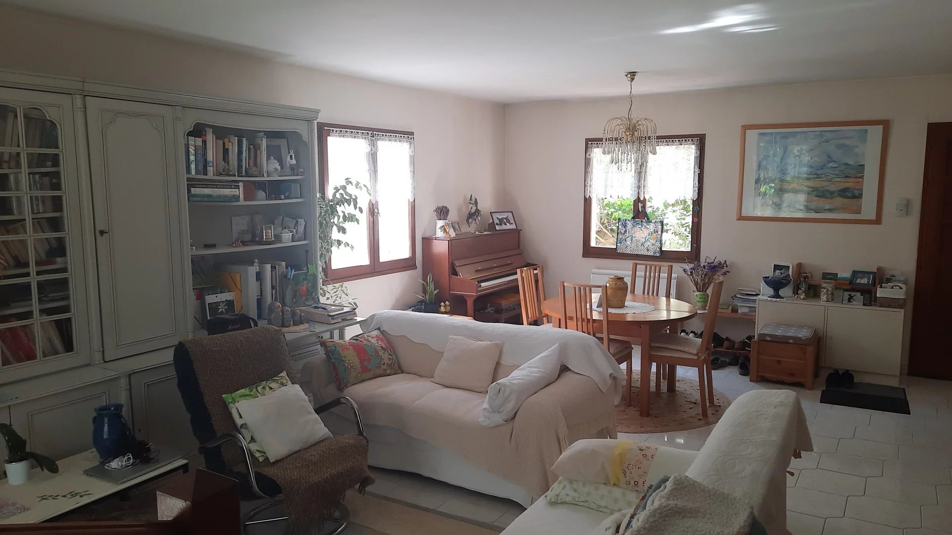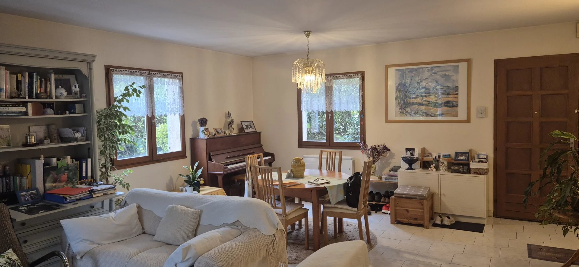 Elle offre un spacieux séjour lumineux ouvrant sur une grande terrasse ainsi que sur un jardin arboré, parfait pour profiter de la nature.