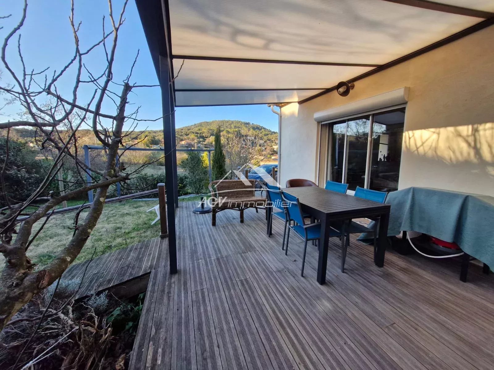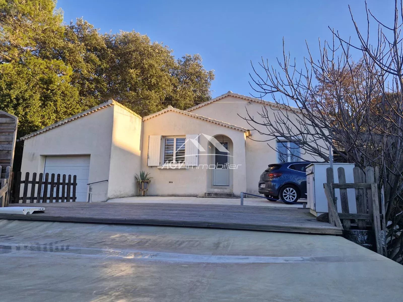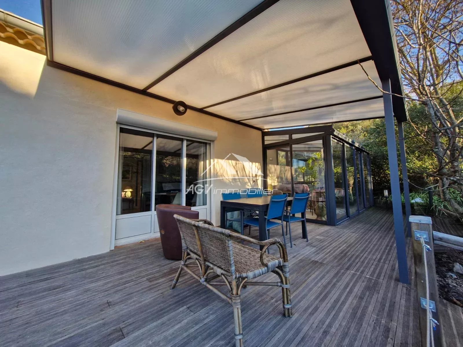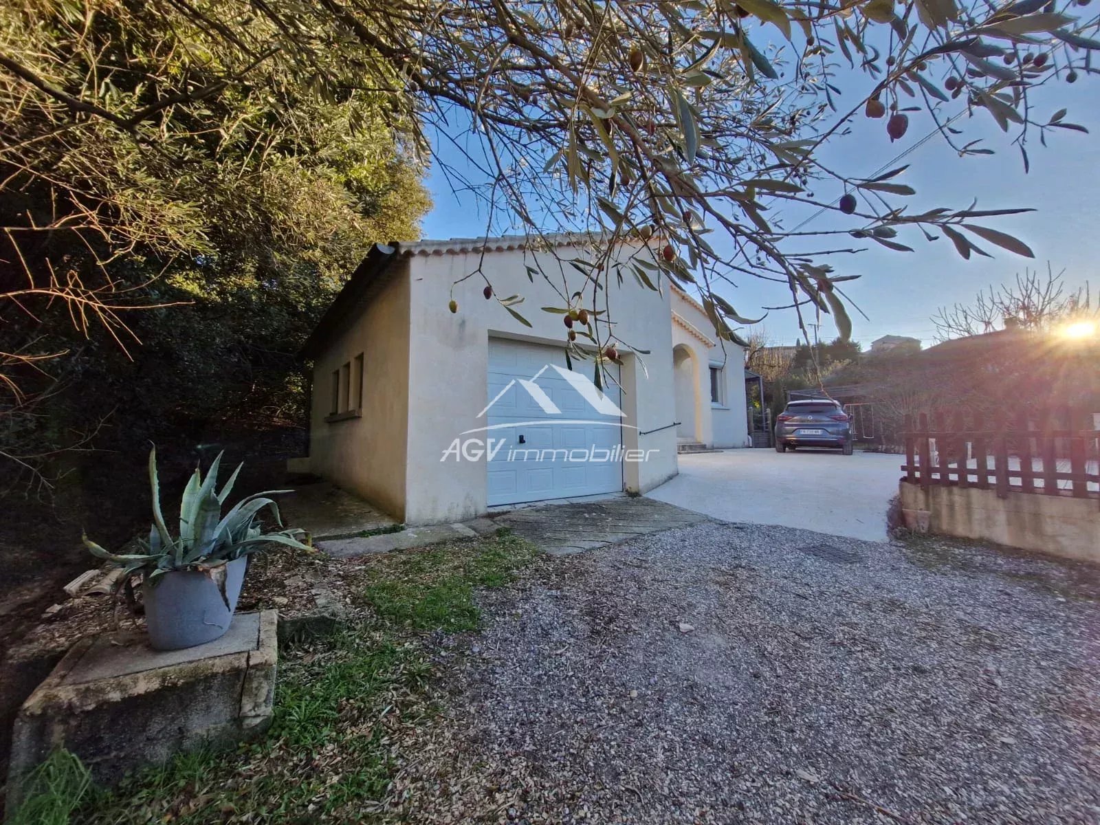 Située au calme dans un environnement verdoyant, maison de plain-pied, rénovée avec goût, se compose d'une entrée, une cuisine, un séjour, une véranda, deux chambres, une salle d'eau et un toilette. La maison dispose d'une piscine hors-sol, une terrasse et un terrain attenant d'environ 1663 m² avec vue panoramique.