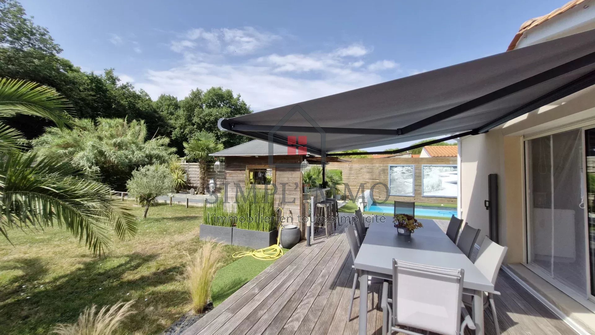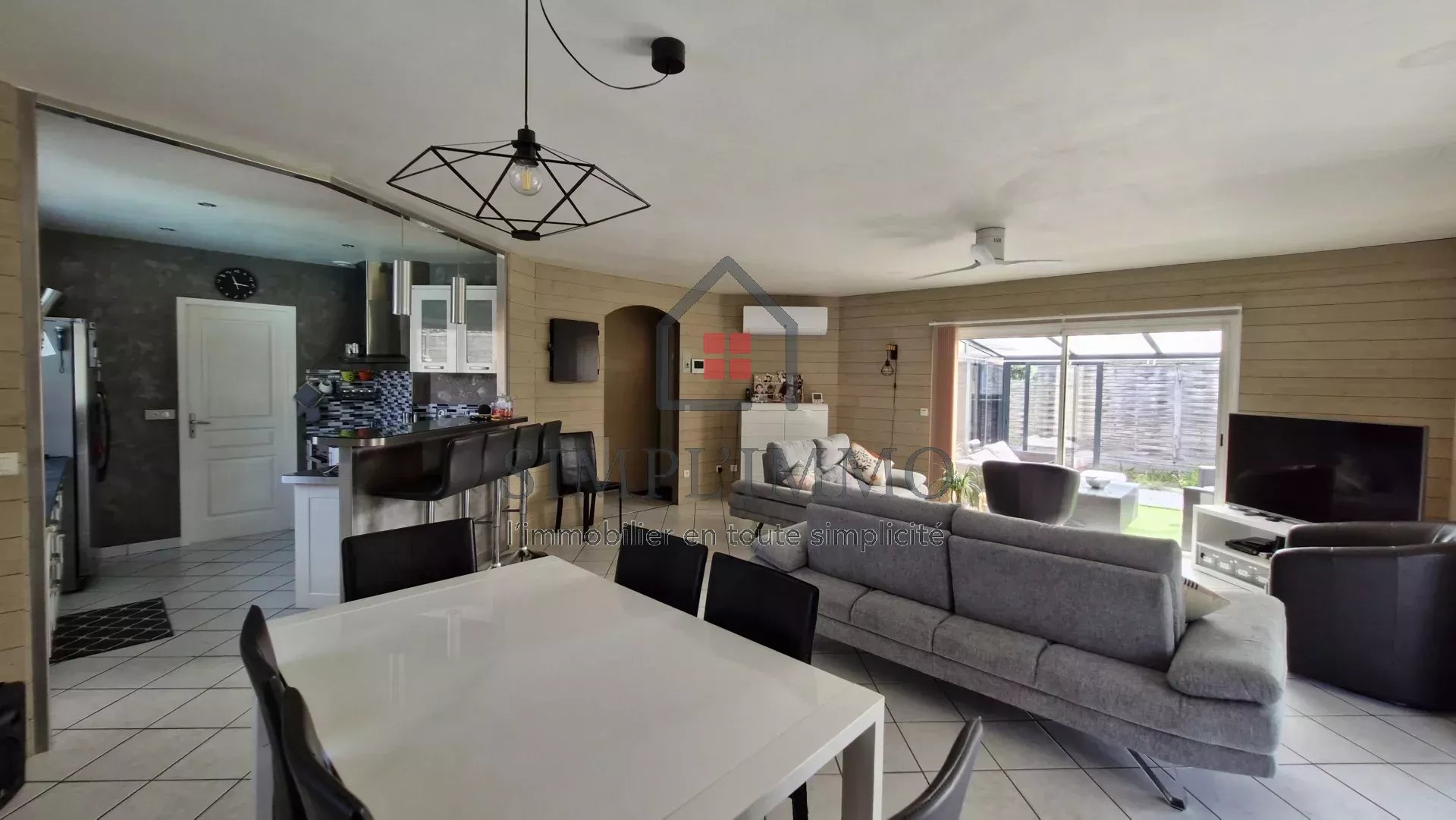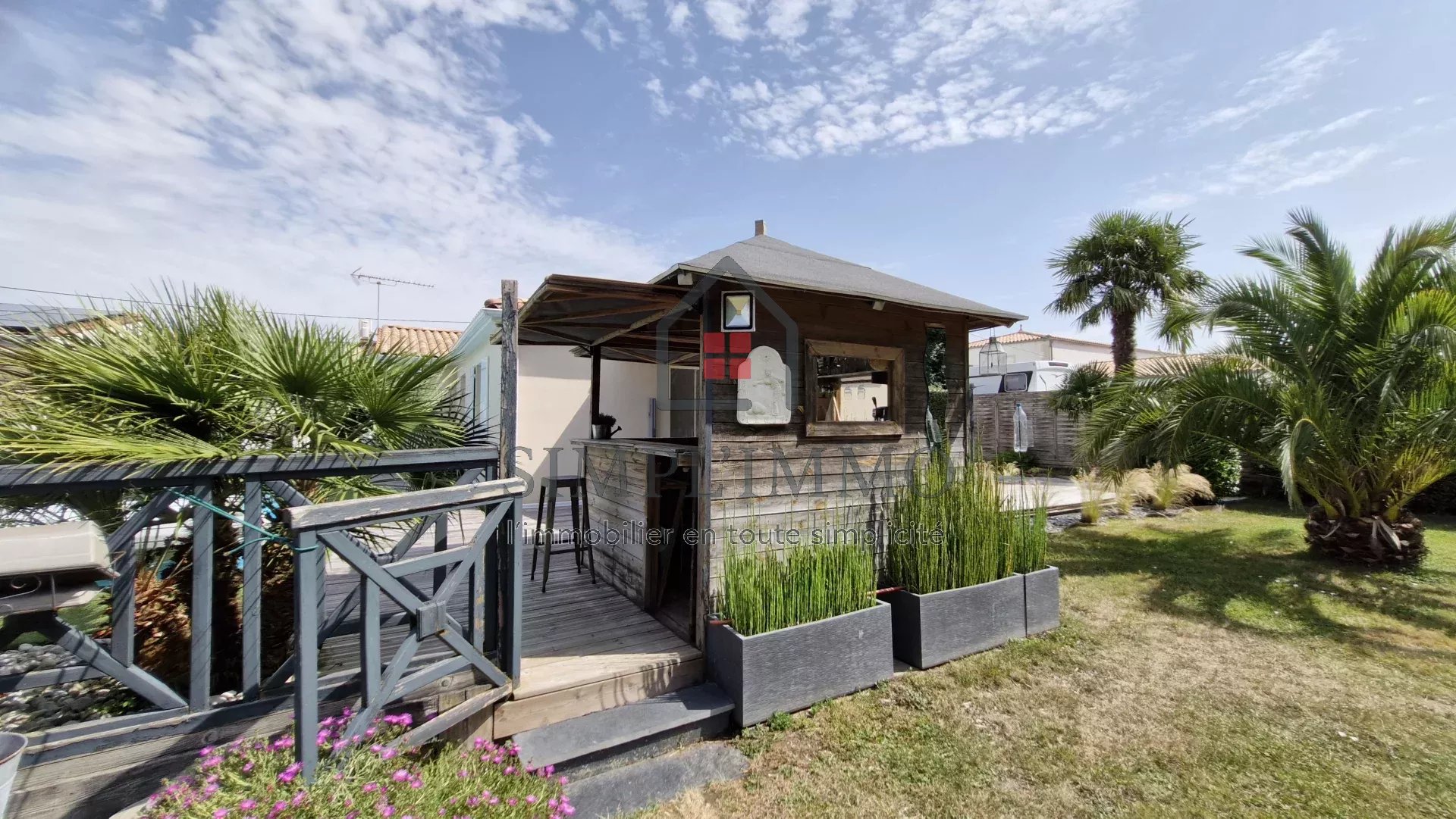 La maison principale se compose d’une grande pièce de vie lumineuse avec cuisine ouverte et aménagée, parfaite pour les moments en famille ou entre amis. Elle dispose de trois chambres, ainsi que d’une suite parentale avec salle d’eau privative. Un WC indépendant, un cellier pratique à proximité de la cuisine et un garage complètent cet espace de vie fonctionnel et confortable.
