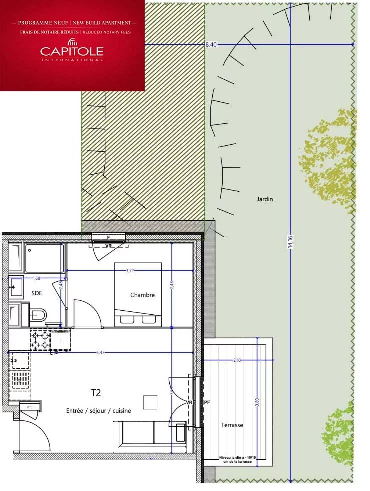 Découvrez ce 2 pièces neuf de 32 m² en rez de jardin d'environ 90m².