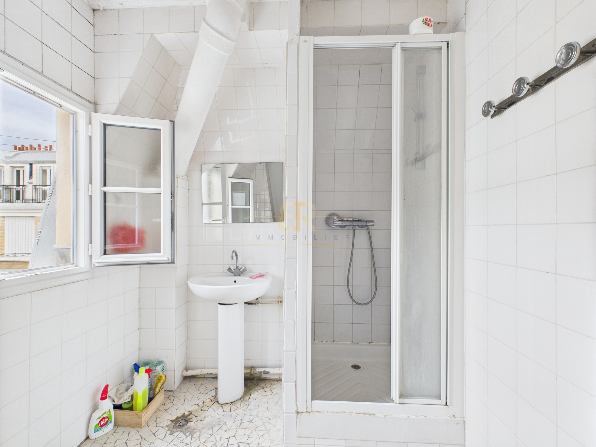 Les sanitaires (toilettes et salle de bain) sont situés à l'extérieur du logement, à usage privatif et sécurisé sous clé. Ils sont entretenus régulièrement par la gardienne de l'immeuble.