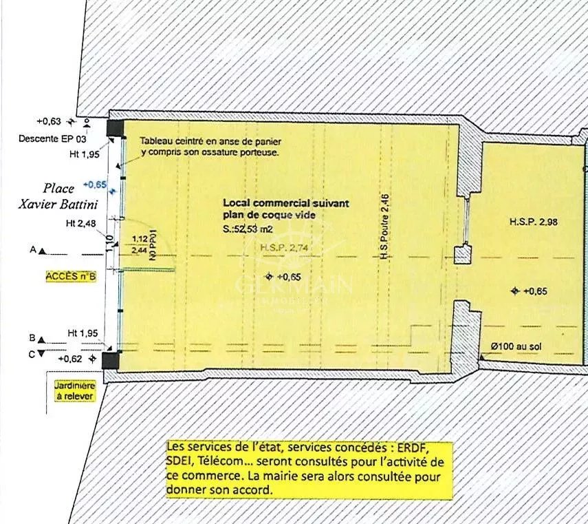 L’Agence Germain vous propose une opportunité rare en cœur de ville : un local commercial tous commerces d’environ 52 m², à rénover, idéalement situé sur une charmante place ombragée et très fréquentée par les touristes. Bénéficiant d’un emplacement de premier choix, ce bien offre un fort potentiel d’aménagement pour tout projet commercial ou artisanal souhaitant s’implanter dans un cadre vivant et authentique. Le local se compose de deux lots en copropriété, permettant une organisation des espaces souple et fonctionnelle.