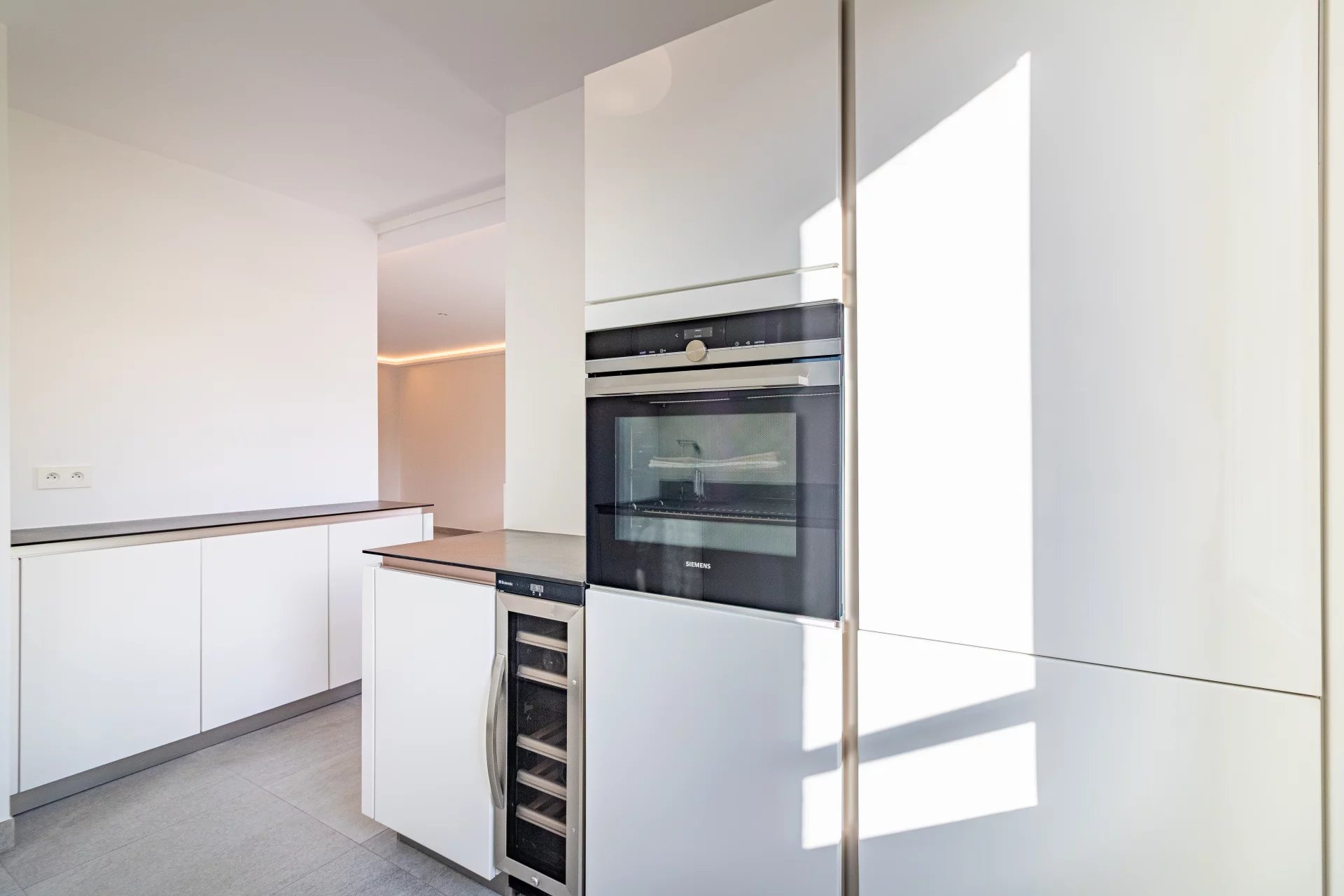 L'immobile dispone di un elegante bagno con doccia e doppio lavabo, nonché di un'ampia cucina completamente attrezzata con materiali ed elettrodomestici di alta gamma.