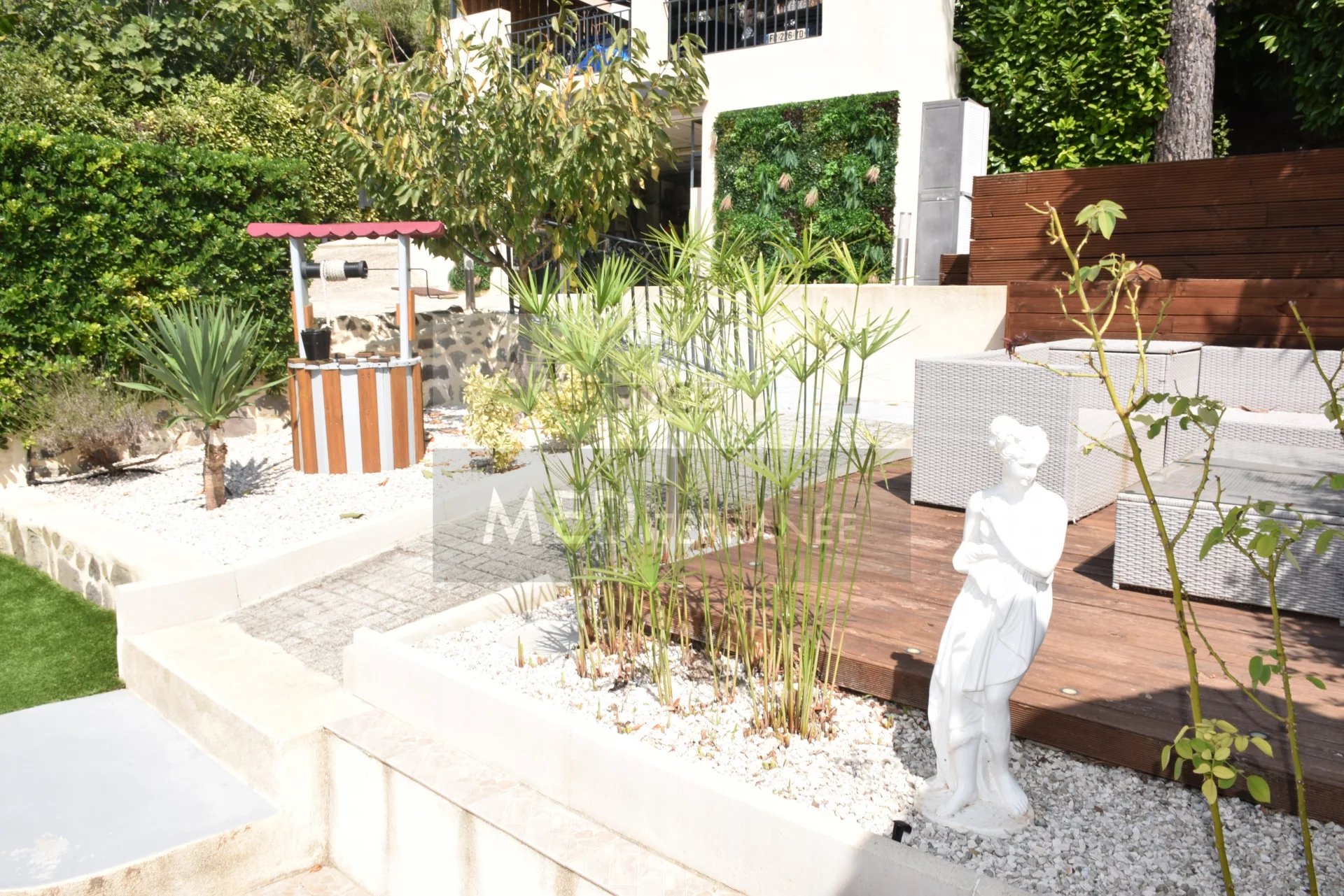 - 1er niveau : entrée, séjour avec cuisine ouverte, buanderie et toilettes. Terrasse ensoleillée sans vis à vis. Espace extérieur avec salon de jardin et piscine hors sol.