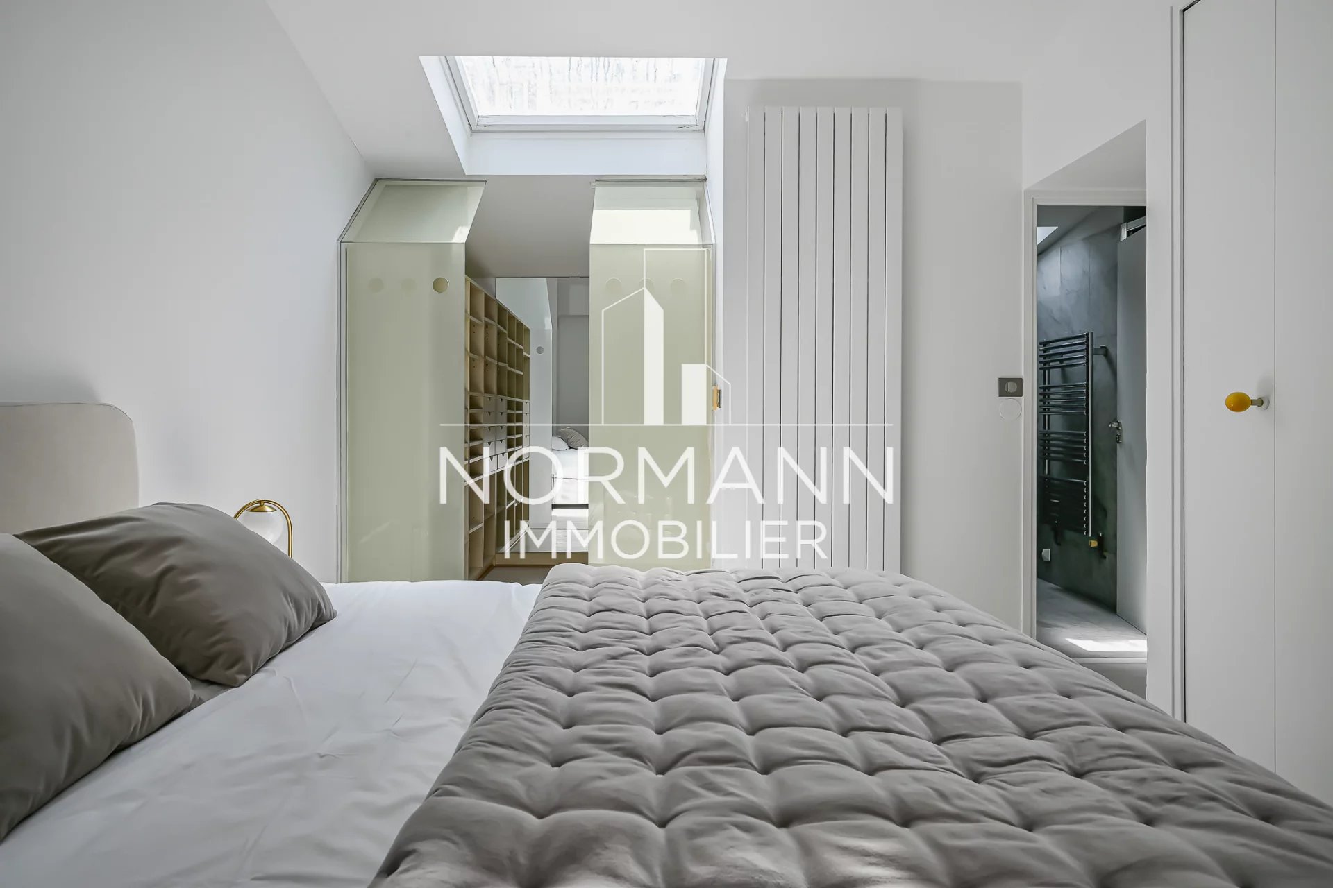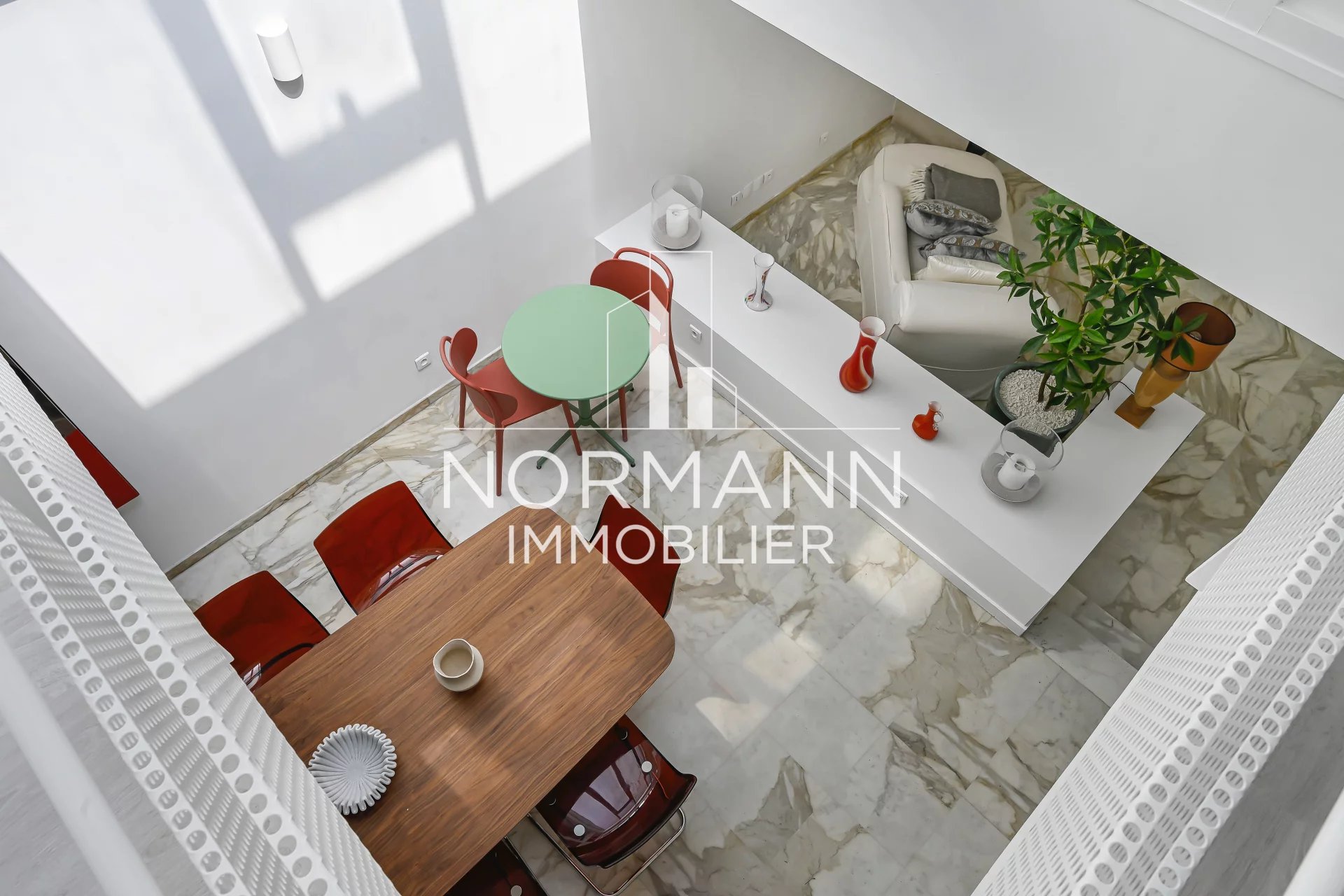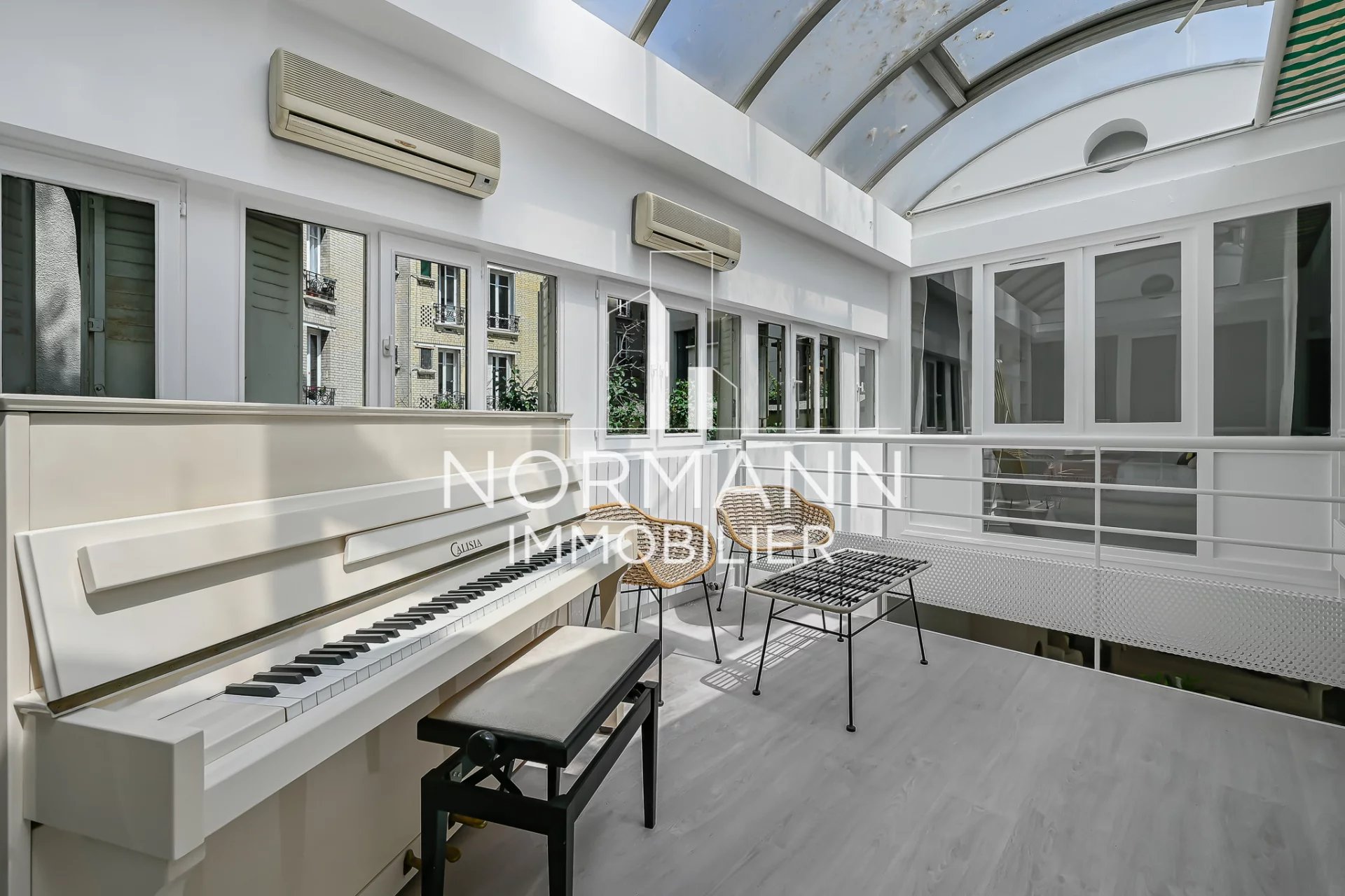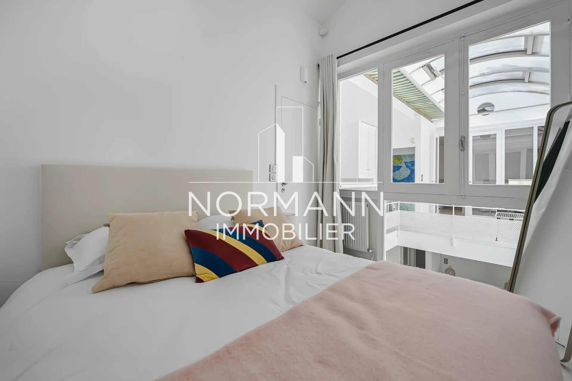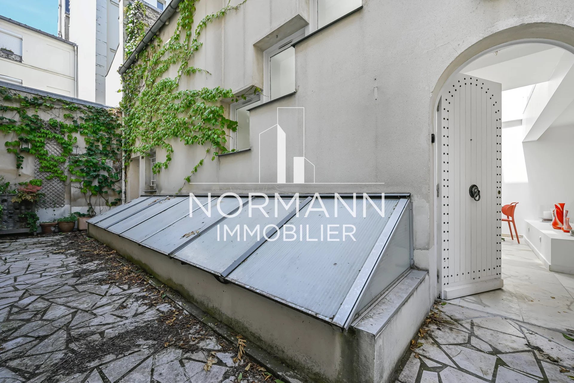 Rare : Maison de ville réalisée par le célèbre architecte Pierre Colboc (architecte du Musée d'Orsay) sur 3 niveaux accessible par un patio en jouissance exclusive de 28m2.