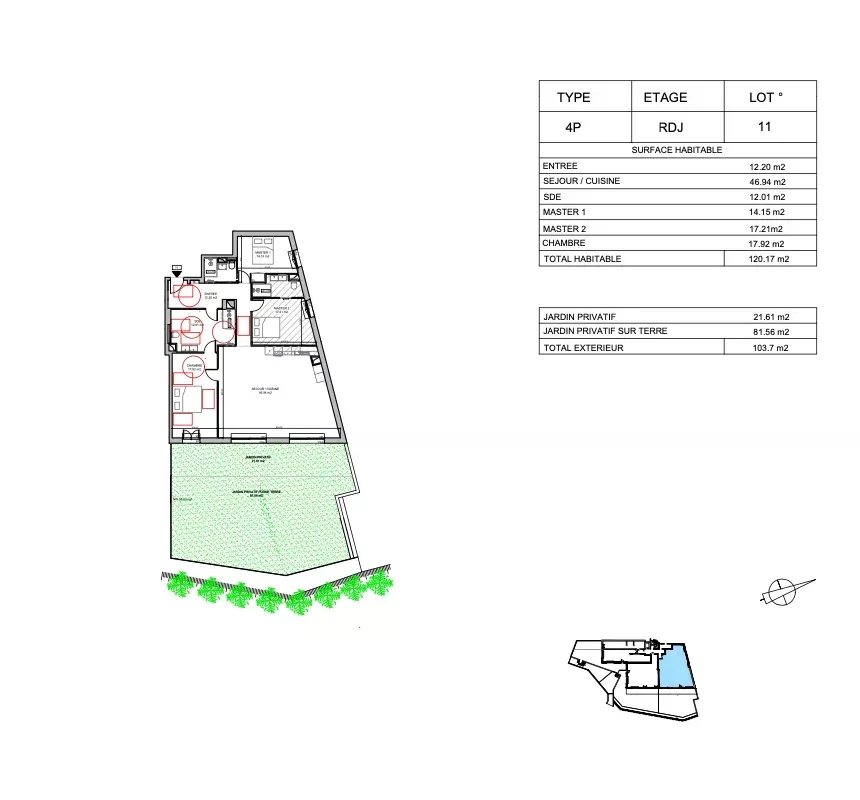 CANNES - Secteur très résidentiel de Cannes, à quelques minutes des plages et de la Croisette, au sein d'une résidence intimiste de 9 lots, nouveau programme pour quelques privilégiés. Les appartements ont été conçus pour votre confort avec dans un écrin de verdure au calme, Les vastes terrasses et les jardins permettent de profiter pleinement du soleil azuréen, tout en étant proche des festivités. Lot N° 11 T4 de 120,17m2 3 chambres, 3 salles de bain, avec jardin 103,70 et 2 parkings Contactez nous pour plus d'informations. Les informations sur les risques auxquels ce bien est exposé sont disponibles sur le site www.georisques.gouv.fr TRACFIN : Conformément à l'Article L561.5 du Code Monétaire et financier, pour l'organisation de toute visite, la présentation d'une pièce d'identité vous sera demandée.