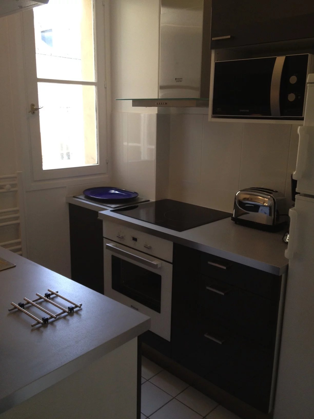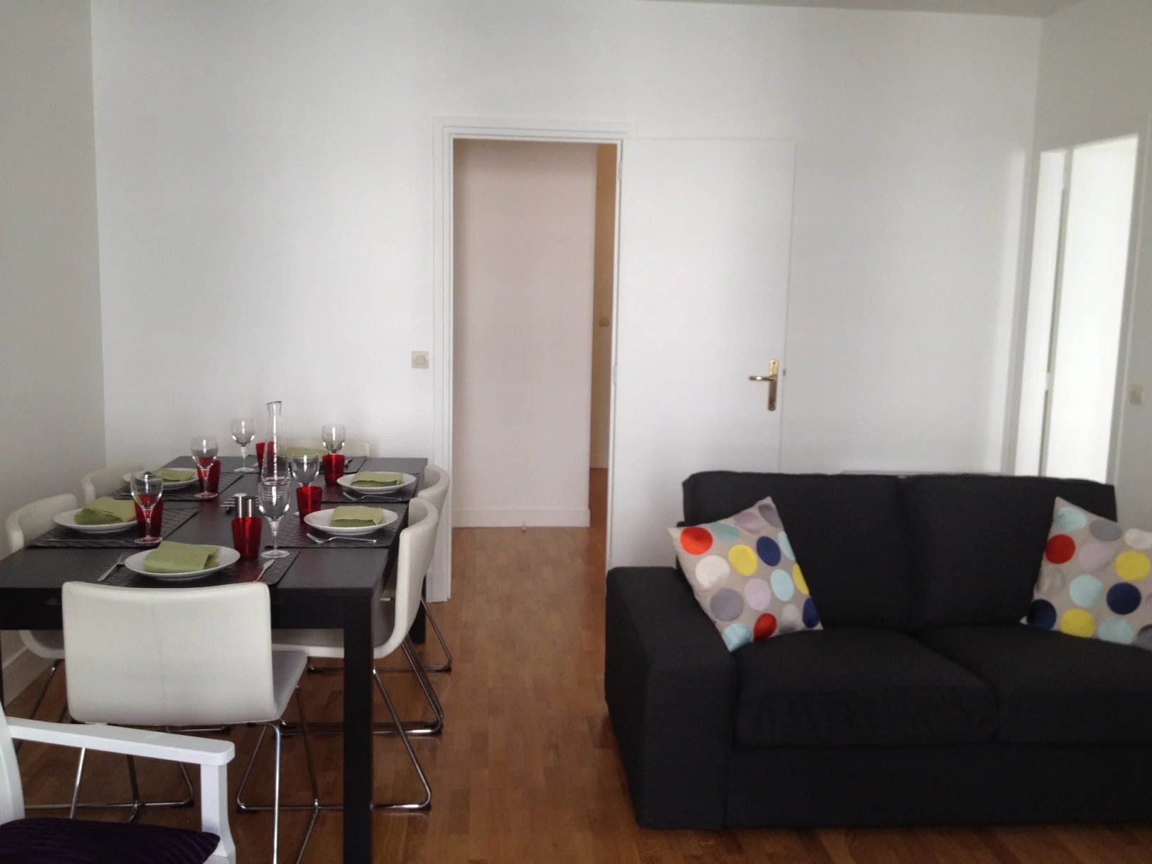 14ème limite 6ème : MEUBLE - EDGAR QUINET -Au 4ème étage avec ascenseur d'une bonne résidence, beau 3 pièces très clair meublé. Entrée, séjour, 2 belles chambres avec placards, cuisine entièrement aménagée et équipée, 1 salle de bains avec lave-linge (sèche-linge) 1 WC séparé, Gardienne.Quartier très vivant - tout commerce à proximité