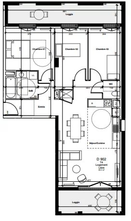 Cet appartement est situé proche des quais et a deux pas du centre ville historique de Bordeaux. Cet appartement se compose : - d'une entrée de 6,8m2, - d'un grand espace de vie séjour/cuisine de plus de 35m2, - de 3 chambres, - d'une salle de bains, - et de 2 loggias - une donnant sur le séjour et l'autre sur les 3 chambres. Cet appartement est vendu avec 2 places de parking. Pour plus d'information, merci de nous contacter directement.