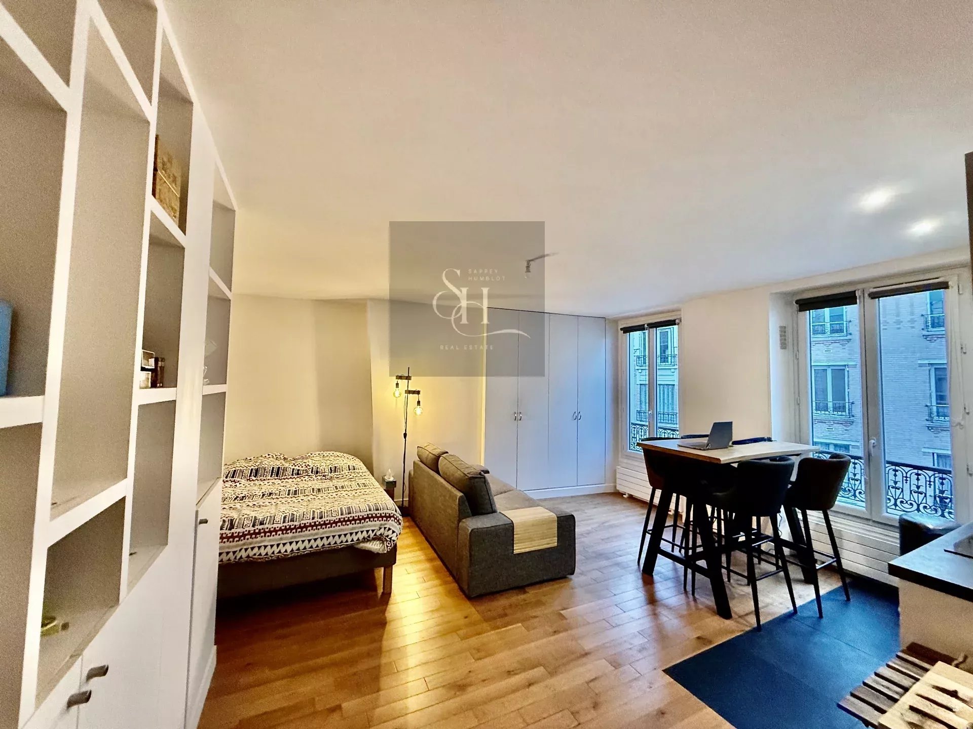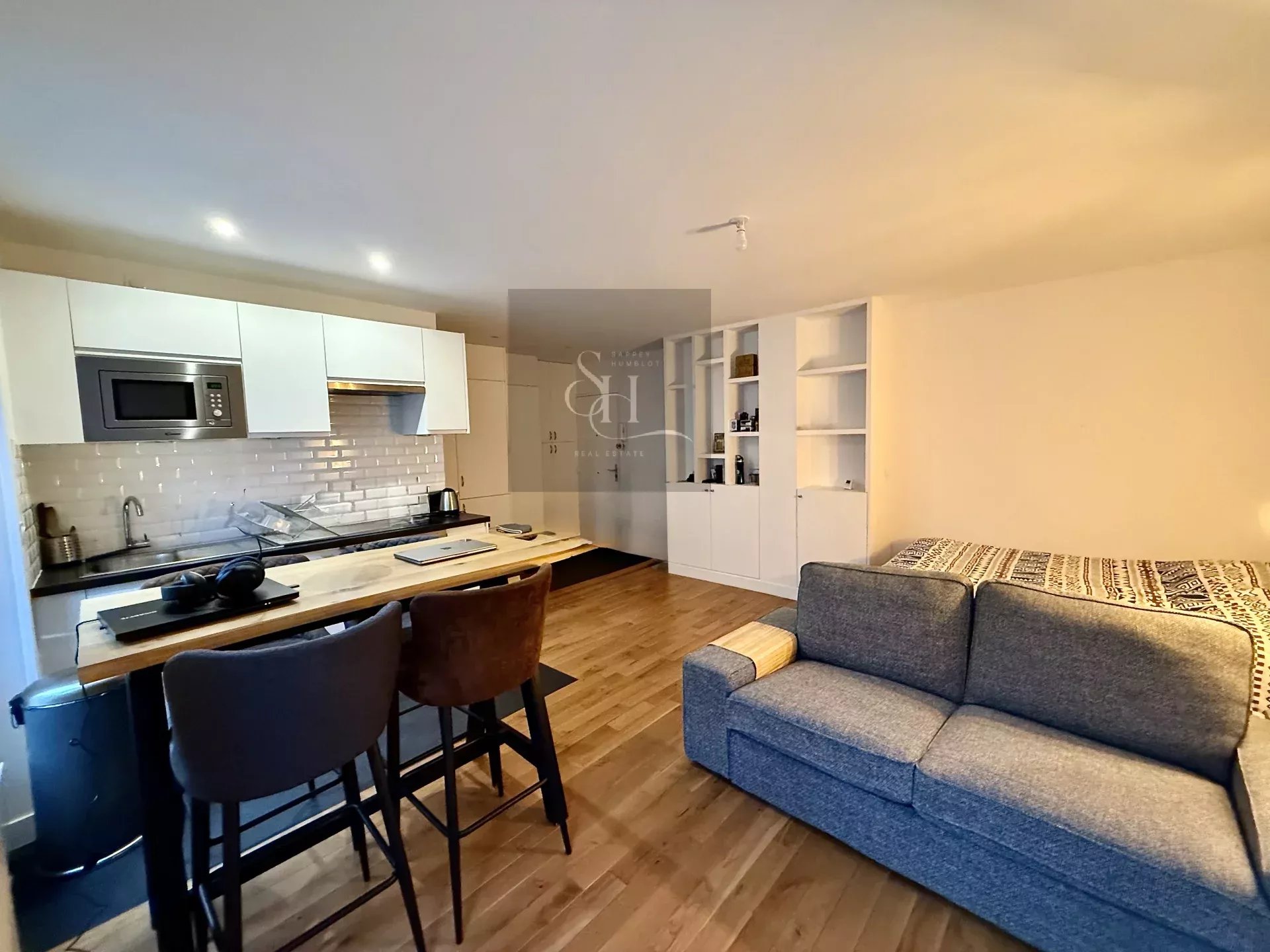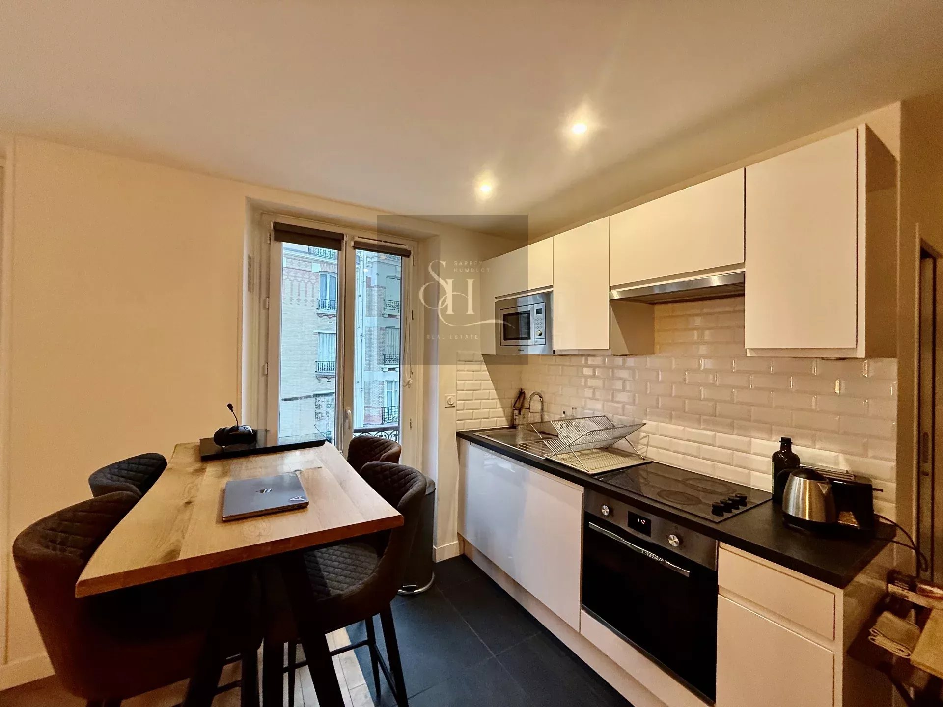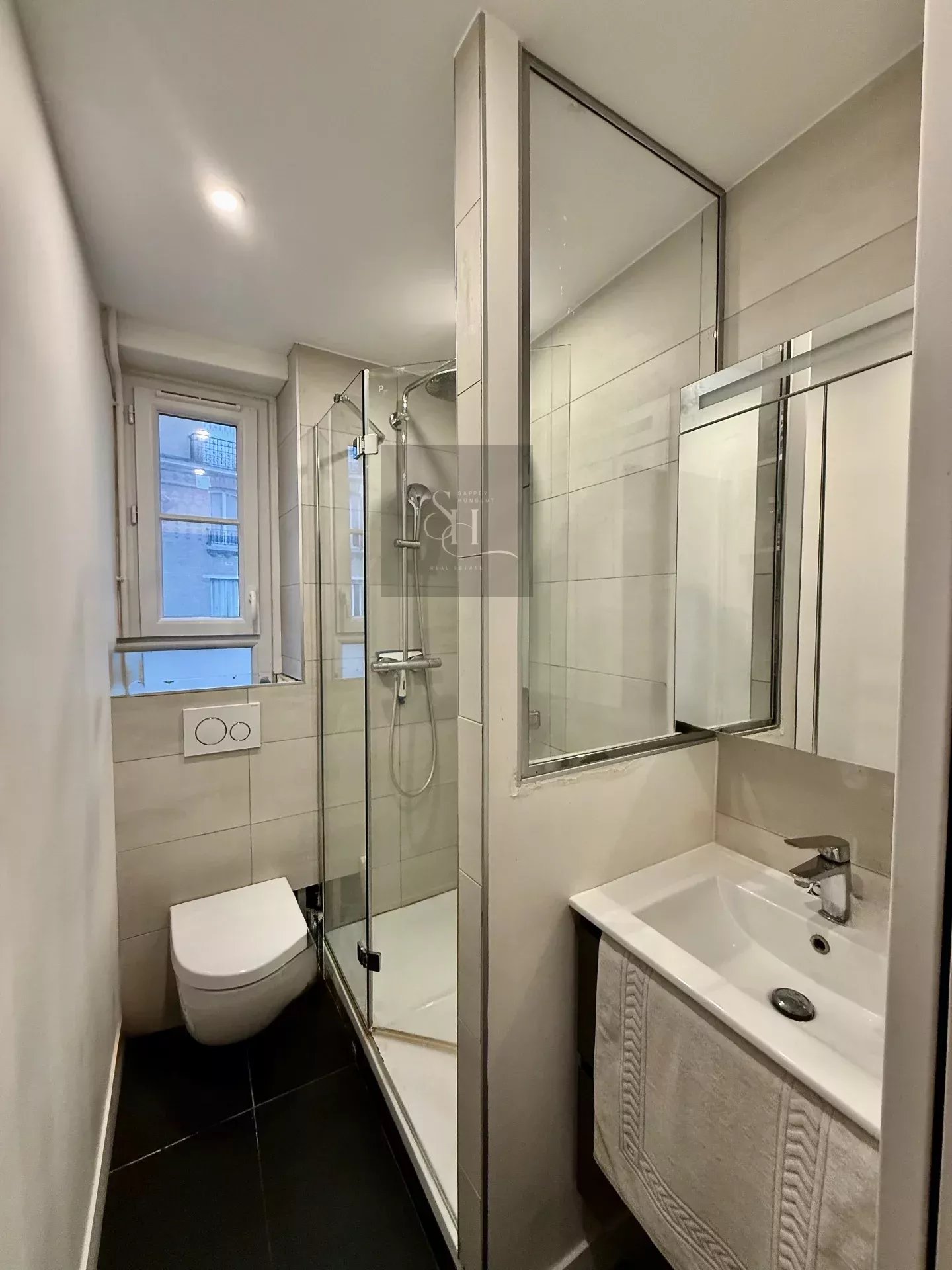 Agréable studio de 30 m2, refait à neuf, situé au 3ème étage sans ascenseur au sein d'une copropriété sécurisée. Il comprend une belle pièce à vivre avec sa cuisine aménagée et équipée (four, plaques de cuisson, four micro ondes, lave vaisselle, lave linge, réfrigérateur-congélateur) et sa salle de douche avec toilettes et fenêtre. Bibliothèque intégrée, placards et dressing.