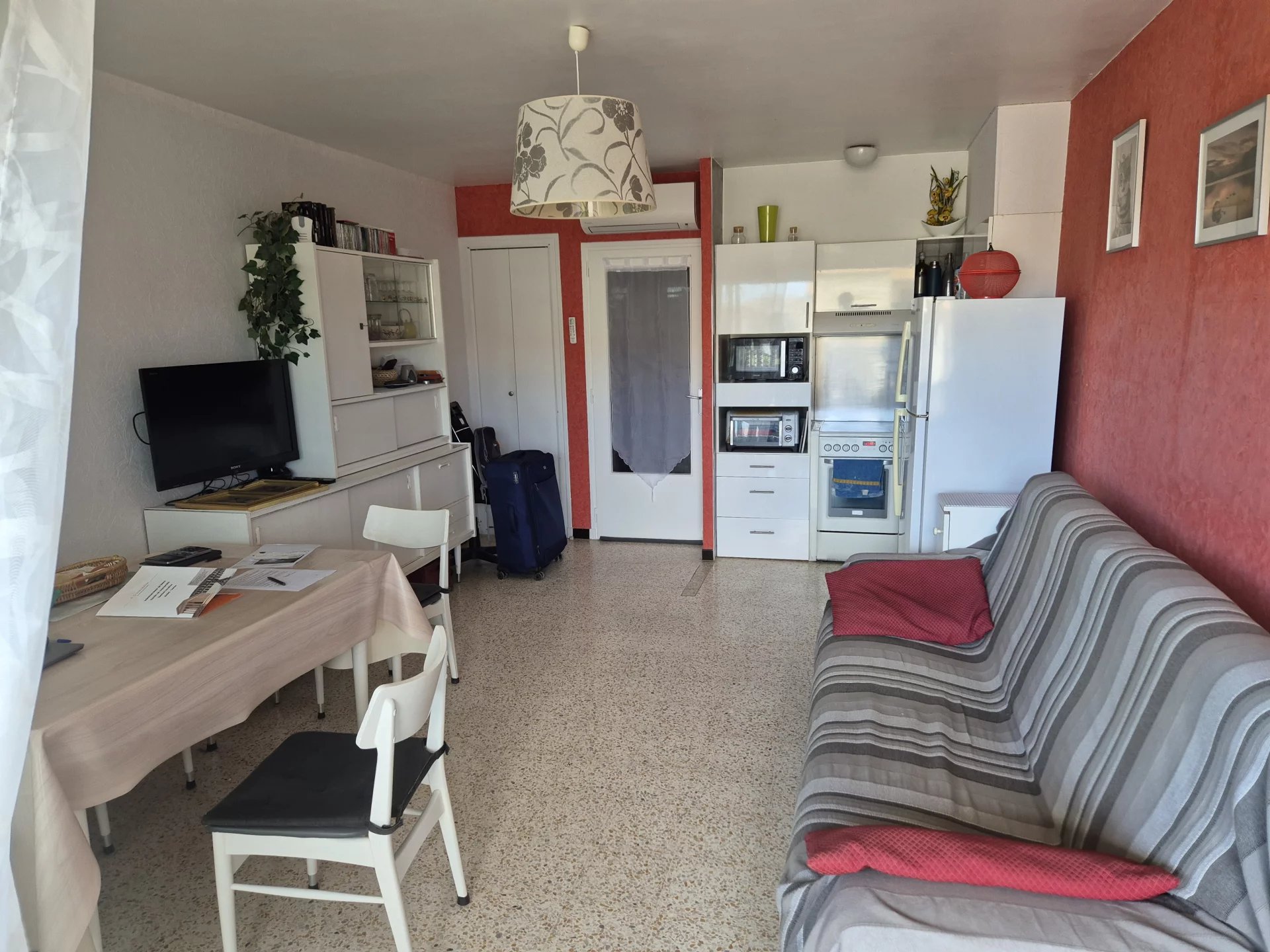 GRAU DU ROI - BOUCANET LOCATION A L ANNEE Dans une petite résidence calme est sécurisée, vous découvrirez au 1er étage sans ascenseur, un appartement meublé en duplex de 40m² loi carrez. Il se compose d'une pièce à vivre avec cuisine ouverte donnant sur une terrasse, salle d'eau et wc indépendant. A l'étage vous disposerez une chambre et une chambre d'appoint sous pente. Vous bénéficiez d'un parking commun à usage privatif. Climatisation dans la pièce à vivre. Proche des commodités, des commerces et de la plage (à 100 mètres). Disponible au 1° mai.
