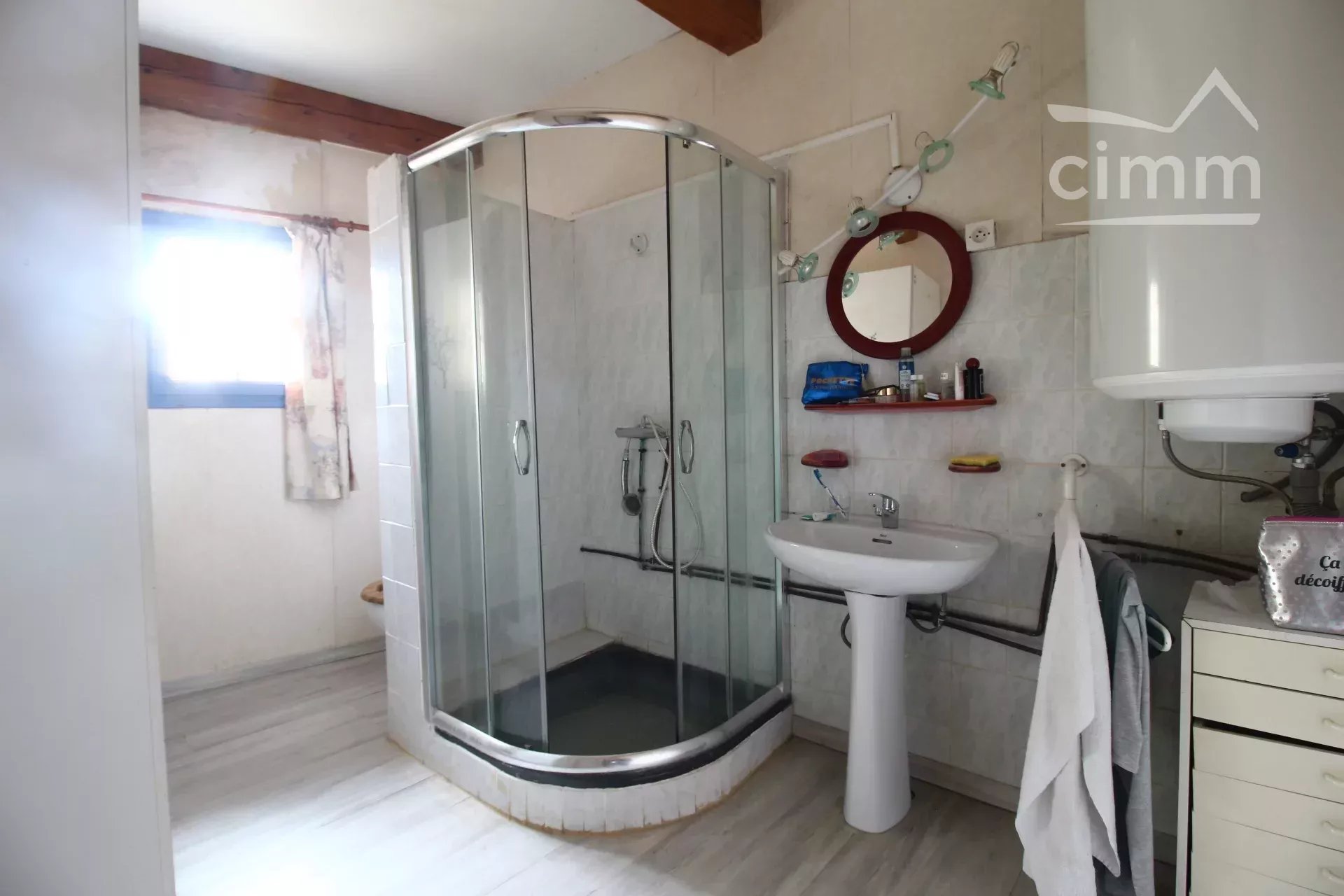 Elle se compose d'une grande pièce à vivre de 28 m², avec cuisine équipée semi ouverte, d'une chambre et d'une salle d'eau au rez de chaussée, ainsi que d'une buanderie avec adoucisseur d'eau.