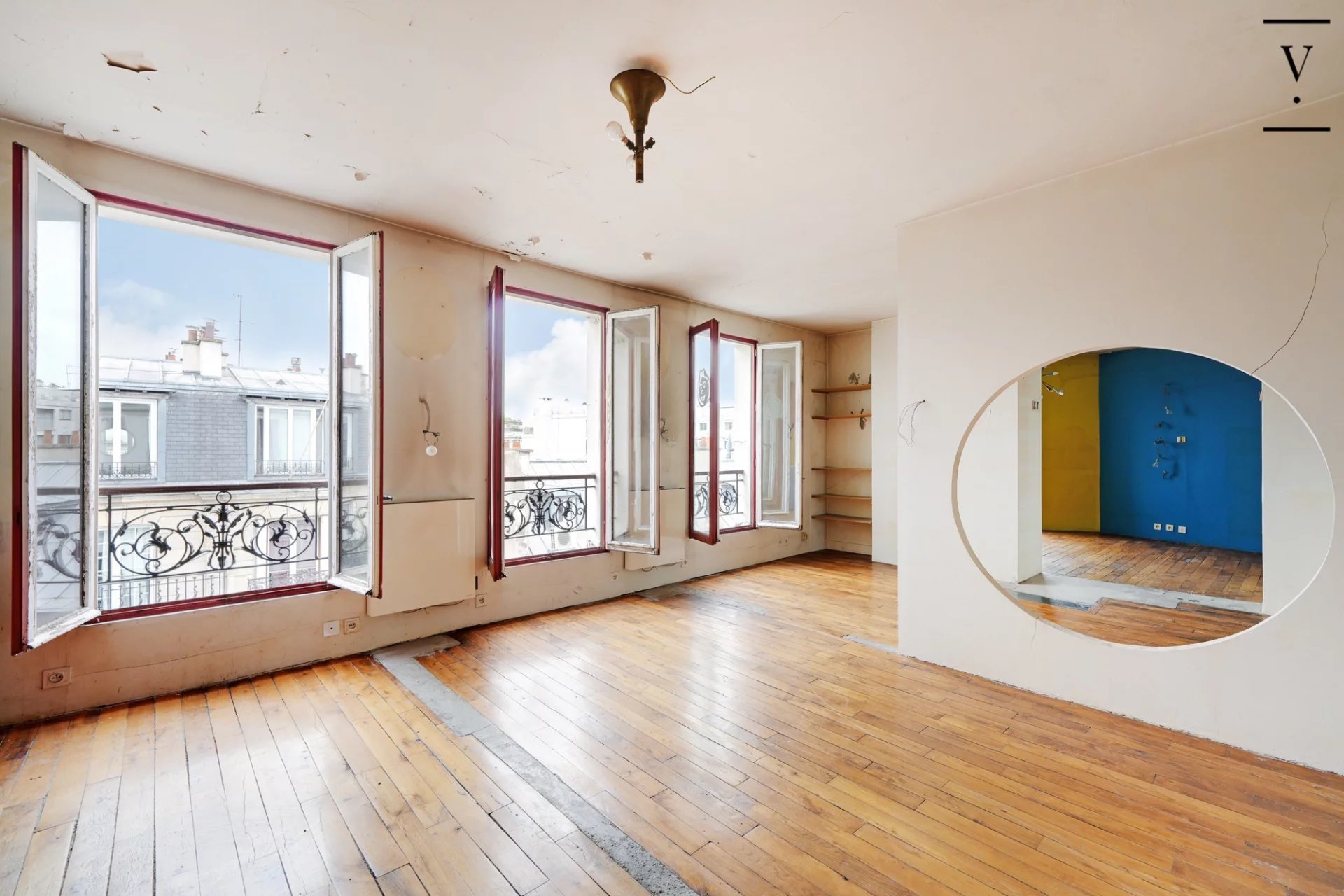 Rare à la vente. Rue de Charonne, au croisement avec la rue Trousseau, dans un quartier vivant et commerçant, Villaret Immobilier vous présente aujourd'hui cet appartement d'angle de caractère nécessitant une rénovation totale de 112,02m2 Loi Carrez et 113,42m2 au sol. Situé au 6ème et dernier étage et bénéficiant d'une triple exposition, cet appartement est disposé aujourd'hui de la manière suivante : entrée, salon, salle à manger avec cuisine ouverte, deux chambres, WC indépendants. Cet appartement est très facilement modulable en 4 chambres avec double réception et cuisine ouverte. Il vous séduira par son potentiel, ses vues dégagées et son ensoleillement. Copropriété en bon état général et isolation de la toiture réalisée en 2022. Deux petites caves au sous-sol complètent ce bien.