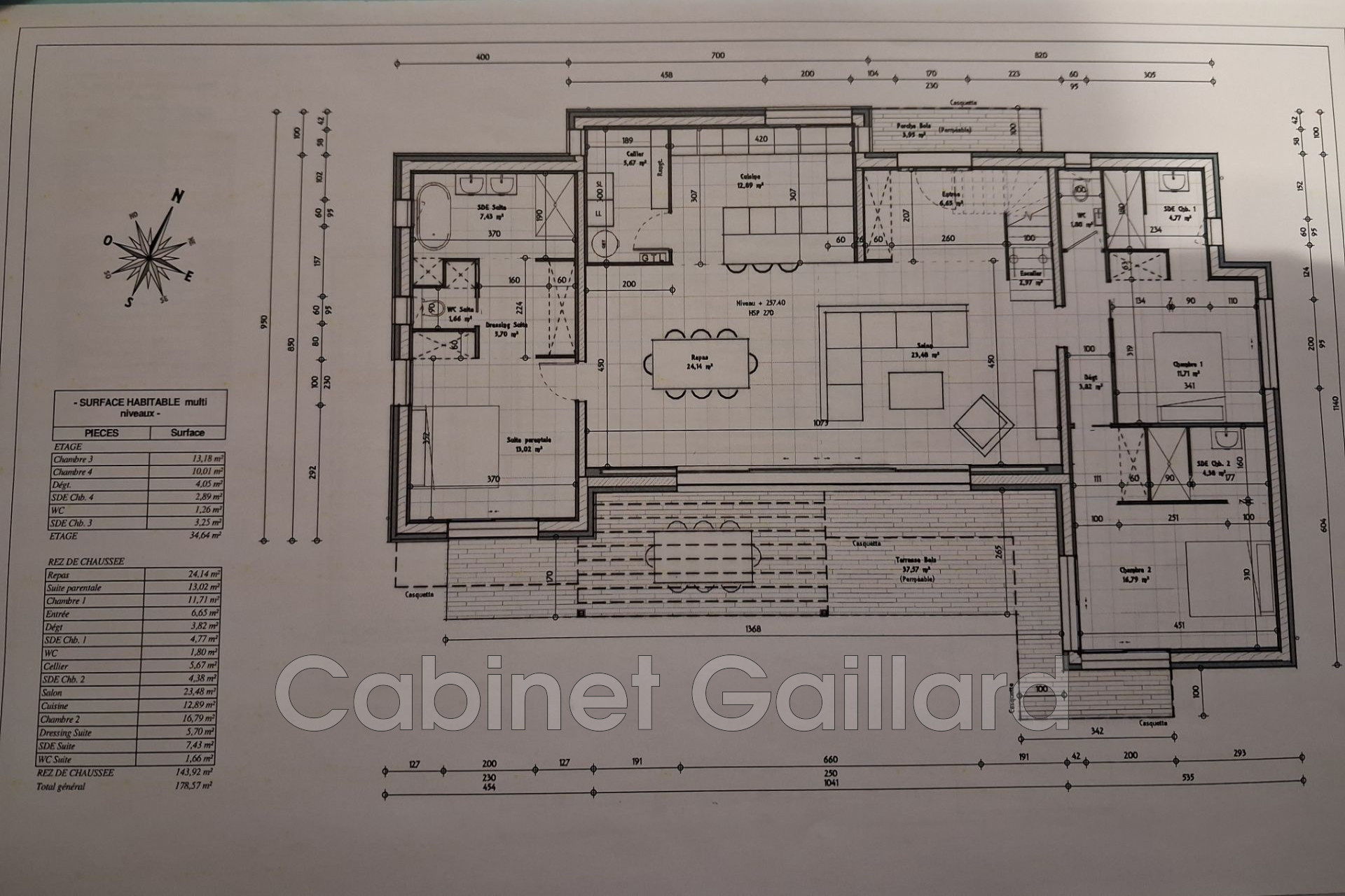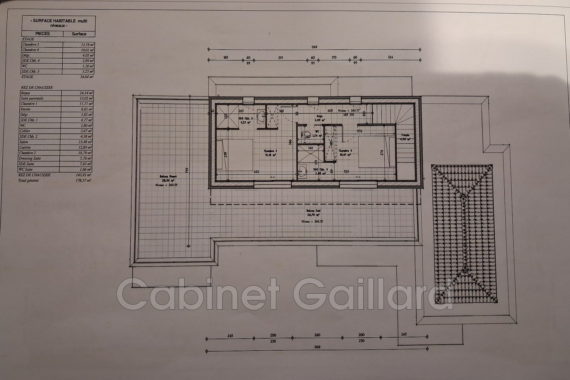 178.57 m² comprenant un salon avec coin repas d'une surface de 48 m2 env. 5 chambres dont une suite parentale. piscine.