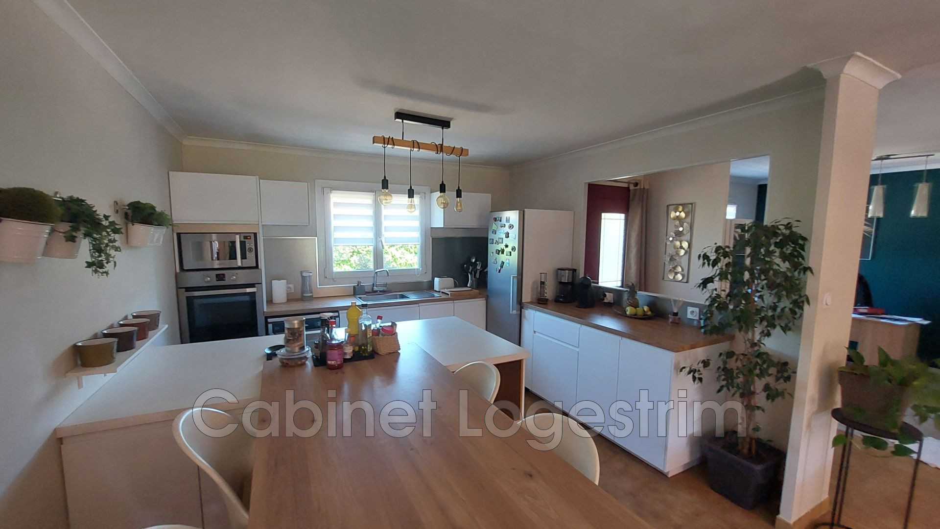 À louer sur la commune de Garons, dans un quartier très calme, une coquette villa meublée de 115 m² habitables comprenant en rez-de-chaussée, une entrée, séjour avec cuisine ouverte de 42 m² climatisé et avec poêle à bois, un espace bureau, 2 chambres, une salle d'eau. A l'étage, 2 chambres climatisées et salle d'eau.