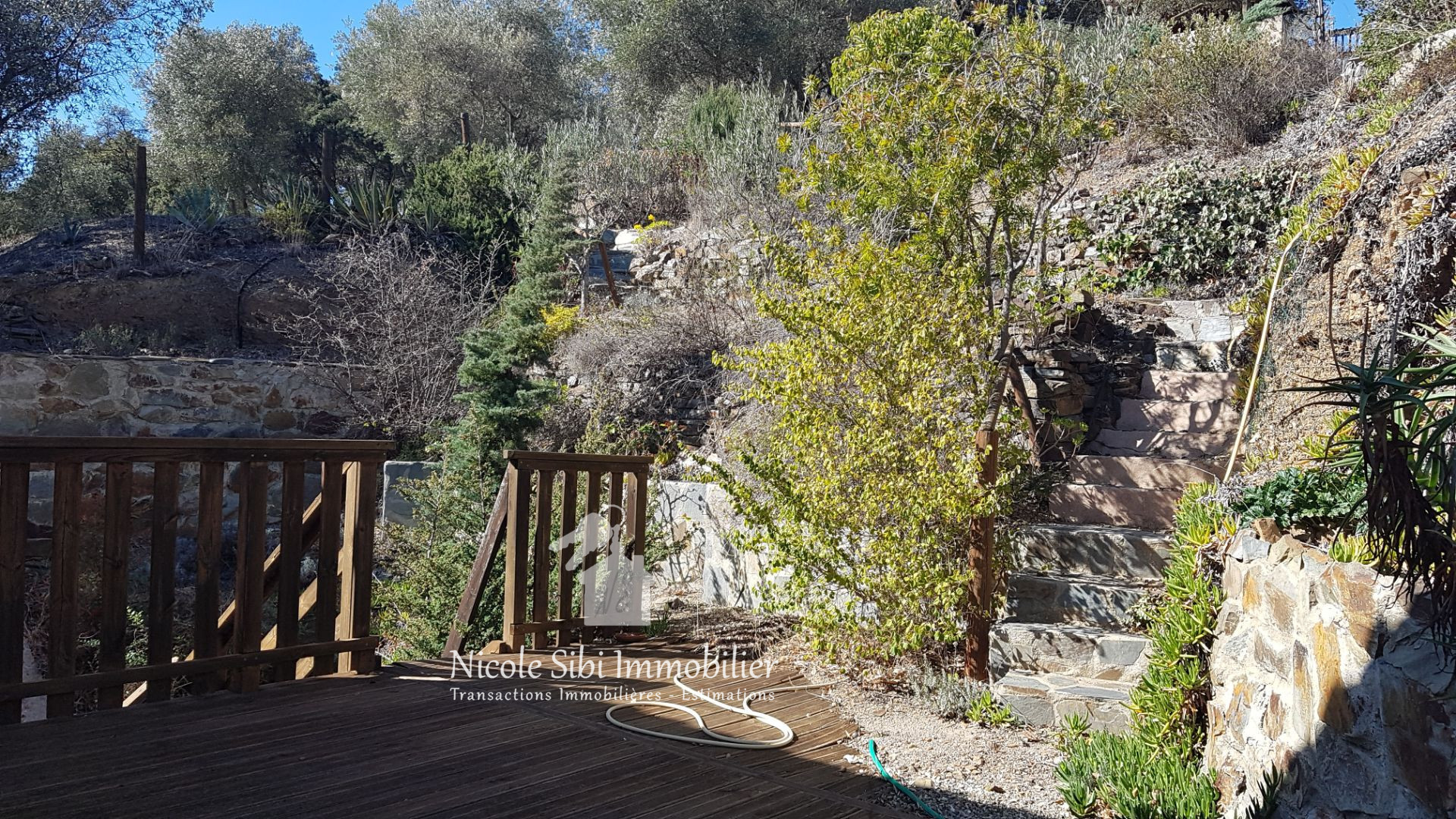 Extérieur : jardin en terrasses, calme et nature préservée.