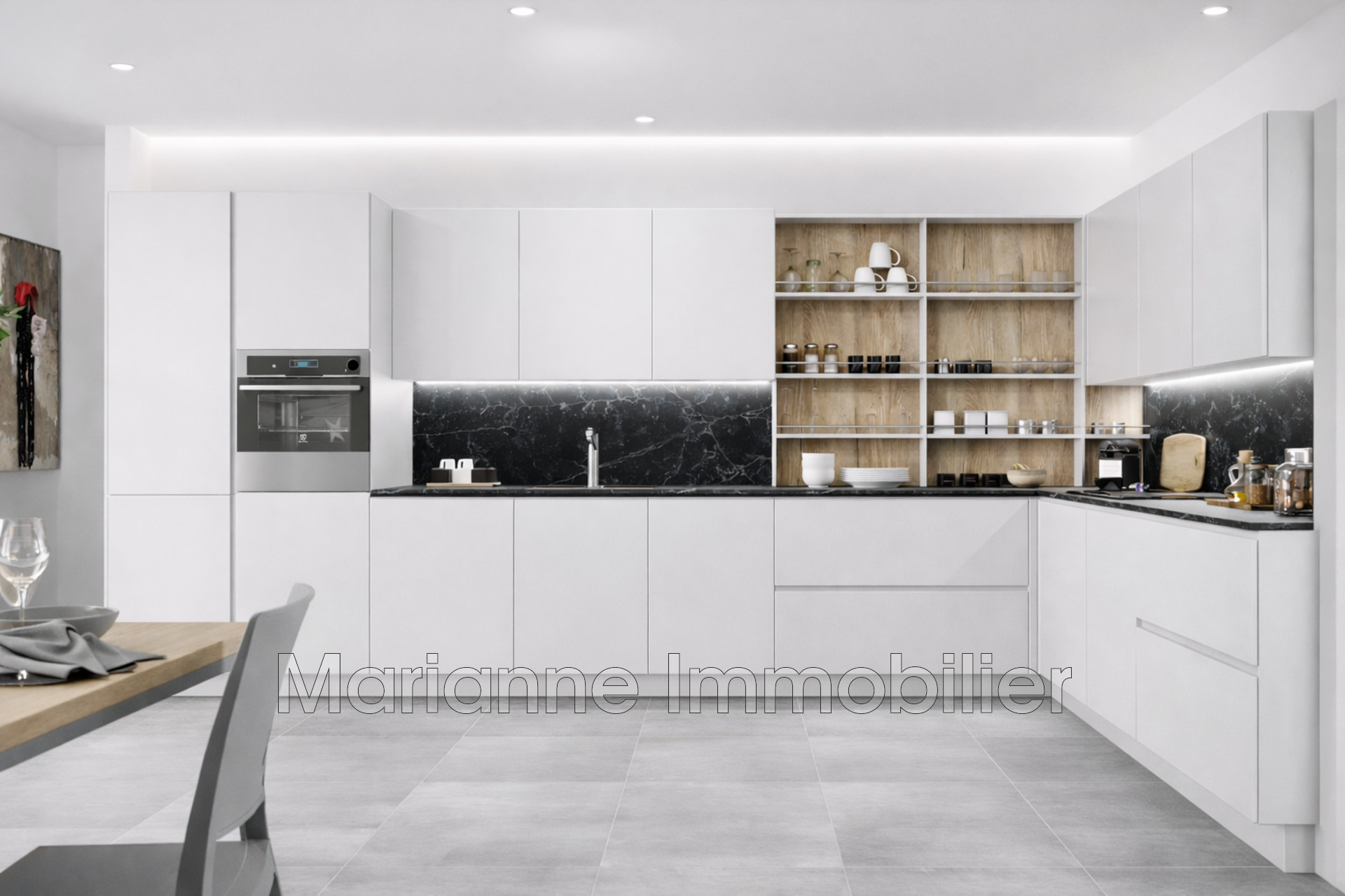 Séjour / cuisine de 26,28 m², sublimé par de larges ouvertures donnant directement sur une terrasse de 38,7 m². La pièce de vie bénéficie de deux accès extérieurs ? une baie vitrée coulissante et une porte-fenêtre ? offrant une continuité naturelle entre intérieur et extérieur ainsi qu'une luminosité remarquable tout au long de la journée.