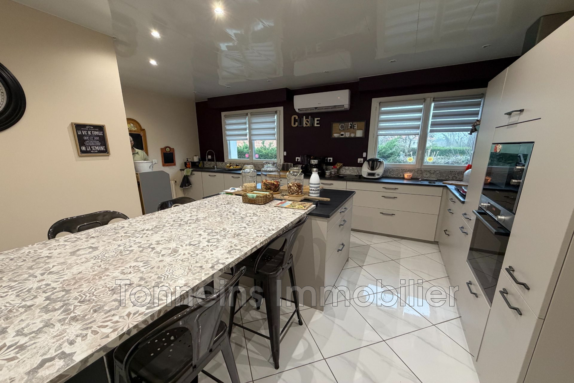 Dès l'entrée, vous découvrirez un espace de vie de 45 m², lumineux, climatisé et doté d'un insert bois, ouvert sur une cuisine entièrement équipée de 20 m² avec cellier attenant.
