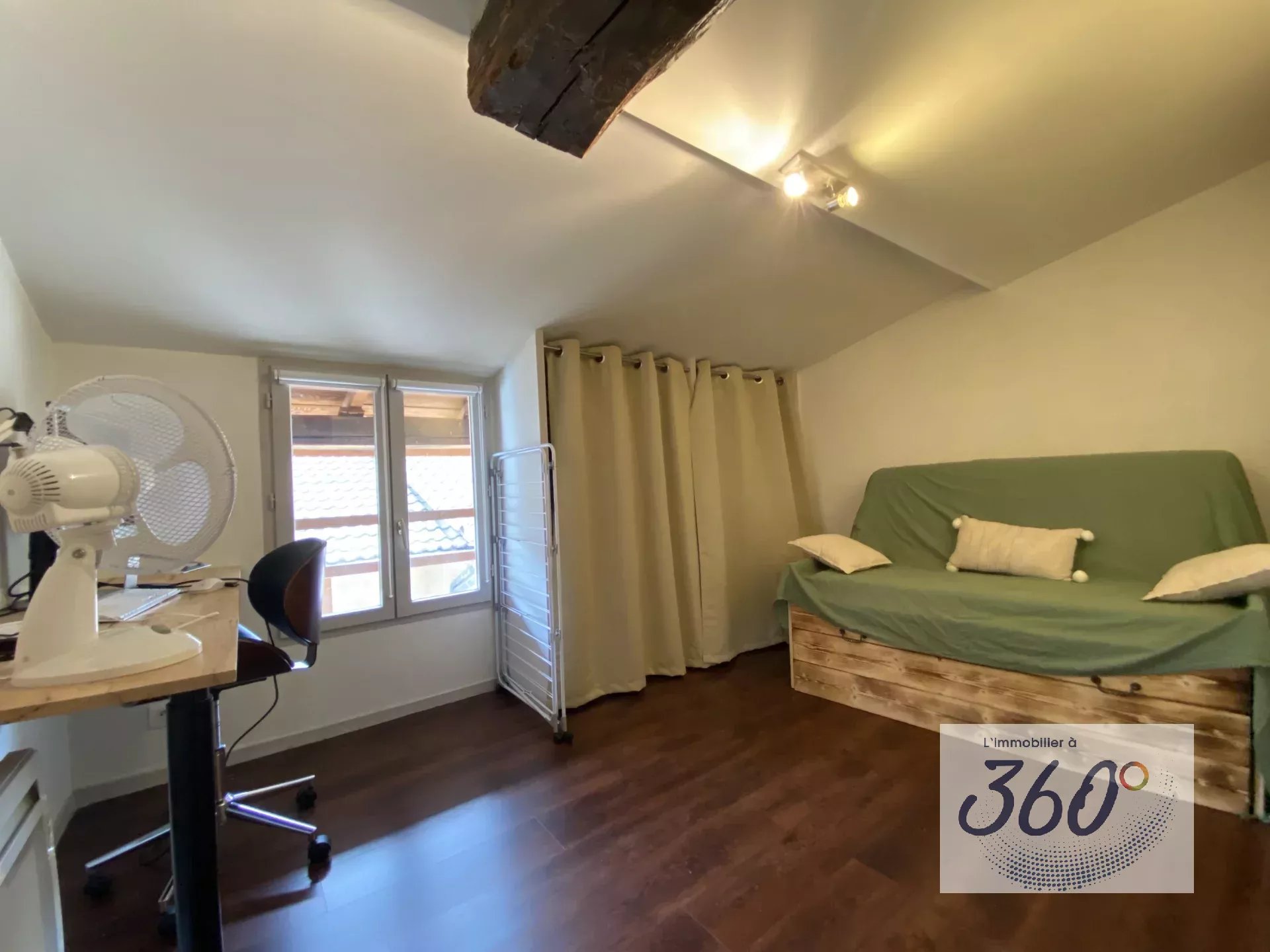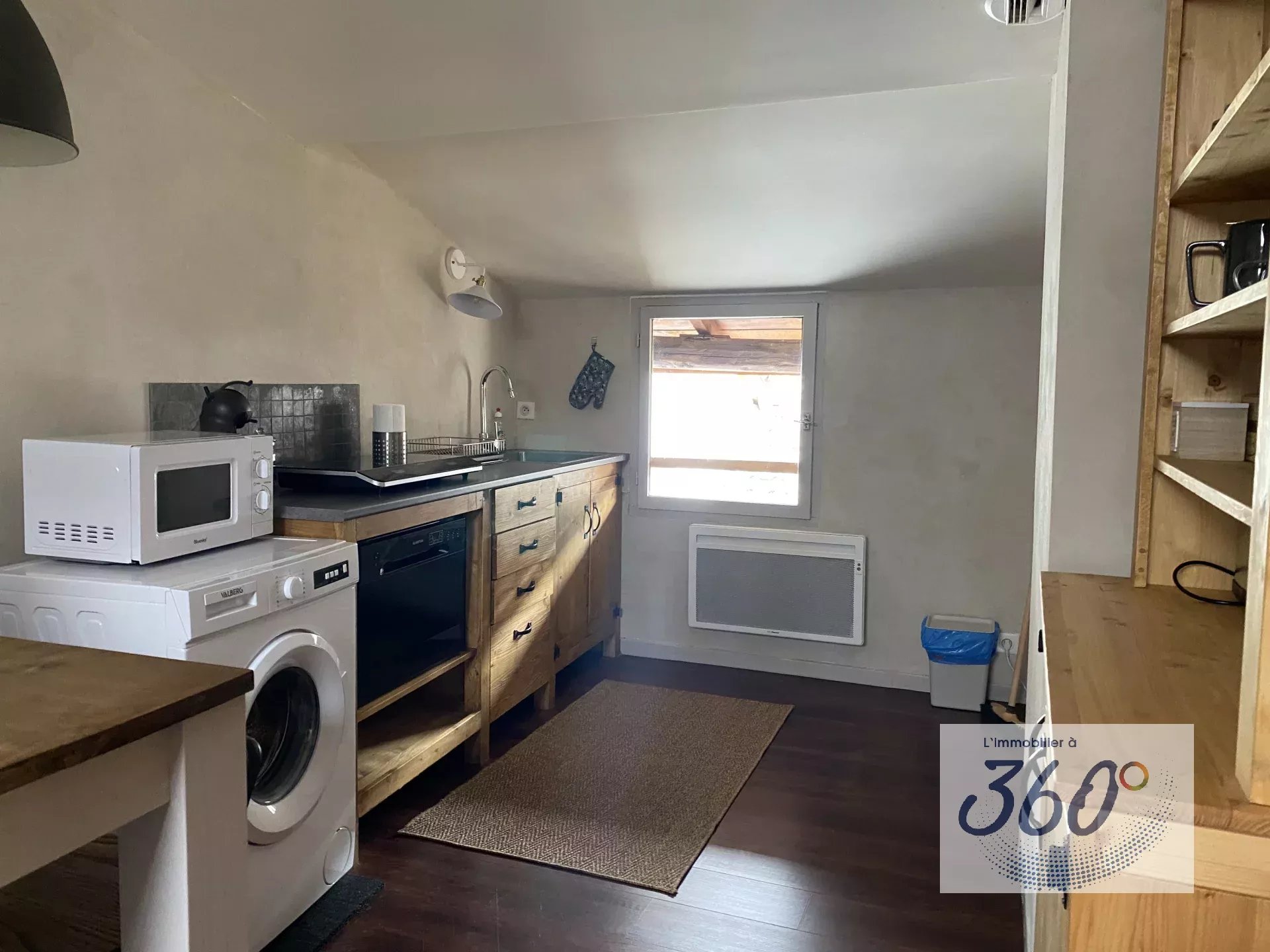 Il se compose d'une agréable pièce de vie avec cuisine ouverte, aménagée et entièrement équipée, de deux chambres meublées avec soin, dont l'une dispose d'un bureau et d'un lit escamotable, d'une salle d'eau avec douche et d'un WC séparé. Une cave non fermée complète ce bien.