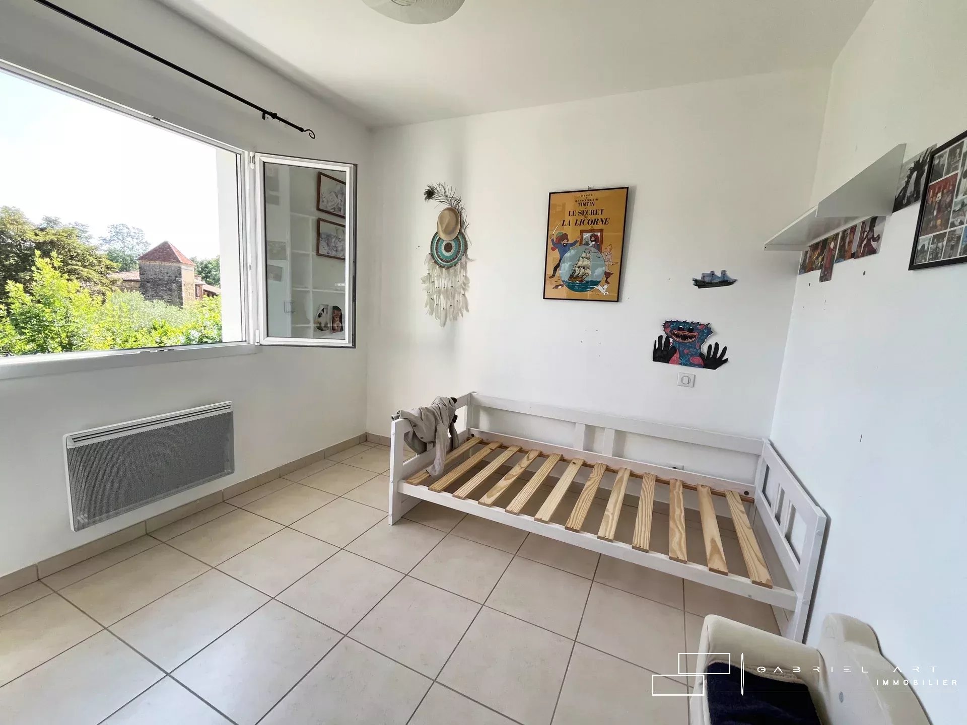Avec ses quatre chambres spacieuses, cette maison est idéale pour accueillir une grande famille. La suite parentale située au rez-de-chaussée dispose de sa propre salle d’eau, offrant confort et intimité. À l’étage, les autres chambres profitent d’un bel agencement et d’un accès facile à la salle de bain principale.