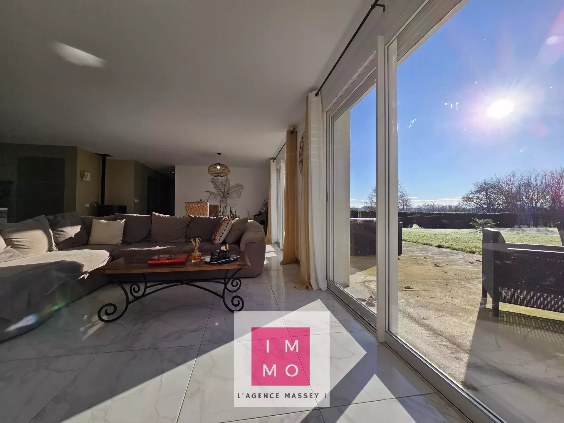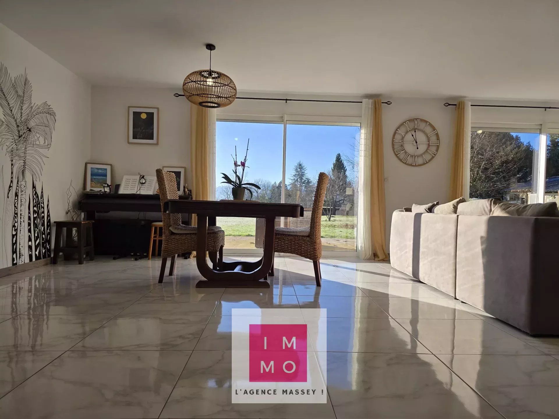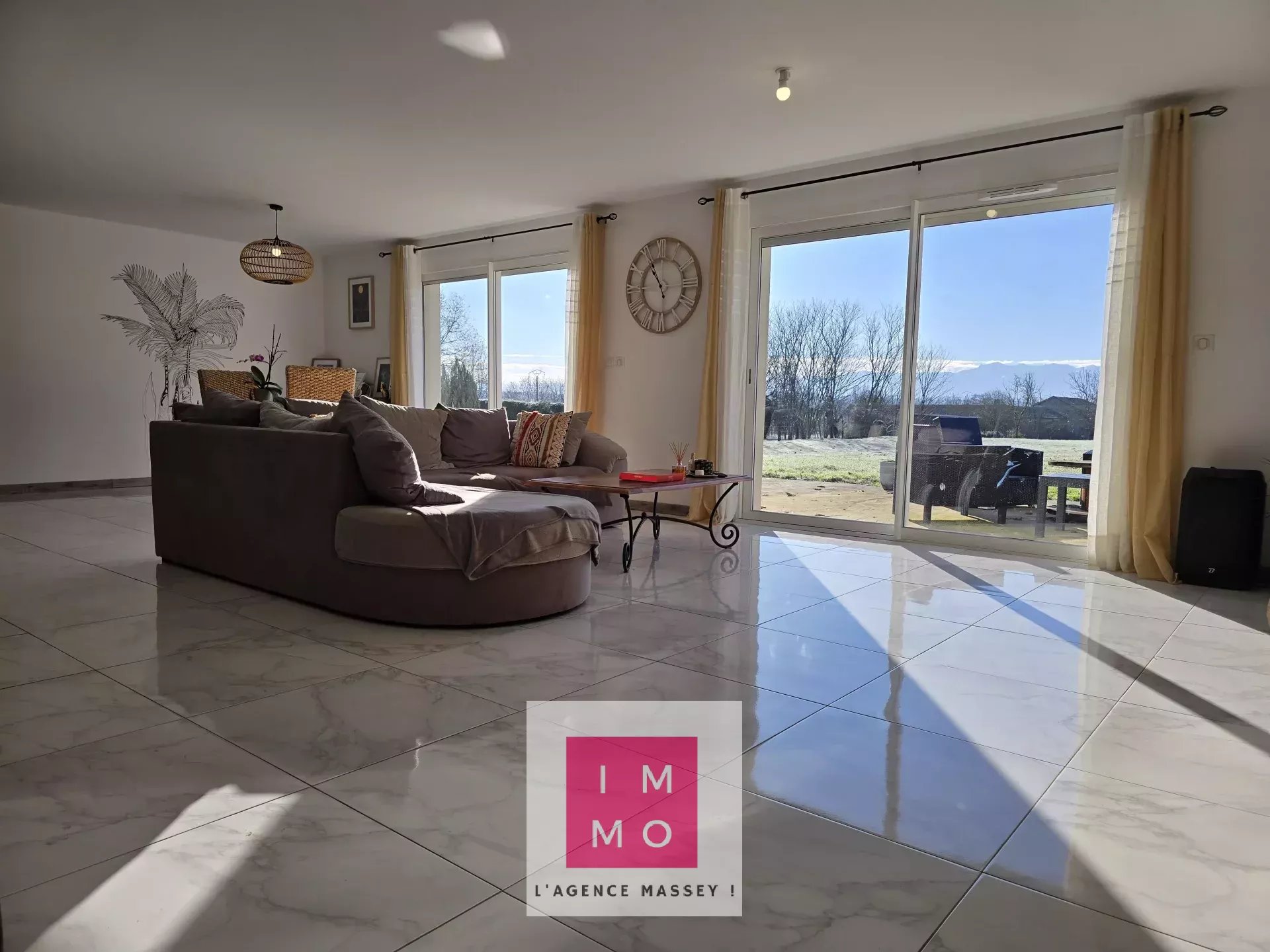 - un grand salon donnant lui aussi sur la terrasse via une grande baie vitrée avec la vue sur le jardin et les Pyrénées.