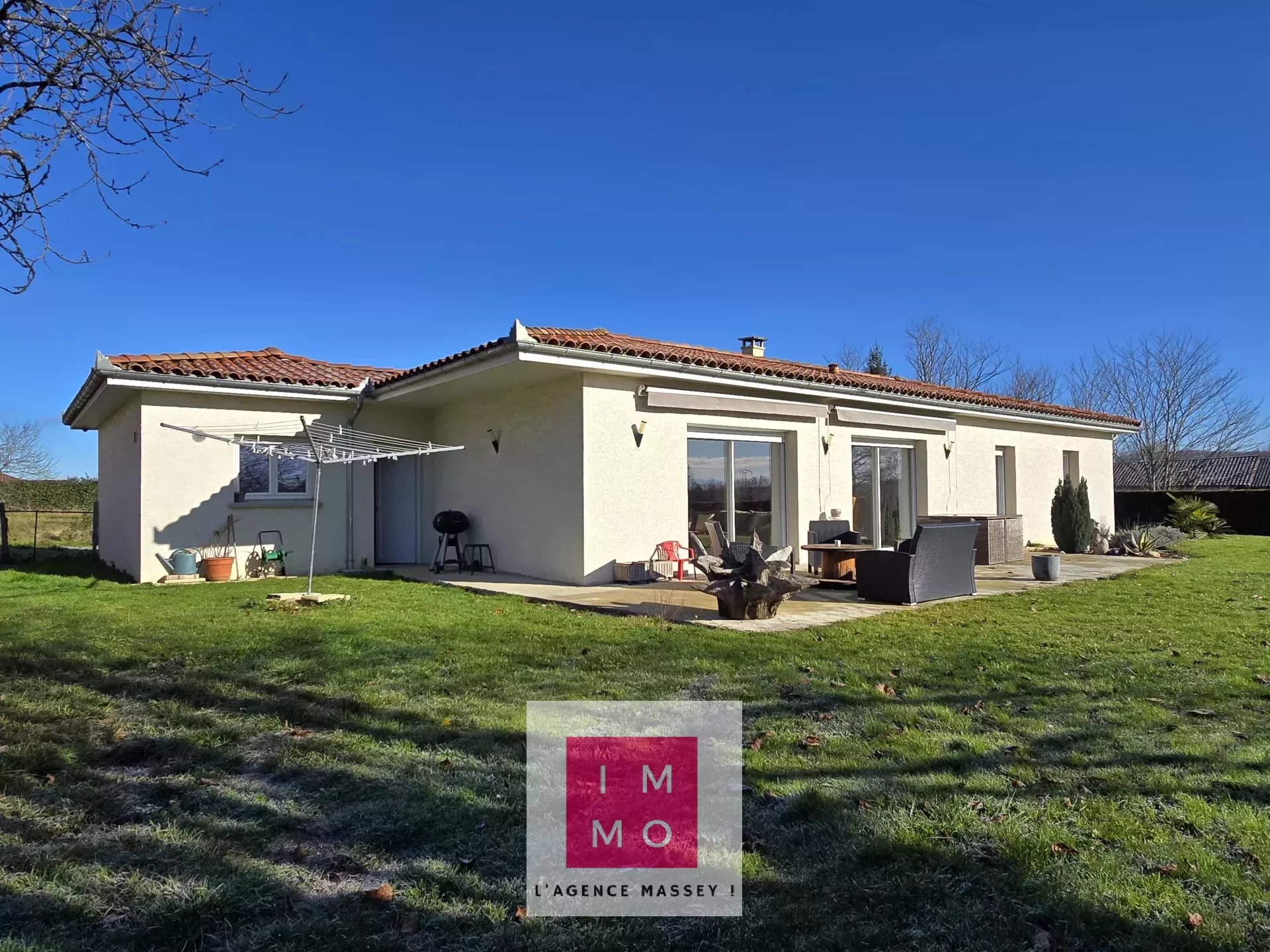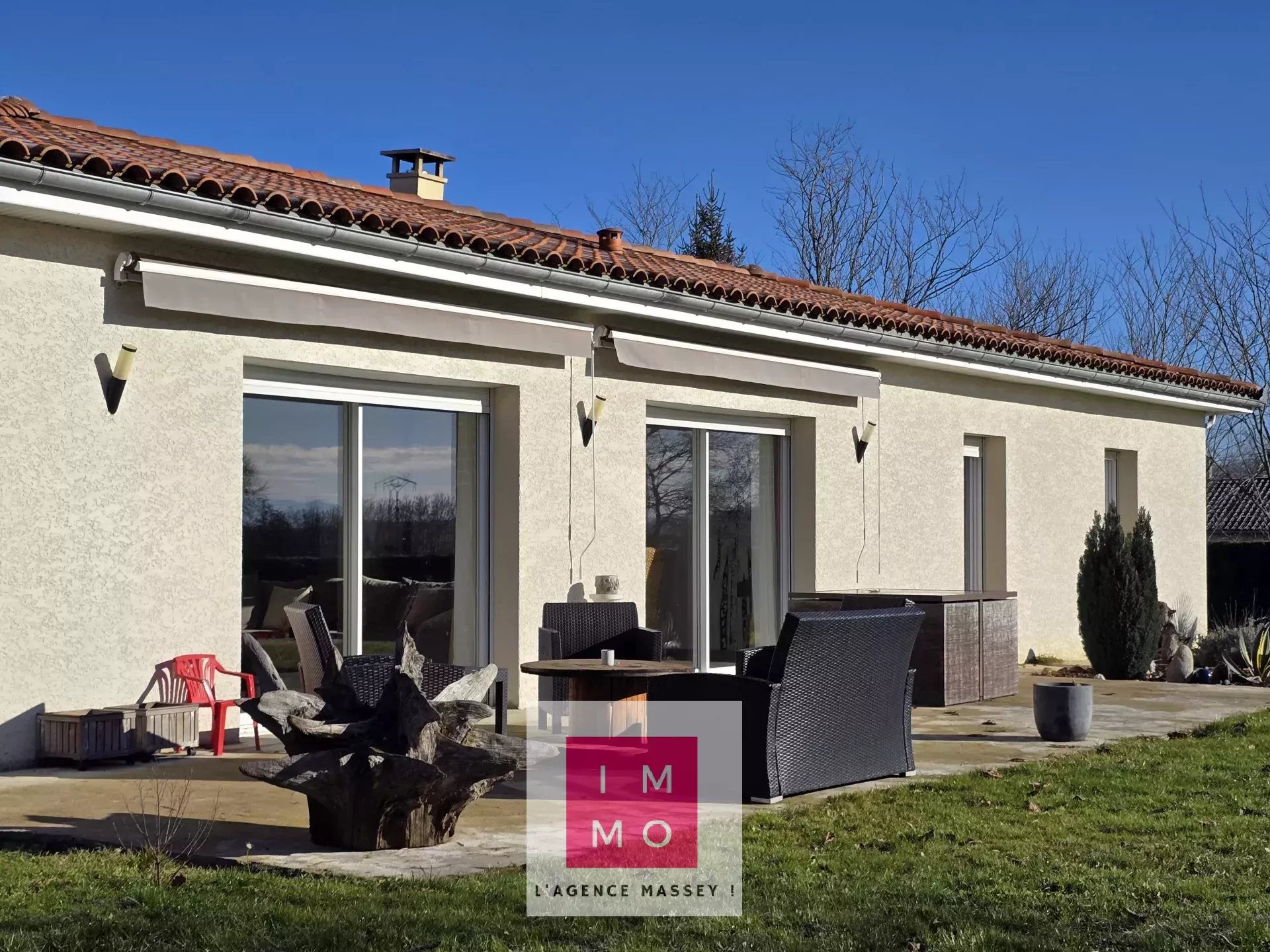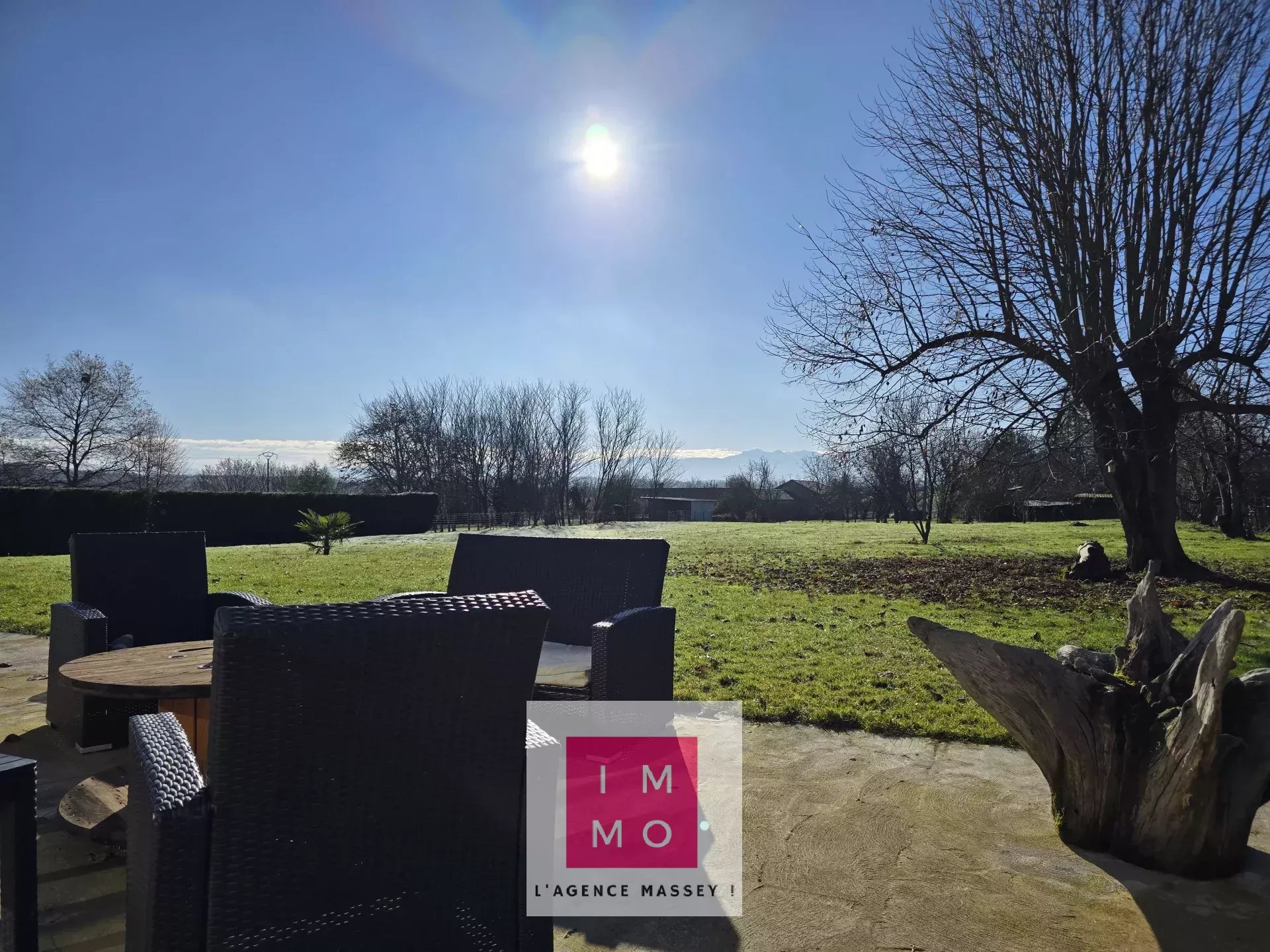 La maison est exposée plein sud. Construction récente. La grande terrasse est un plus pour profiter du joli jardin (arbustes, arbres d’ornements, fruitiers) et de la belle vue sur les Pyrénées.