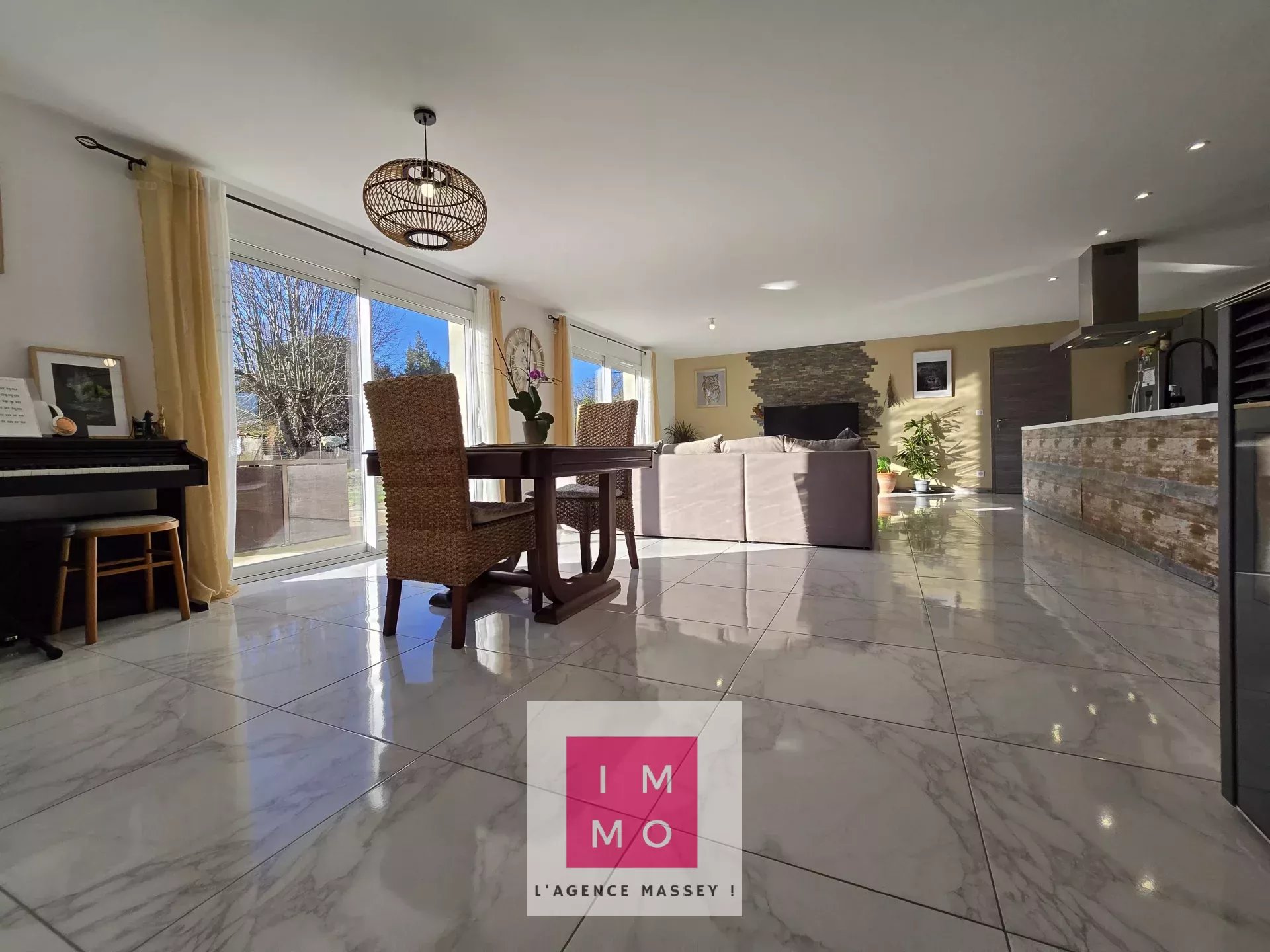 La porte d’entrée s’ouvre sur un superbe espace de jour de plus de 60 m² avec :