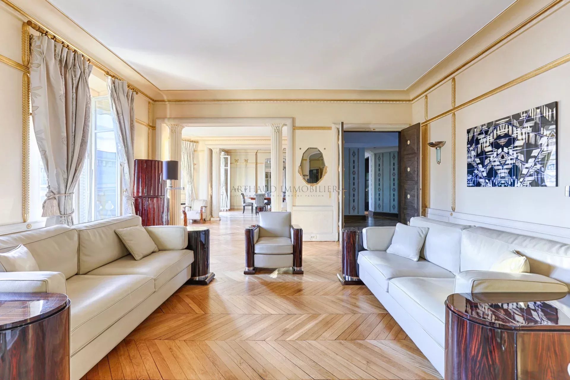 À proximité immédiate du Trocadéro, au cœur de l’un des quartiers les plus prestigieux de l’ouest parisien, cet appartement remarquable incarne avec raffinement l’art de vivre parisien. Situé au cinquième étage avec ascenseur d’un immeuble en pierre de taille, il offre une superficie de 320 m² sublimée par une exposition sud-est assurant une luminosité optimale tout au long de la journée.