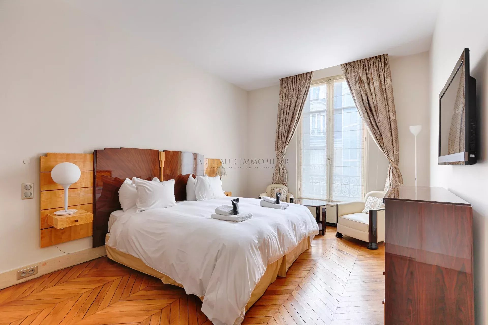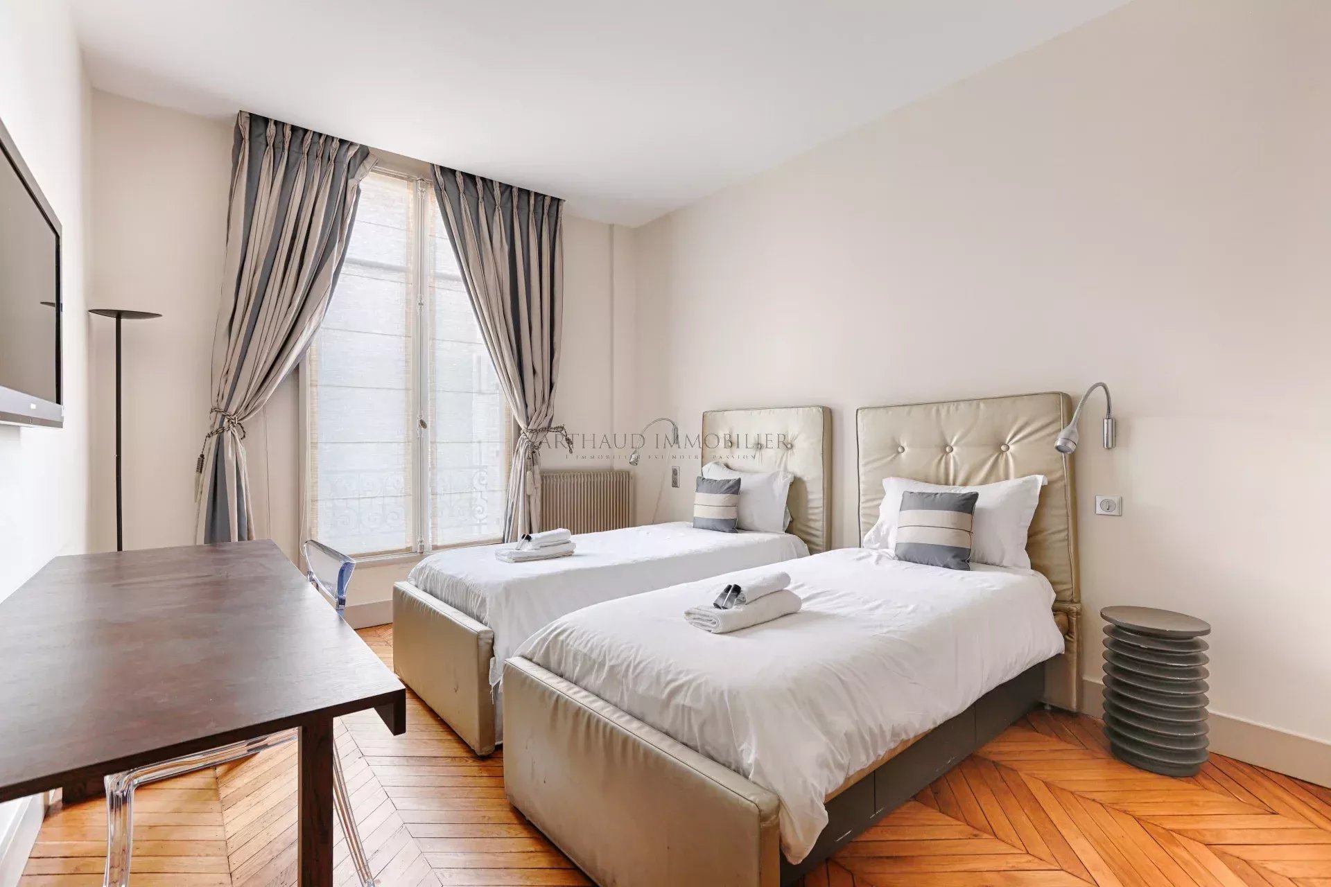 Parquets en point de Hongrie, moulures d’époque, belle hauteur sous plafond et volumes généreux confèrent à l’ensemble une élégance classique, idéale pour une vie familiale distinguée ou un appartement de réception.