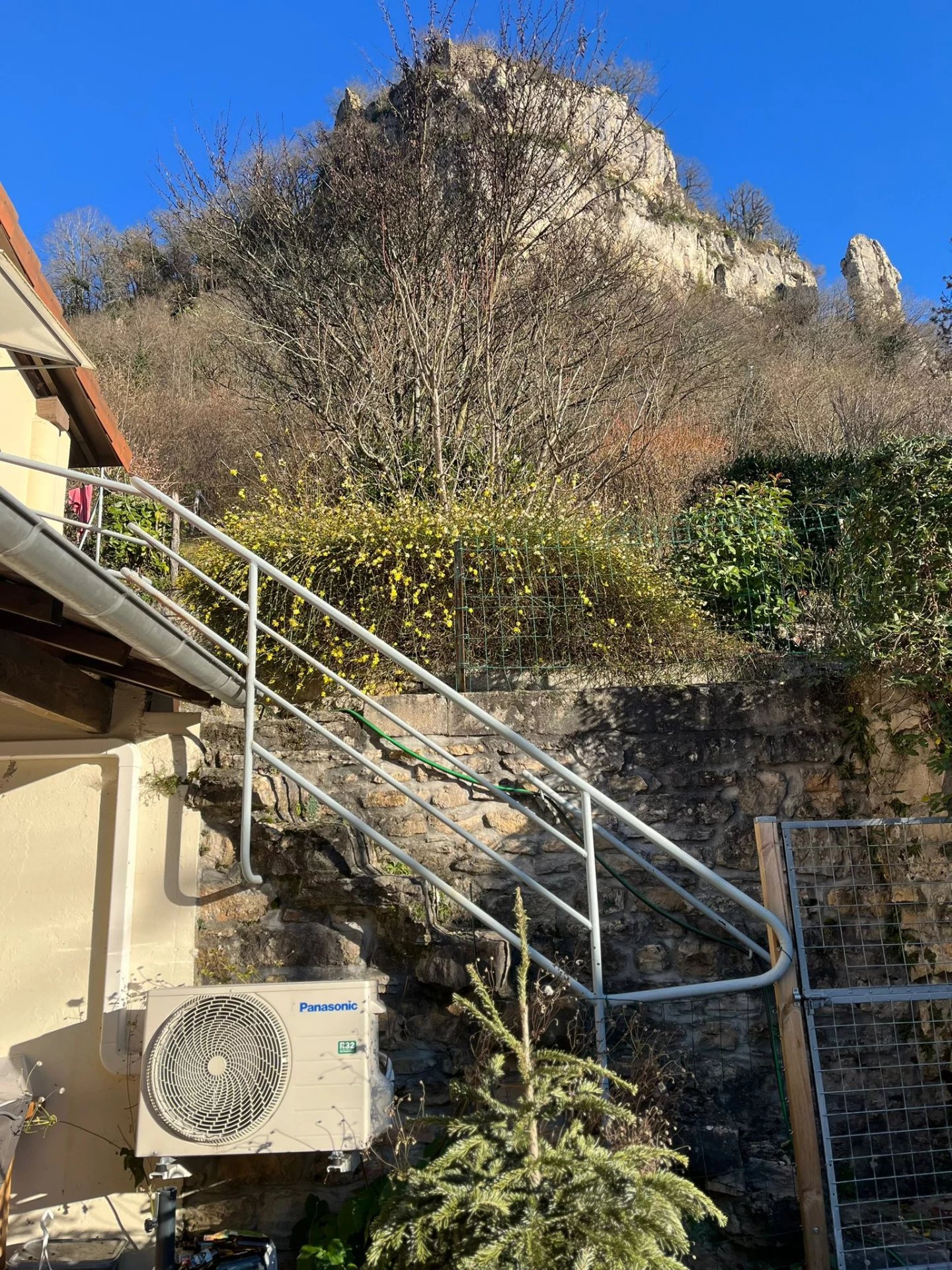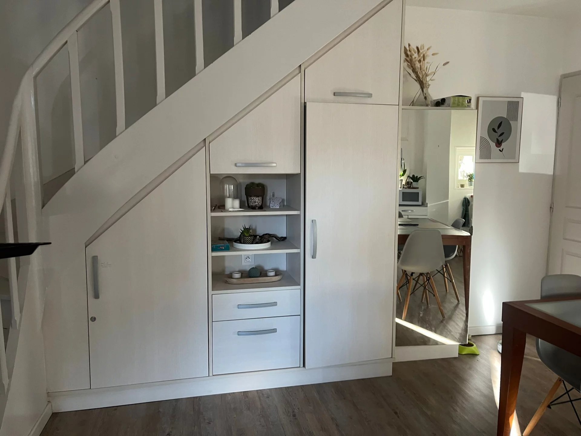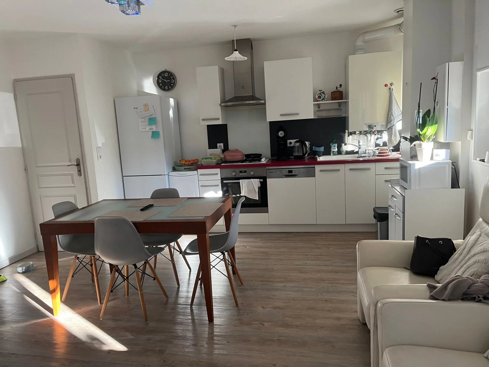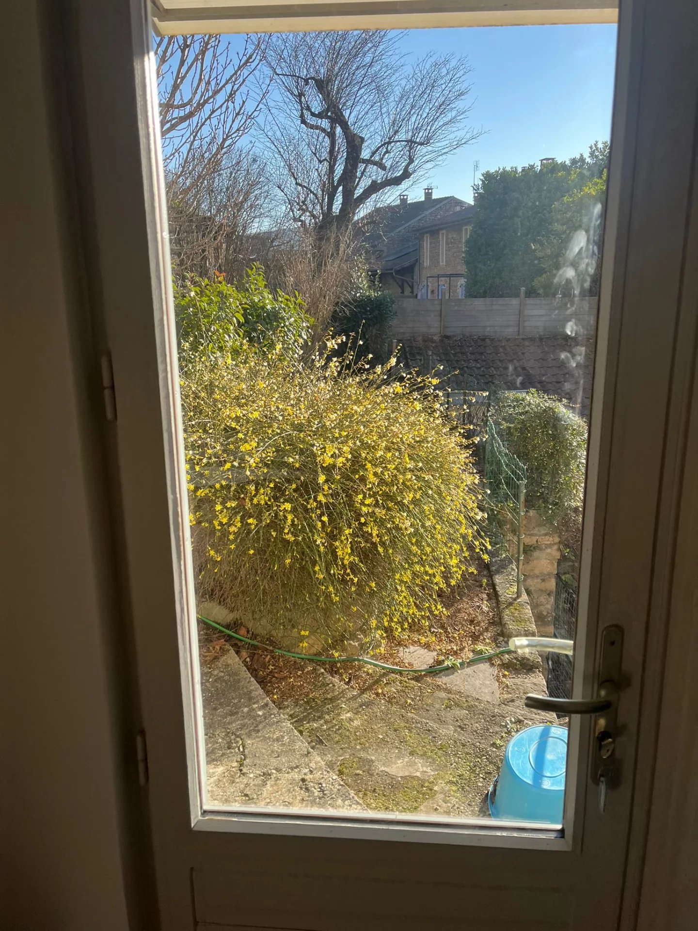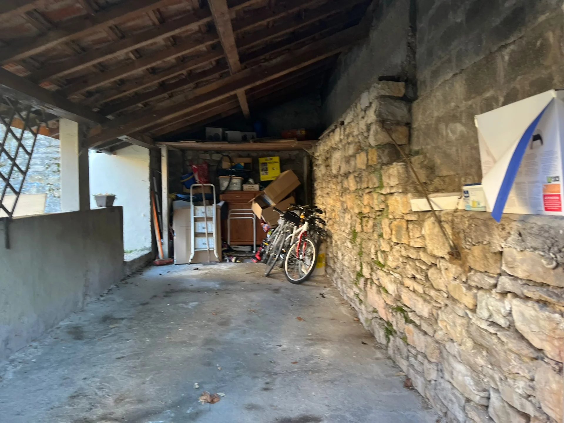 A LOUER, au coeur du village de Saint-Sorlin-en-Bugey: maison de village de 75 m² MEUBLEE, 3 pièces, avec jardin très pentu, composée: au rez-de-chausée: d'une cuisine équipée ouverte sur le séjour de 26 m², 1 WC. au 1er étage: 1 dégagement de 7 m², 2 chambres dont une de 25 m², 1 WC, 1 salle d'eau. 1 garage. 1 cour dans laquelle il y a possibilité de stationner 1 véhicule. 1 terrasse couverte, 1 abri de jardin. Chauffage individuel au gaz. Climatisation réversible dans le séjour. Libre au 16 février 2026.