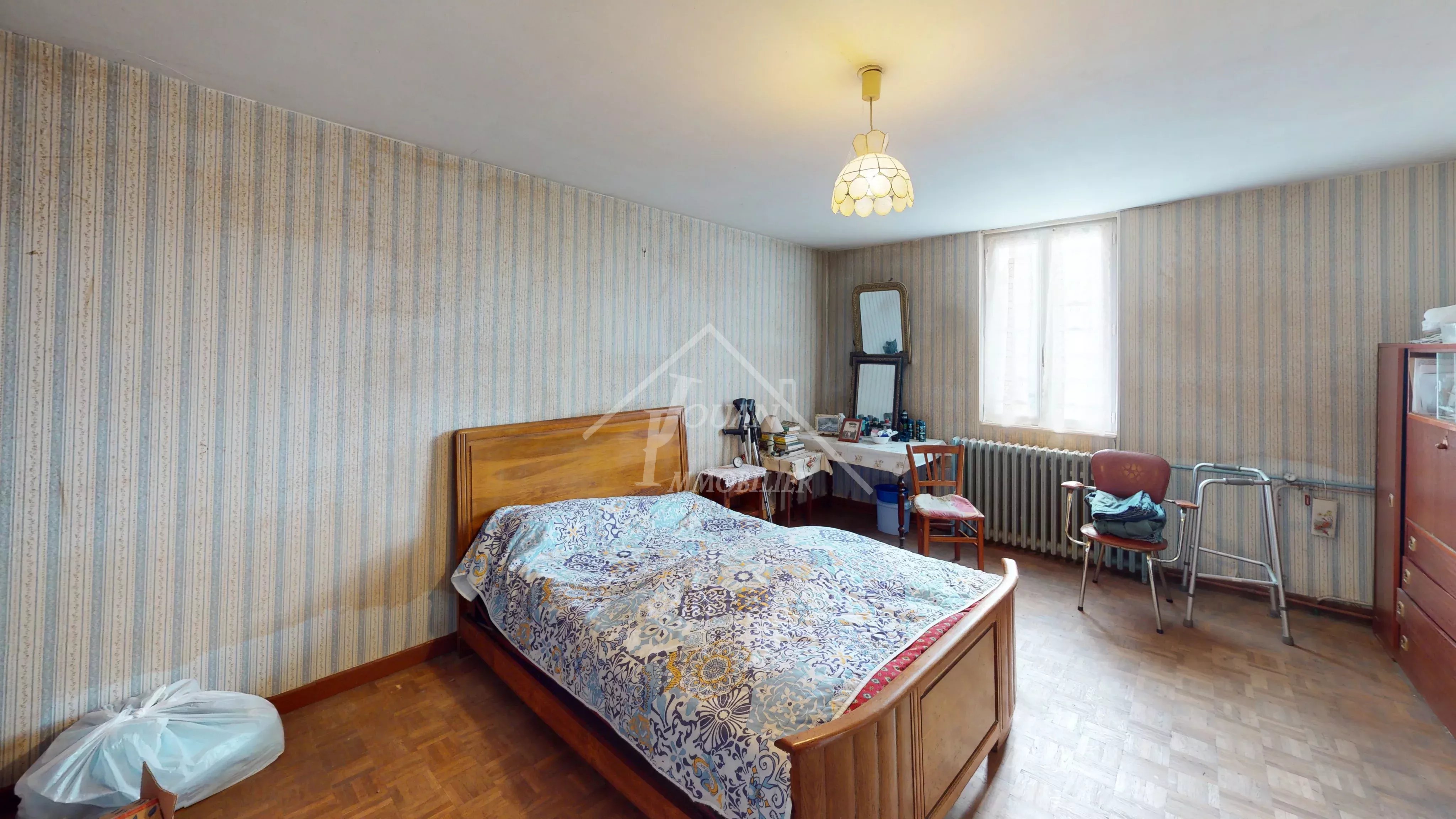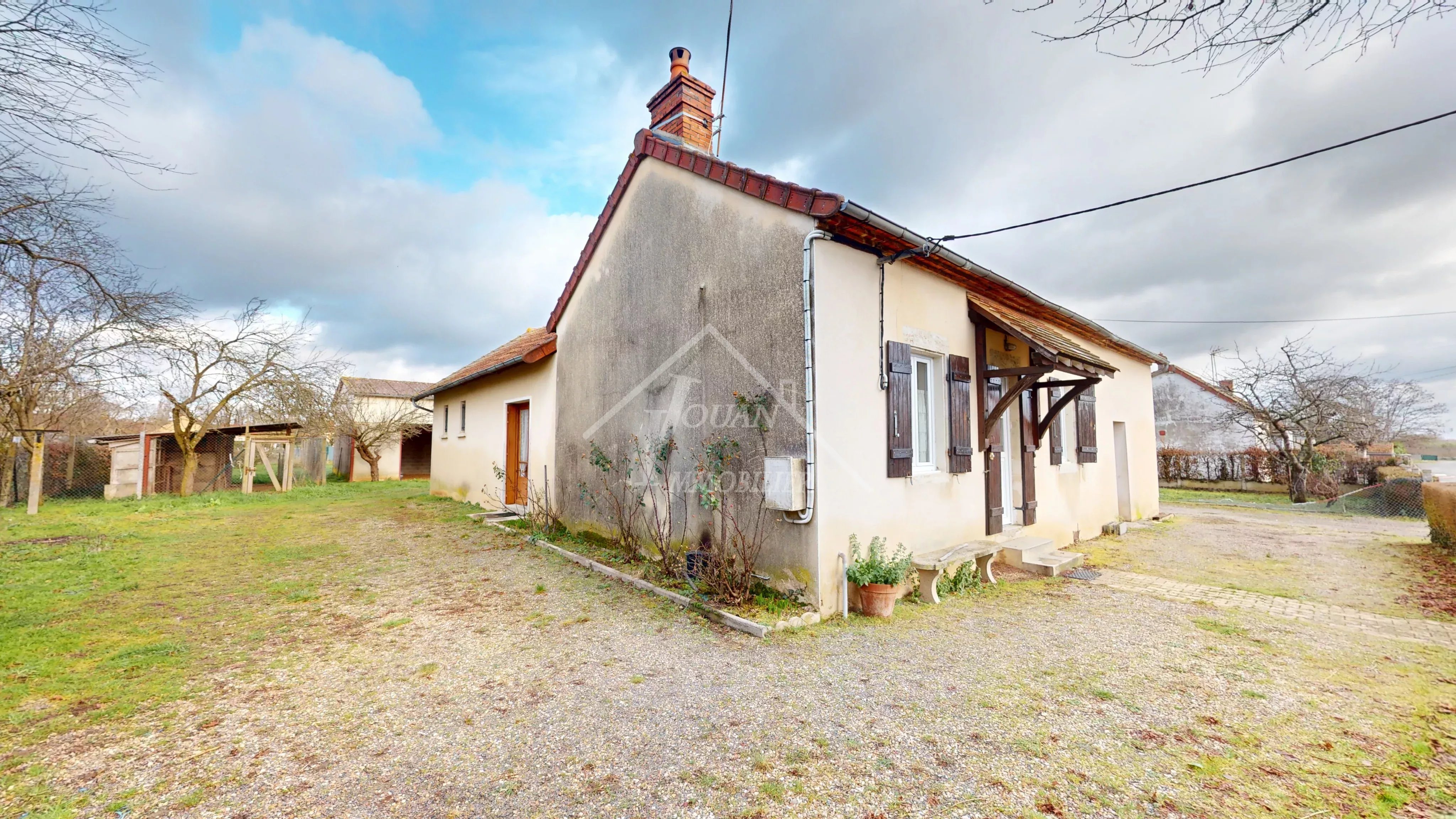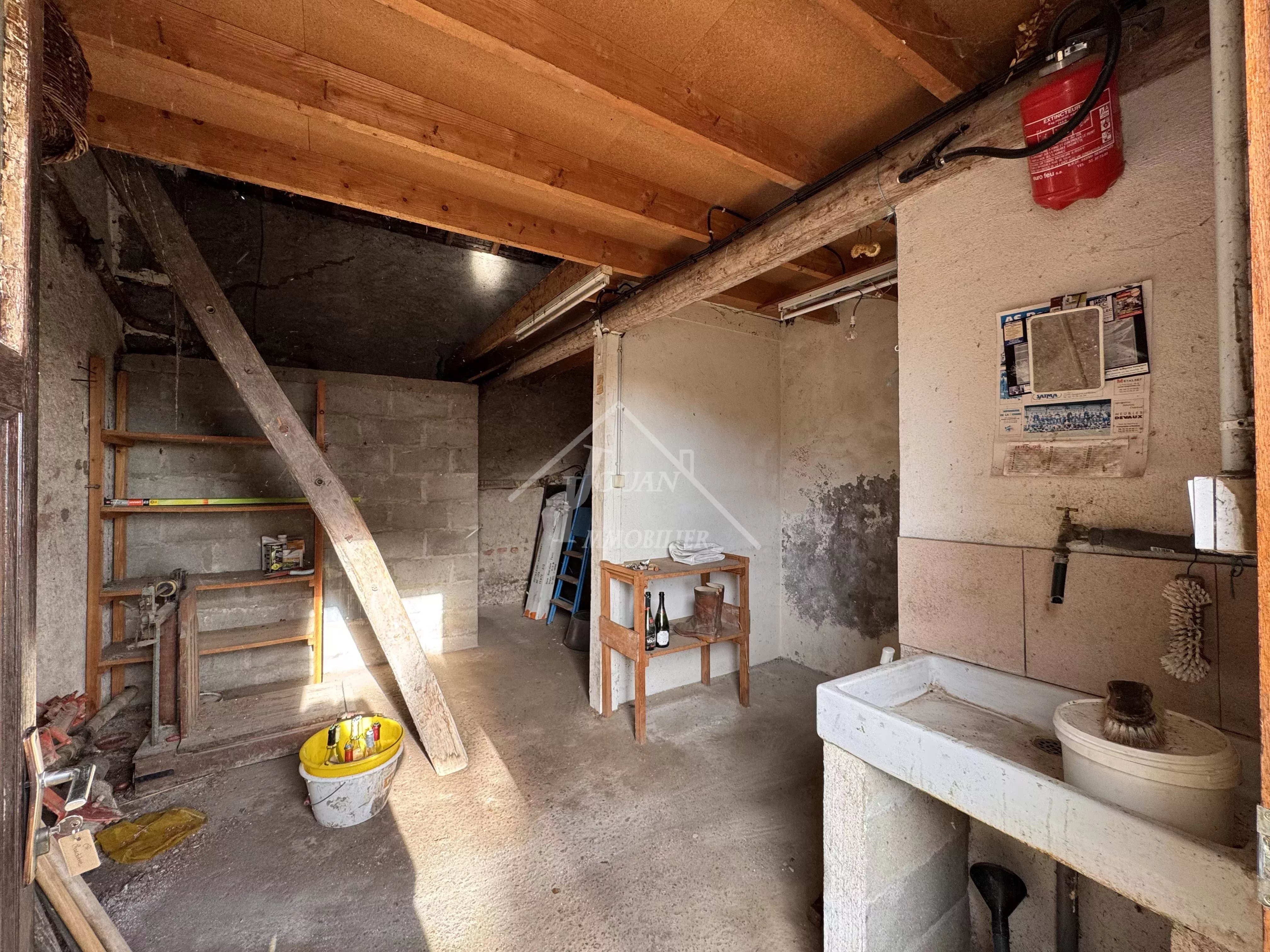 EN EXCLUSIVITE - Située sur un bel emplacement au calme, cette maison offre un fort potentiel d'aménagement et séduira les amateurs d'espace, de maison de campagne et de dépendances. La maison se composé de plain pied, d'une cuisine mettant en valeur un encadrement de cheminée en briques et équipée dune poêle à bois, idéale pour une ambiance chaleureuse. Une grande salle à manger avec de nombreux rangements offre un espace de vie convivial. Vous trouverez également une première chambre avec parquet, un couloir desservant un WC, salle d'eau ainsi qu'une seconde chambre avec très beau parquet. Un grenier au-dessus de l'habitation laisse entrevoir des possibilités d'évolution selon vos projets. Une buanderie/chaufferie attenant complète l'ensemble, ainsi que 2 ateliers, un grand hangar avec étage, et garage. Le tout est implanté sur un terrain de plus de 3000 m2 dans un environnement calme et agréable avec la présence d'un puits, véritable atout supplémentaire. DPE classe G, logement à consommation excessive, audit réalisé chauffage central fioul + poele à bois Prix hors honoraires : 95 000 € net vendeur, honoraires charge acquéreur : 7,3% TTC du prix du bien, soit 102 000 € FAI Visite virtuelle disponible sur notre site : www.immocentrefrance.fr
