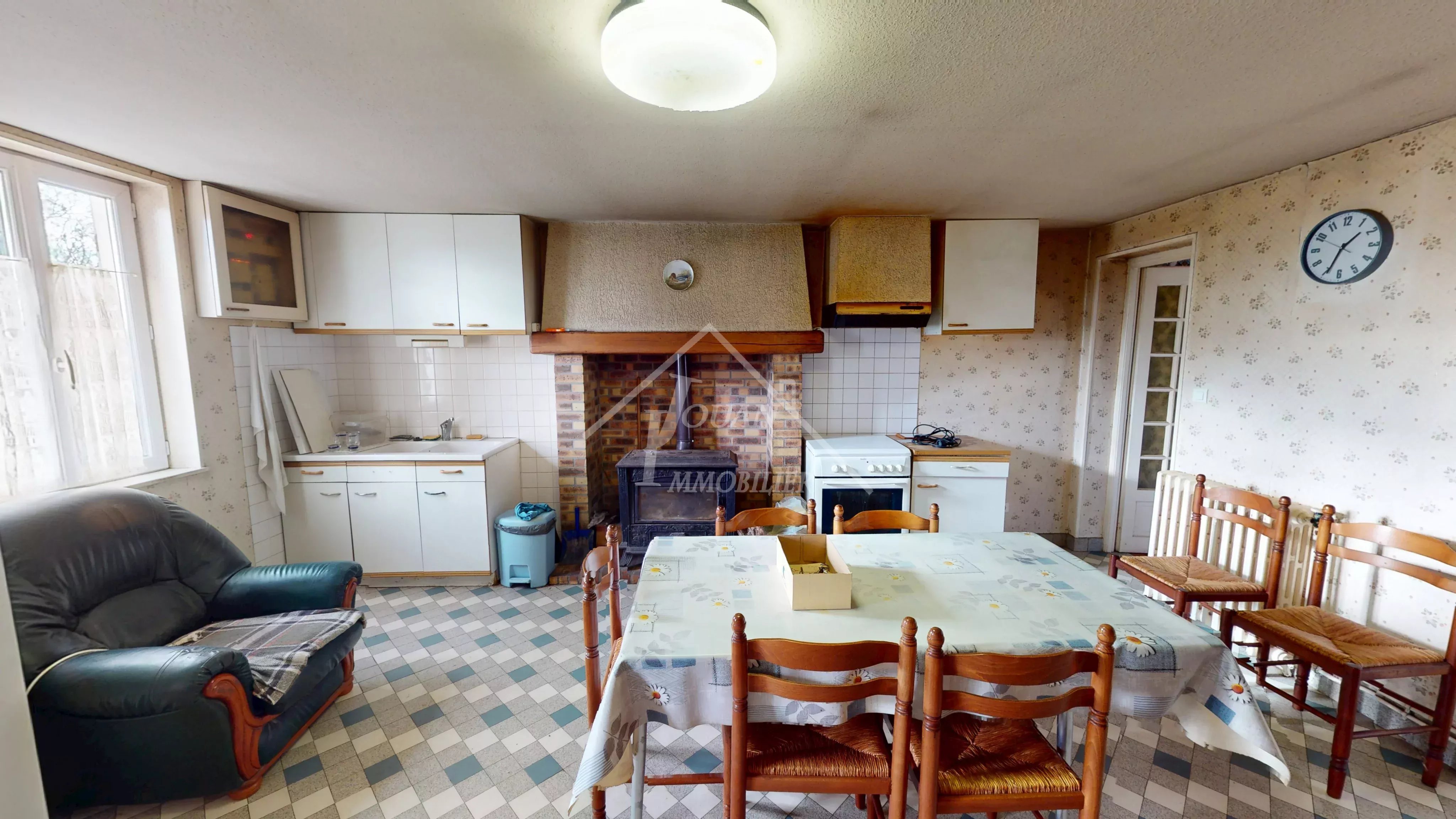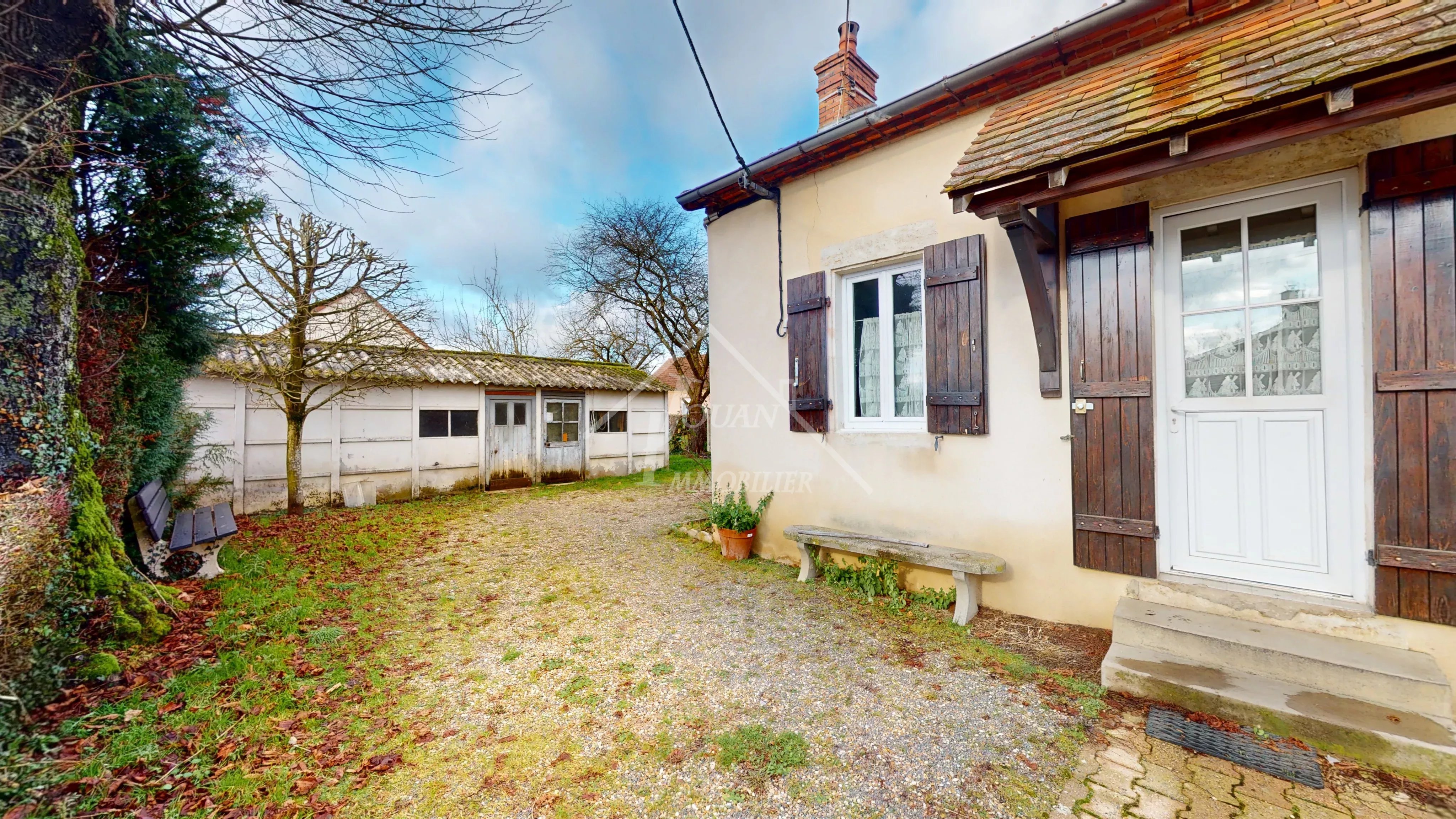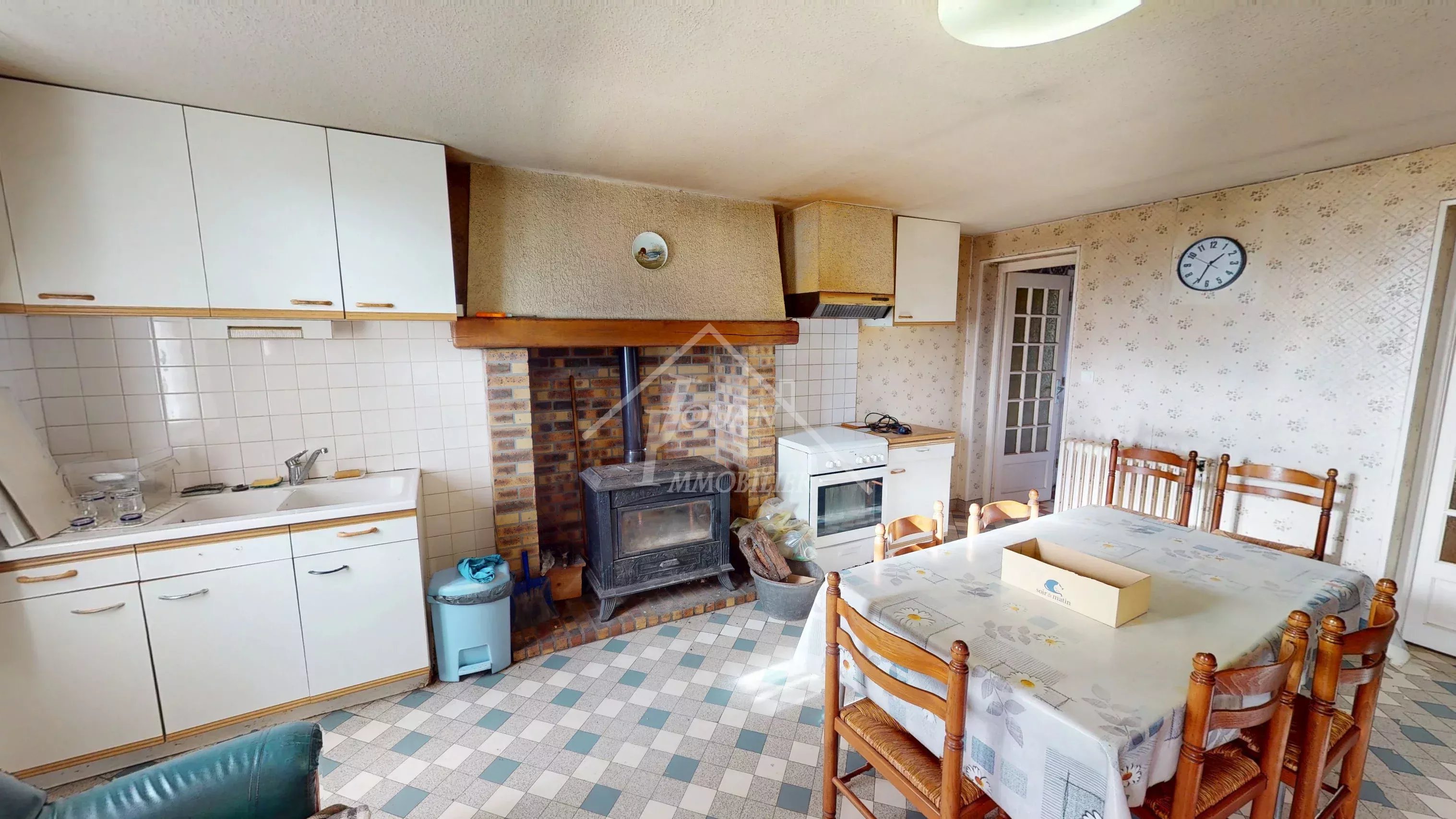 EN EXCLUSIVITE - Située sur un bel emplacement au calme, cette maison offre un fort potentiel d'aménagement et séduira les amateurs d'espace, de maison de campagne et de dépendances. La maison se composé de plain pied, d'une cuisine mettant en valeur un encadrement de cheminée en briques et équipée dune poêle à bois, idéale pour une ambiance chaleureuse. Une grande salle à manger avec de nombreux rangements offre un espace de vie convivial. Vous trouverez également une première chambre avec parquet, un couloir desservant un WC, salle d'eau ainsi qu'une seconde chambre avec très beau parquet. Un grenier au-dessus de l'habitation laisse entrevoir des possibilités d'évolution selon vos projets. Une buanderie/chaufferie attenant complète l'ensemble, ainsi que 2 ateliers, un grand hangar avec étage, et garage. Le tout est implanté sur un terrain de plus de 3000 m2 dans un environnement calme et agréable avec la présence d'un puits, véritable atout supplémentaire. DPE classe G, logement à consommation excessive, audit réalisé chauffage central fioul + poele à bois Prix hors honoraires : 95 000 € net vendeur, honoraires charge acquéreur : 7,3% TTC du prix du bien, soit 102 000 € FAI Visite virtuelle disponible sur notre site : www.immocentrefrance.fr