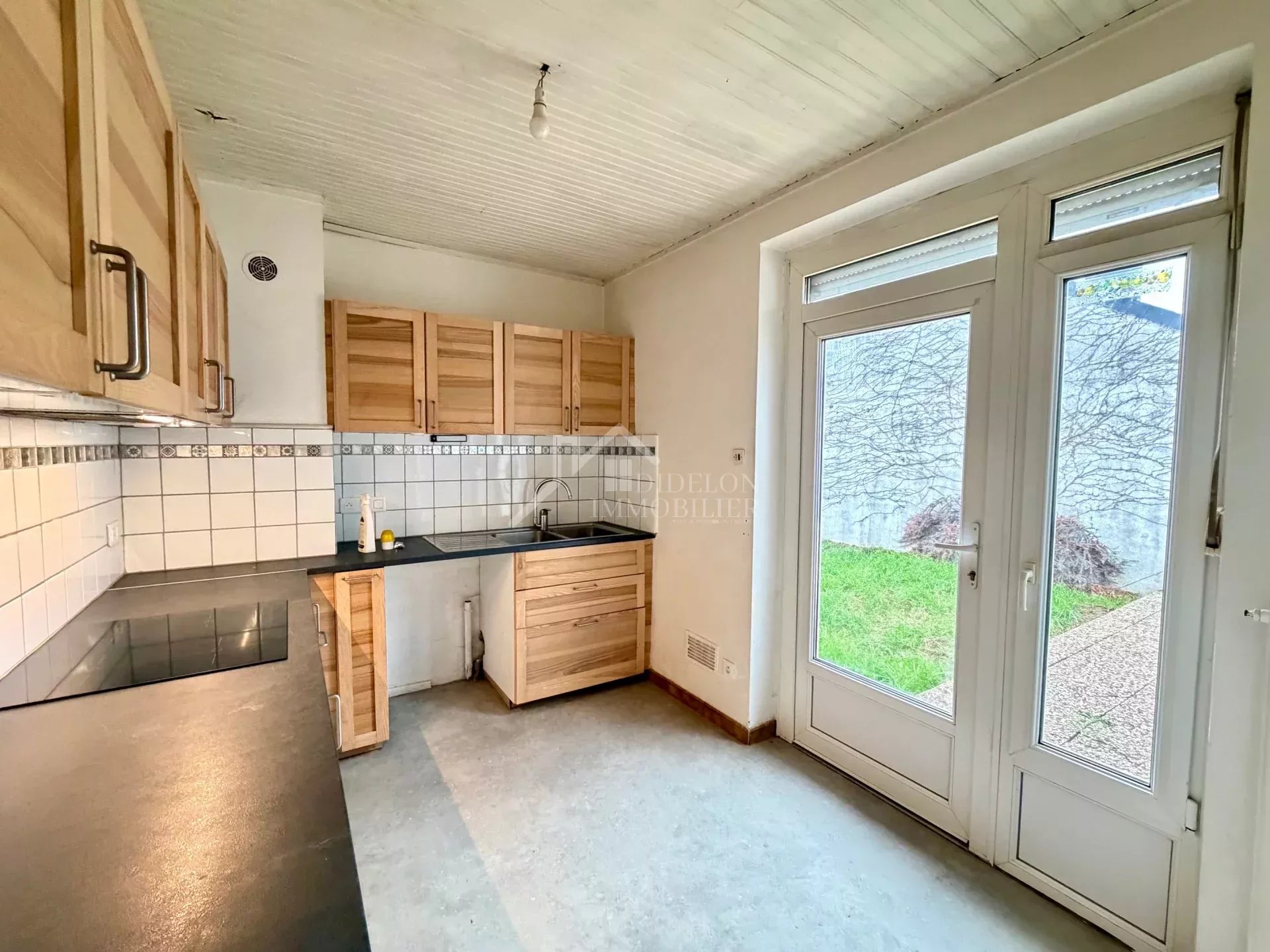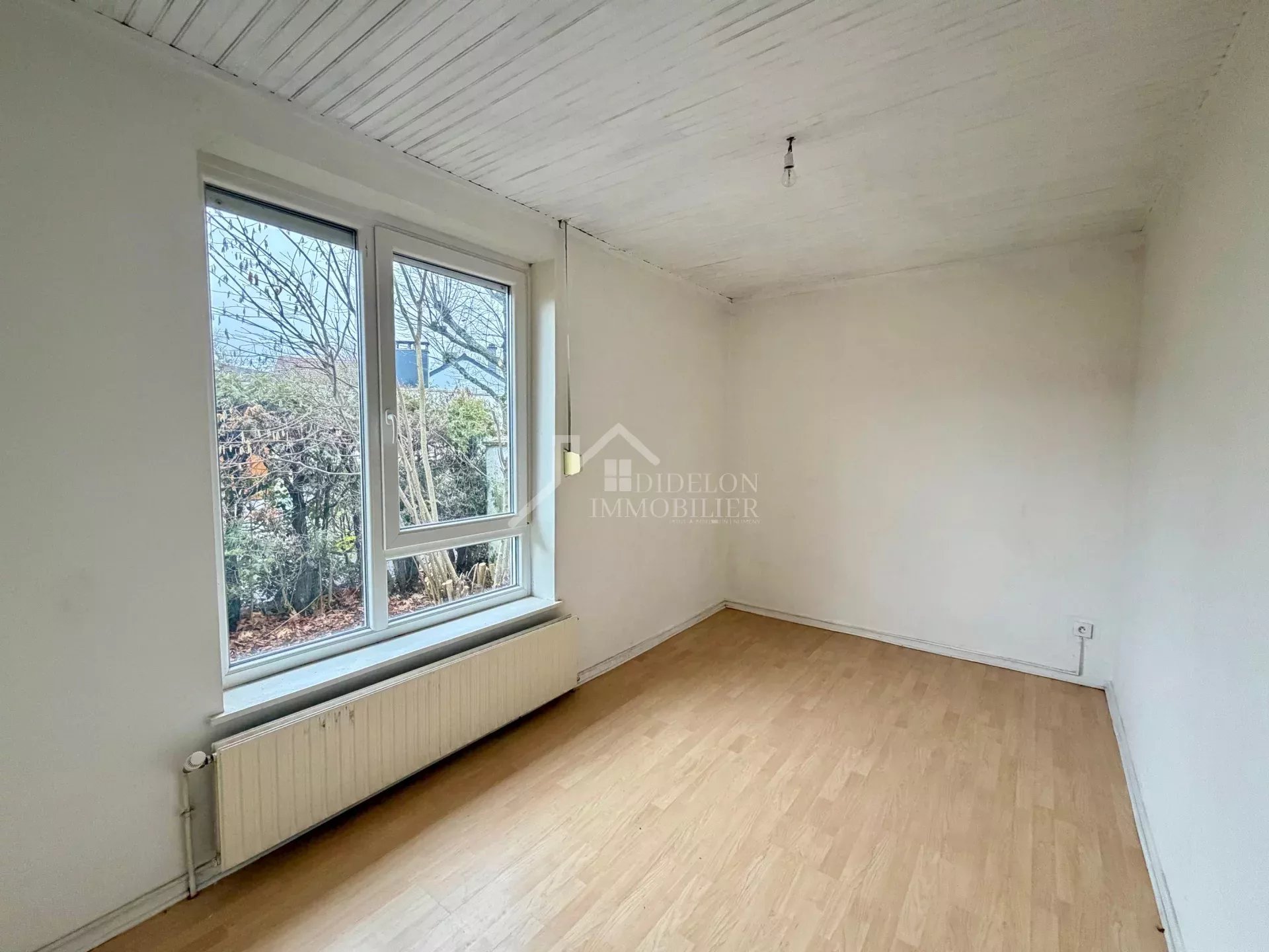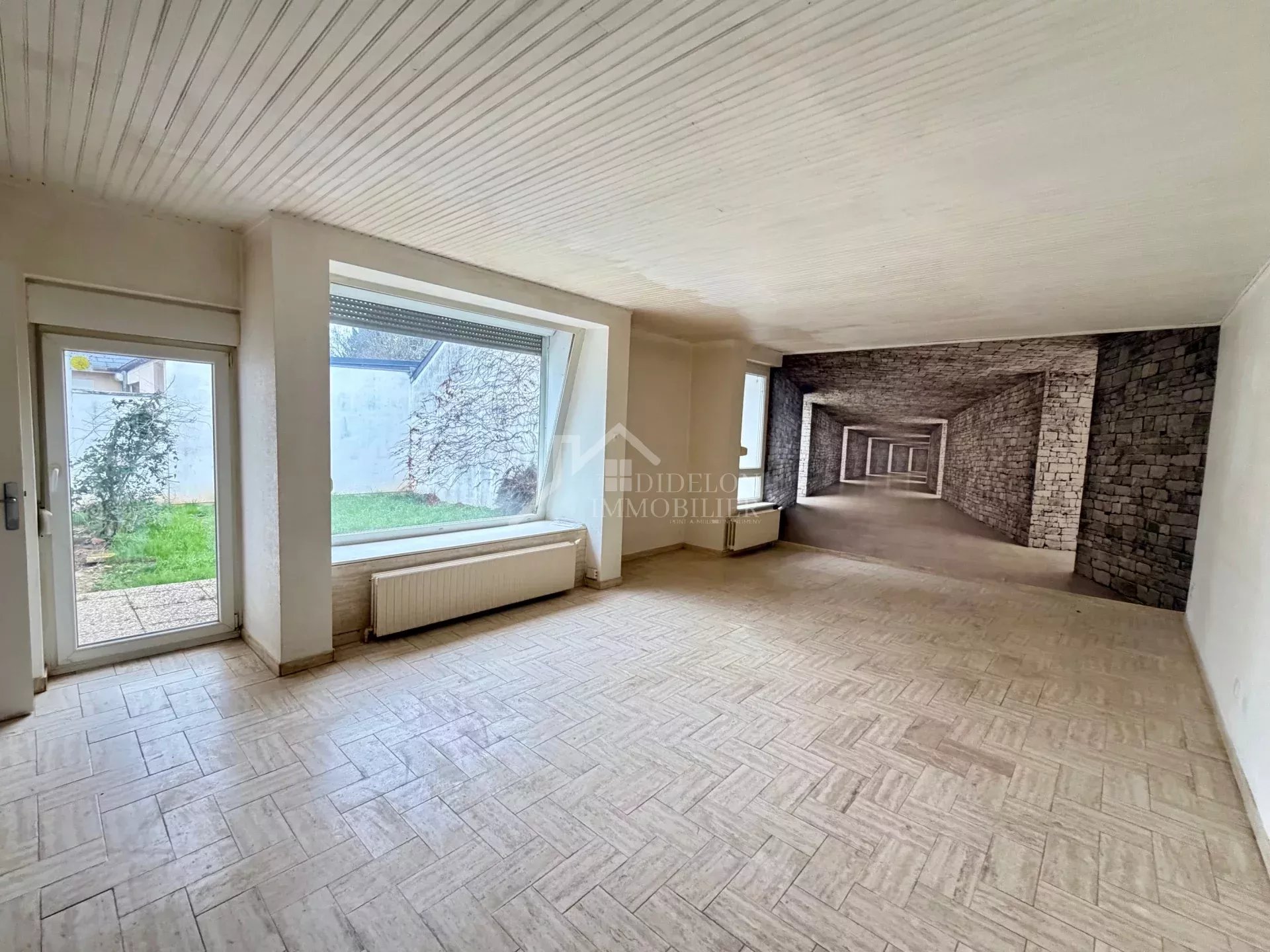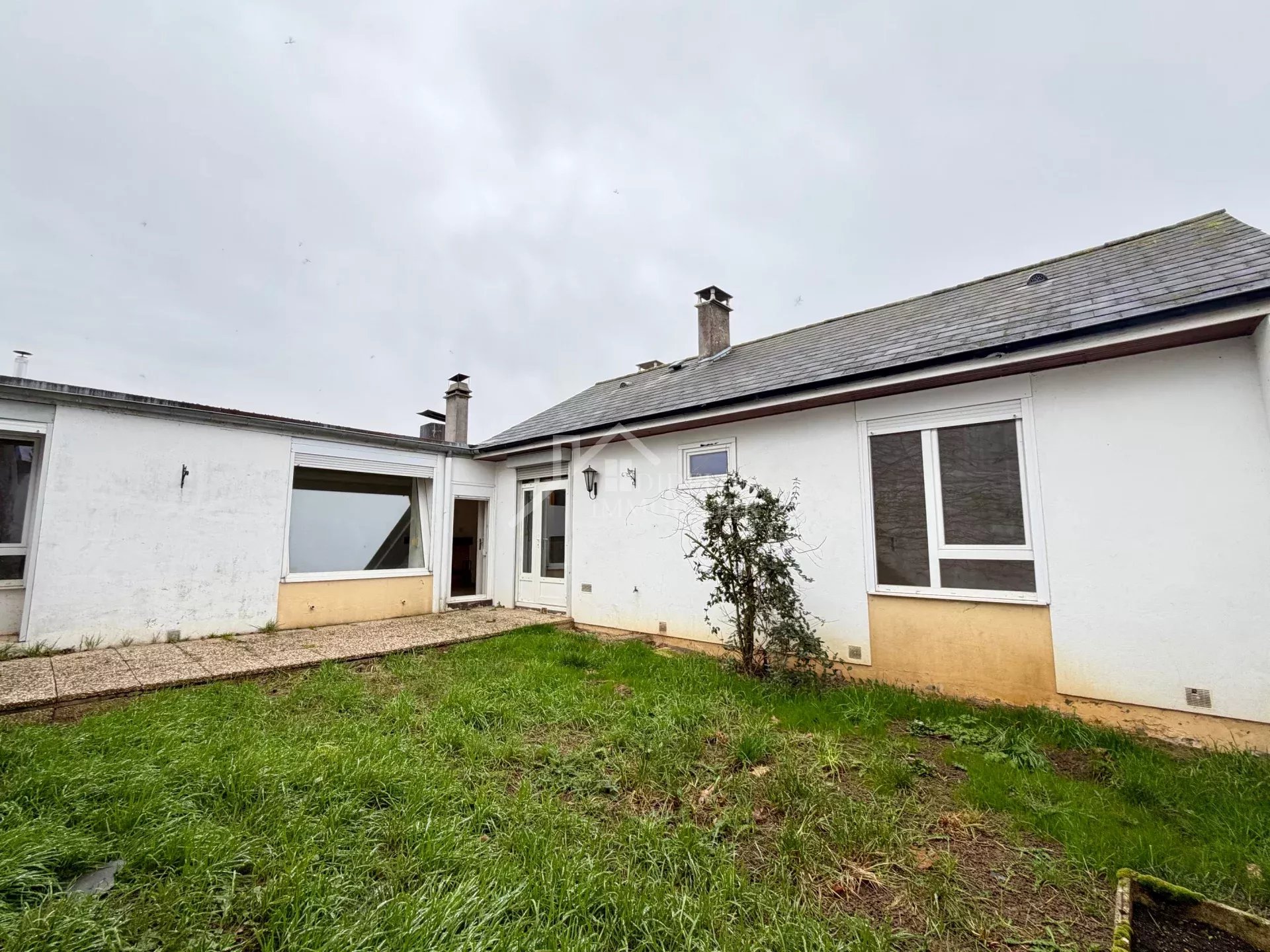 MARLY Dans un quartier calme et résidentiel, maison de plain-pied, 100 m² à moderniser comprenant : - entrée, cuisine équipée, salon-séjour de 32 m² avec cheminée et accès direct sur l'extérieur, 3 chambres, SDB, WC, buanderie, terrasse et jardin - garage à proximité Fort potentiel, belle situation