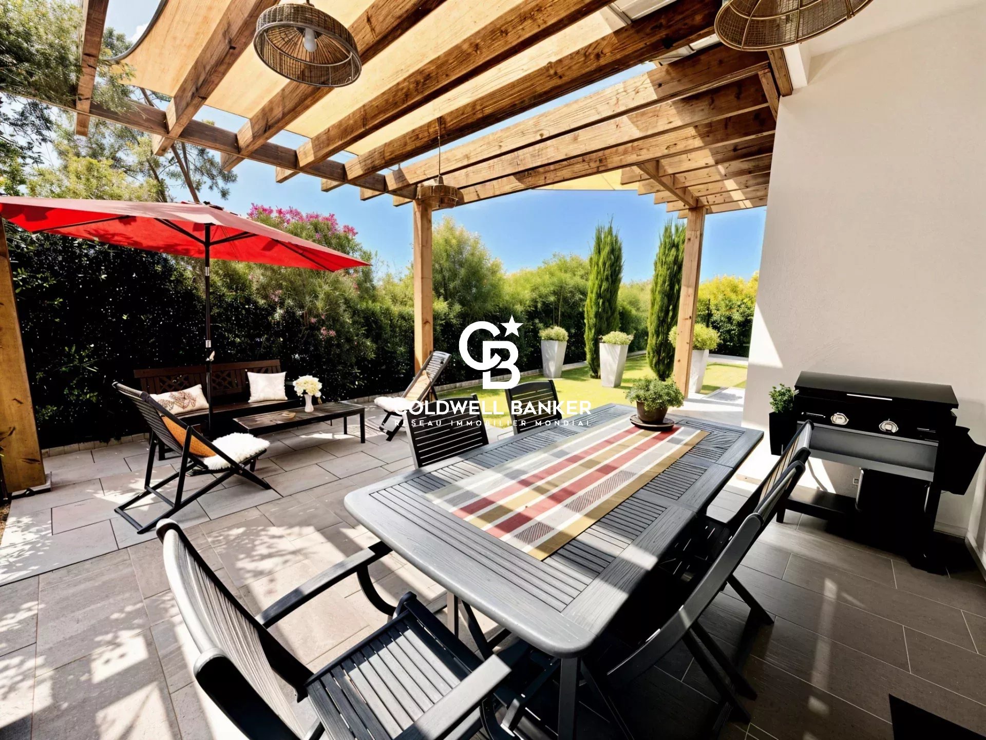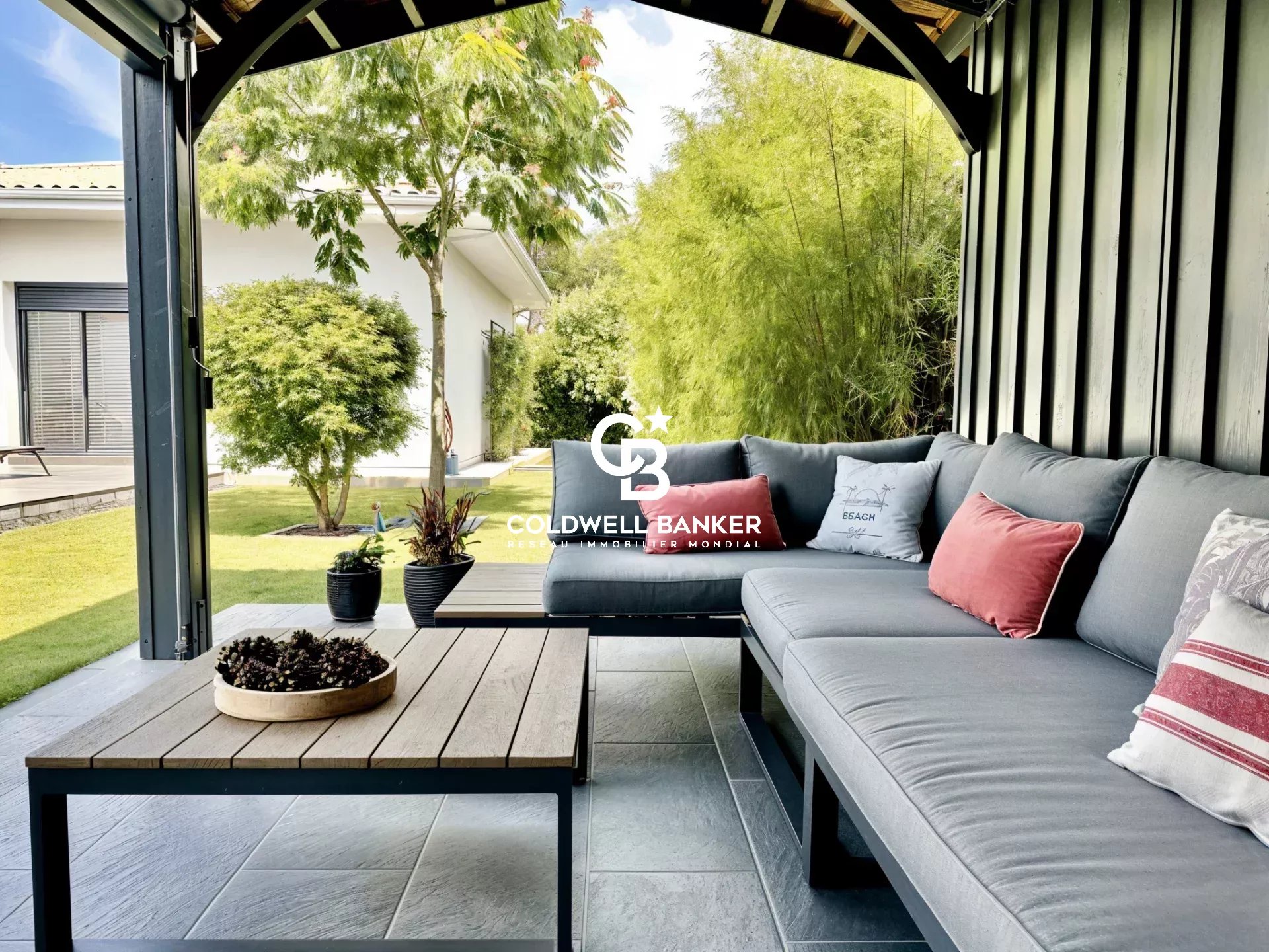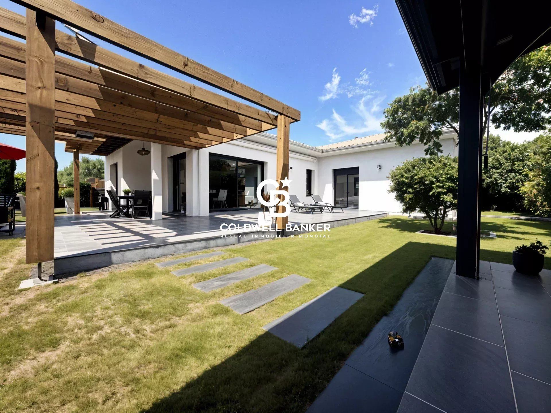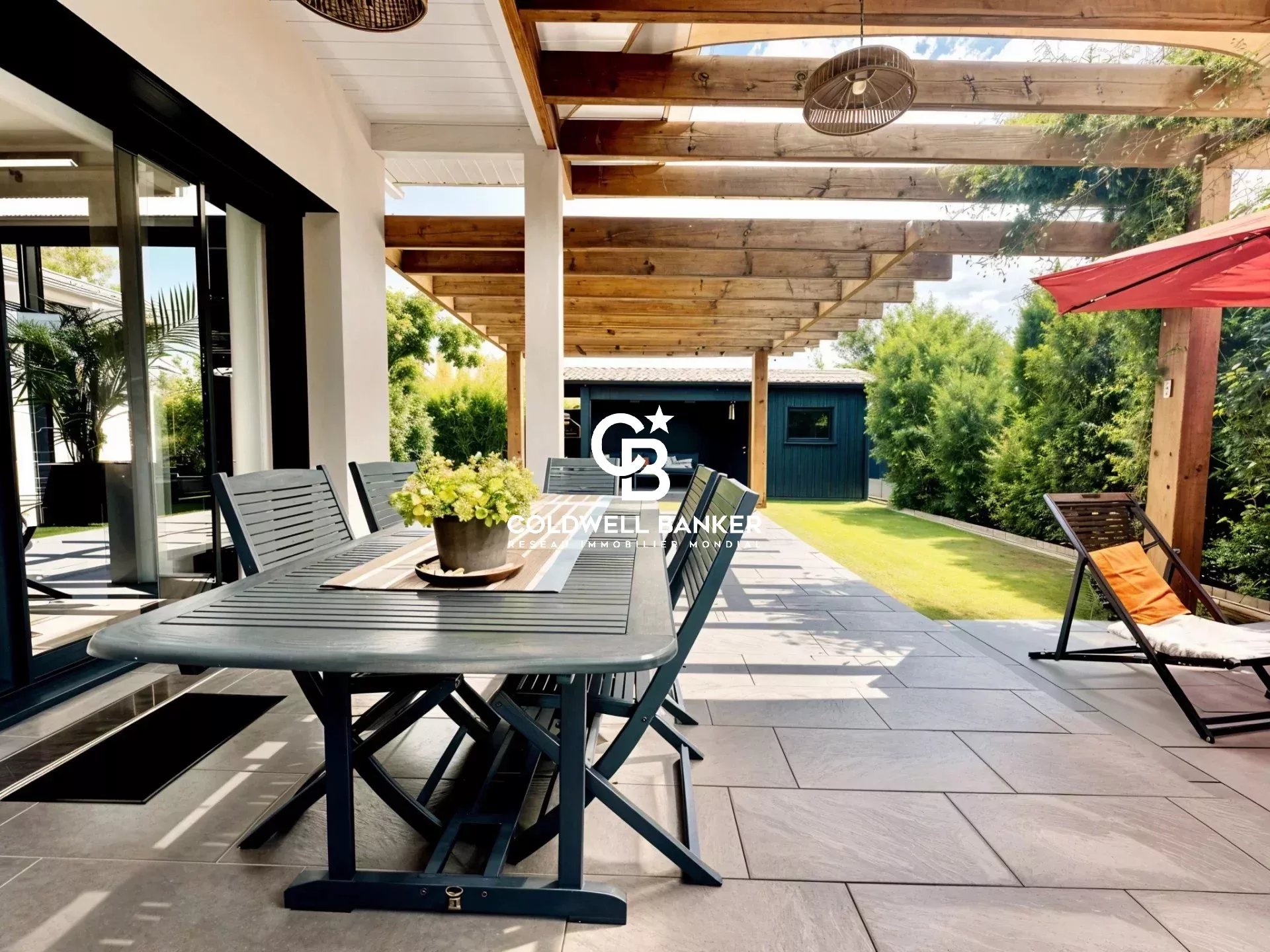 Coldwell Banker Immoba Realty, agence immobilière d'Andernos-Les-Bains vous propose : Cette maison récente de 135 m², pensée pour allier confort et élégance, elle se distingue par la qualité de ses matériaux et la fluidité de ses espaces. Chaque détail a été soigné pour offrir un cadre de vie agréable et raffiné. L’entrée distribue harmonieusement les espaces de vie : un salon/salle à manger lumineux avec plancher en bois massif, prolongé par une cuisine ouverte entièrement équipée avec une splendide table haute en quartz. Une buanderie attenante complète cet espace pratique et fonctionnel. La partie nuit comprend trois chambres aux volumes généreux, dont une suite parentale avec dressing, baignoire et douche. L’une des chambres dispose d’une terrasse privative, idéale pour profiter du calme extérieur. Les extérieurs invitent à la détente : une terrasse principale couverte avec structure bois et store banne, ainsi qu’une seconde terrasse couverte et une dépendance offrant un potentiel d’aménagement pour un studio indépendant d’environ 20 m². Des préparations ont été prévues pour l’installation d’une cheminée et d’un jacuzzi. Le terrain d’environ 750 m² est piscinable. Le jardin, paysagé et arboré avec soin, est équipé d’un arrosage alimenté par un puits foré. Les huisseries en aluminium, oscillo-battantes et dotées de volets roulants électriques, renforcent le style contemporain et la qualité de finition de l’ensemble. Un véritable havre de paix conjuguant modernité, confort et potentiel d’aménagement. DPE A (50 kwh/m²/an) et GES A (1 kg co2/m²/an) Montant estimé des dépenses annuelles d'énergie pour un usage standard : entre 600 € et 860 € / an. Prix du bien : 920 000 € HAI, les honoraires de l'agence à la charge de l'acquéreur, s'élèvent à 30 000 € TTC, soit : 3,37 %. Prix net vendeur : 890 000 € Les informations sur les risques auxquels ce bien est exposés sont disponibles sur le site Géorisques : www.georisque.gouv.fr Pour plus d'informations, contactez Christine HAUER, RSAC N° 494 327 679 - RCP N° 25032648. Retrouvez l'ensemble de nos biens sur immoba.fr