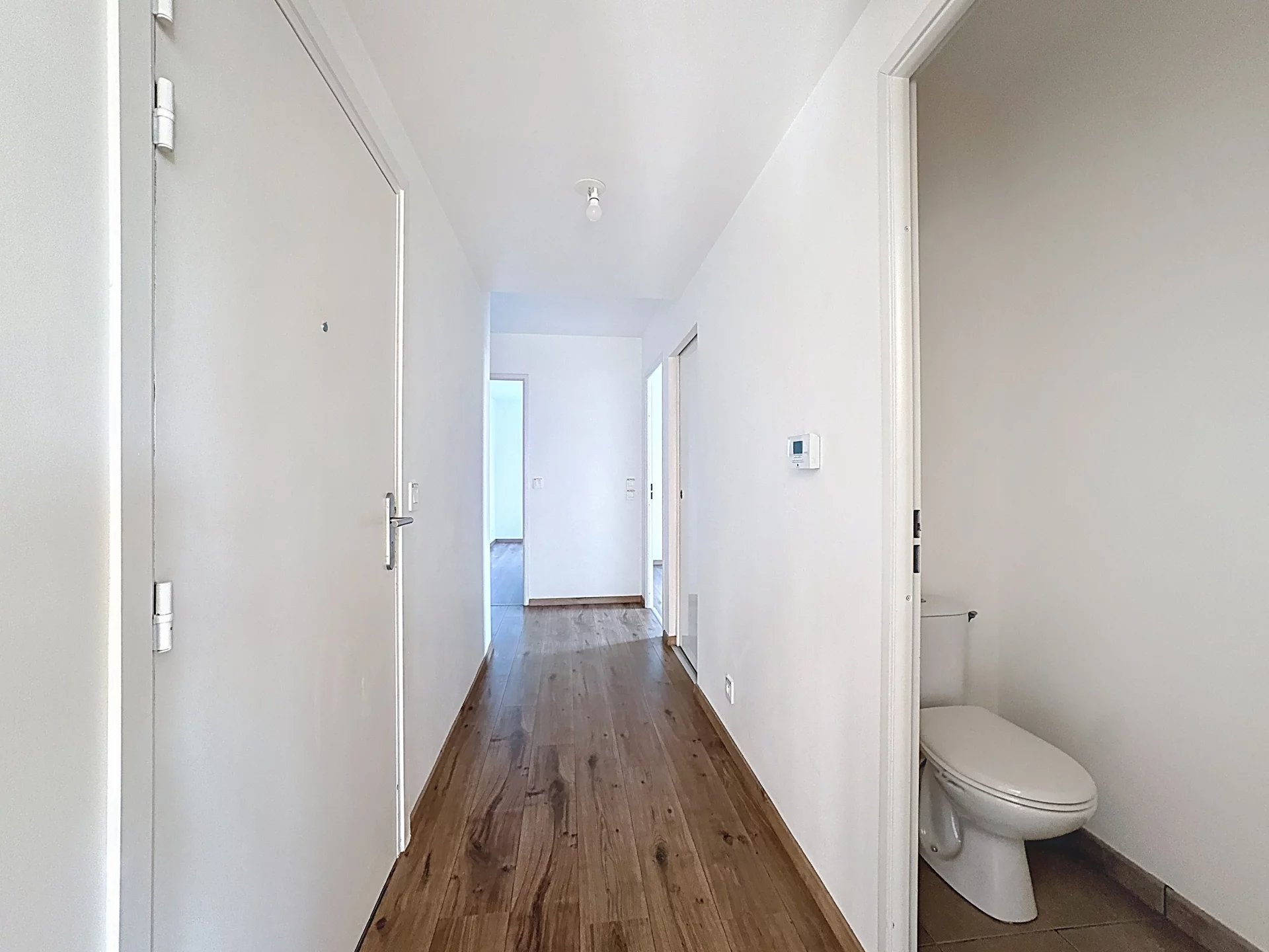Il se compose de 3 chambres avec rangements, d’une pièce de vie lumineuse, et bénéficie de prestations modernes: double vitrage PVC, volets électriques, thermostat connecté, fibre optique.