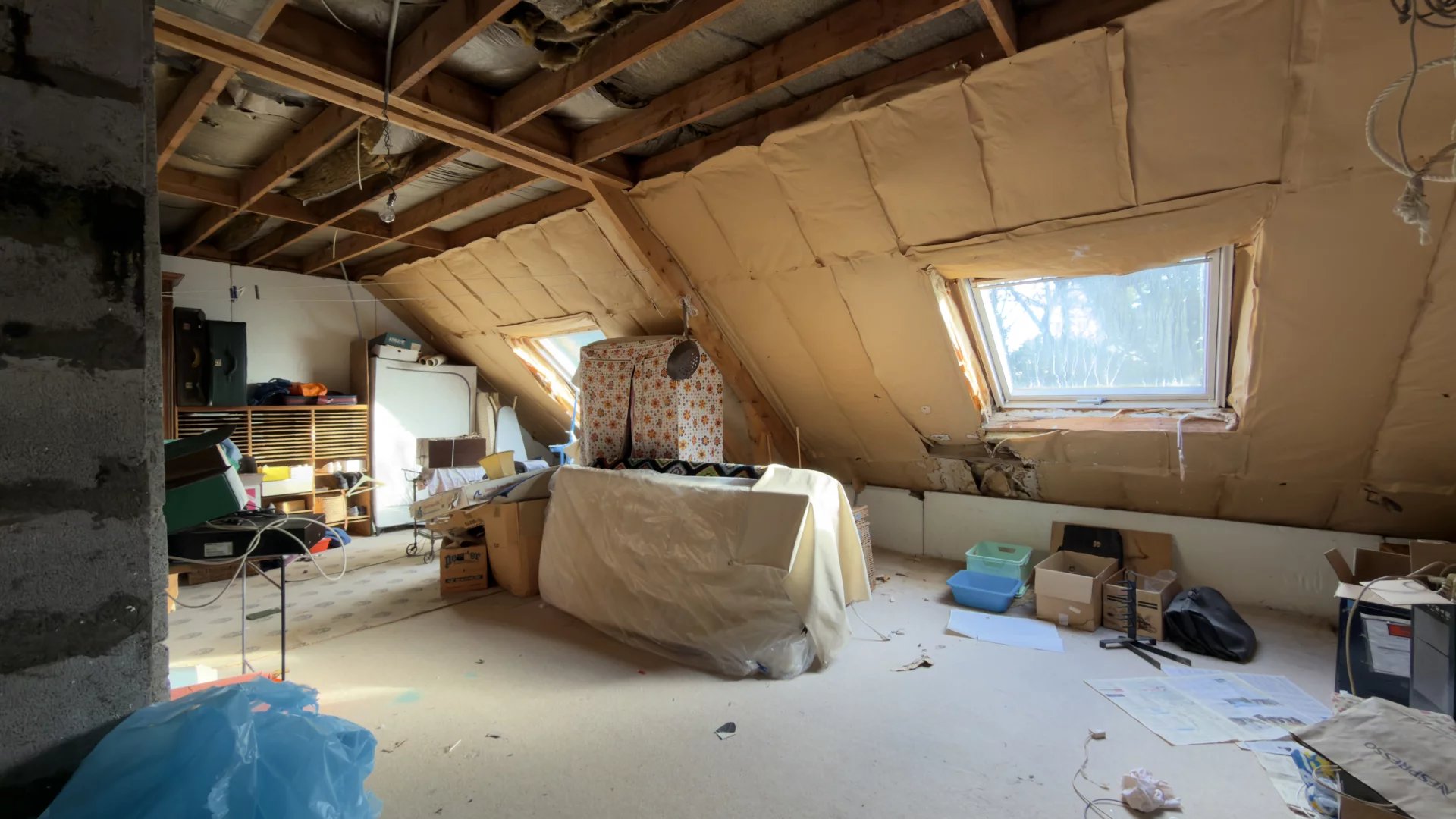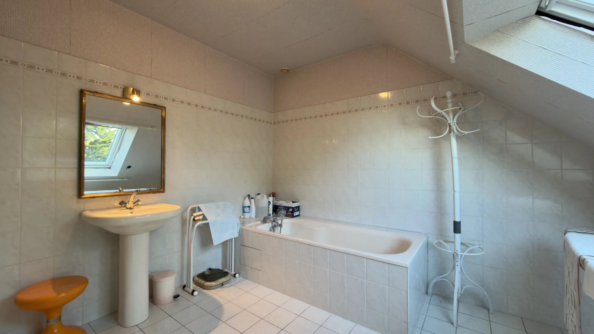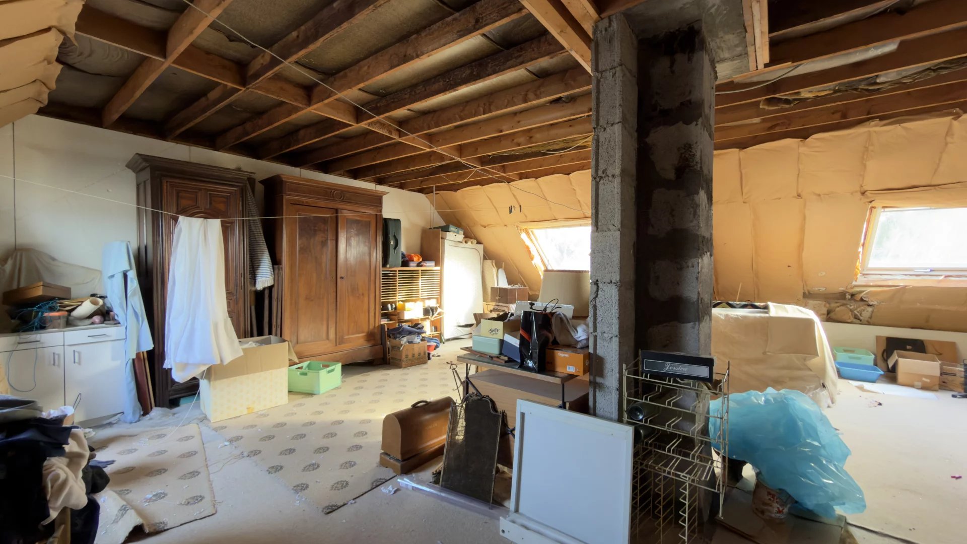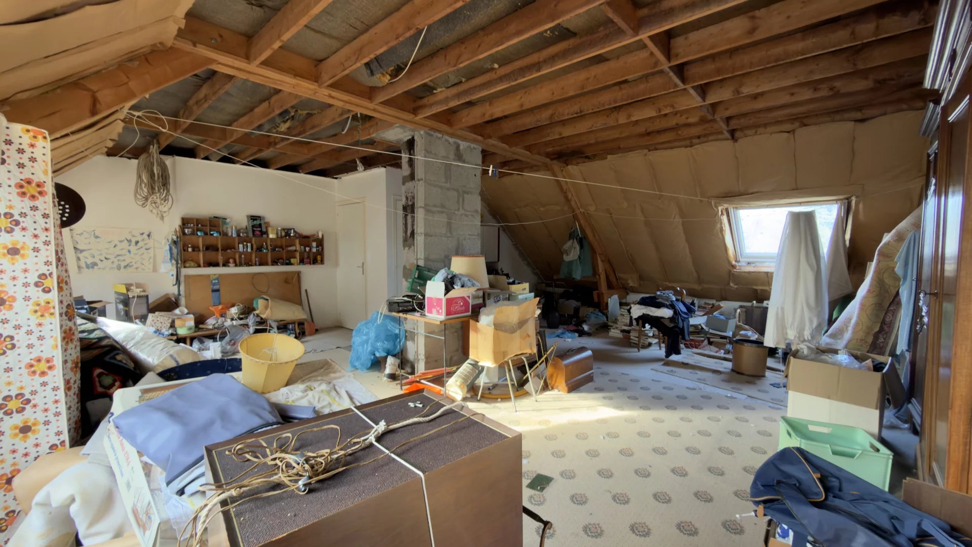À l’étage : une chambre, une salle de bains, un WC séparé et un vaste grenier d’environ 63 m² (amenant la maison a une surface habitable d'environ 194m²), doté d’une dalle béton et de trois grands vélux déjà installés. Une fois aménagé, cet espace permet de porter la maison jusqu’à 5 chambres (ou bureau, suite parentale, etc.).